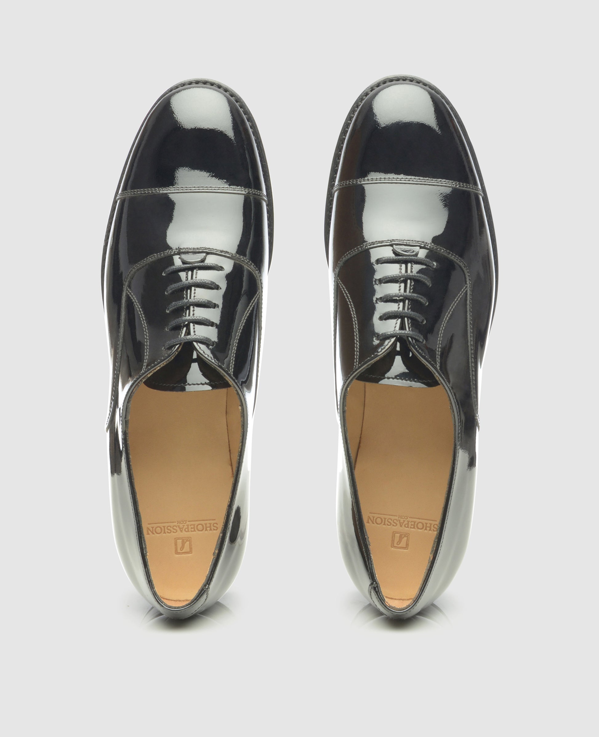In terms of its basic shaft cut, No. 104 is a classic cap-toe Oxford. Gentlemen all around the world praise the Oxford for its elegance. This women’s patent Oxford in black features the Oxford’s distinctive closed lacing, which, in keeping with tradition, is threaded through five eyelet pairs. It also has a toe cap seam at the front, making this a cap-toe Oxford. This feminine take on a menswear classic follows in the footsteps of its famous British predecessors, while exuding a glamour all its own with a gleaming patent leather upper.