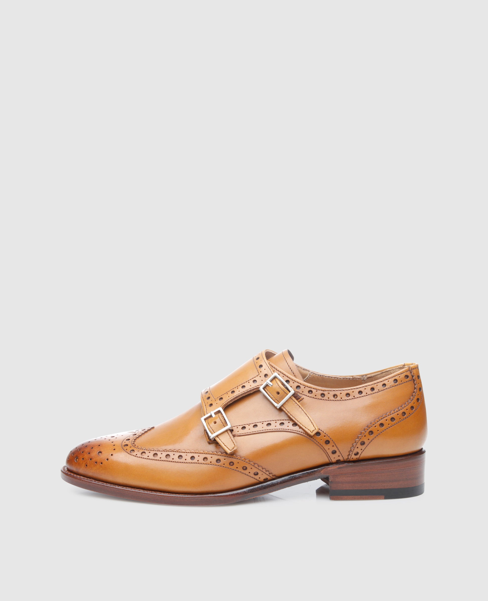 At first, No. 1110 seems to evoke an unusual men’s shoe. Thanks to a narrow, feminine last, though, this beloved lace-up shoe proves that it is also an ideal choice for women’s leisurewear, as well as relatively casual office dress codes. Saturated cognac coloring and opulent decoration give this Goodyear-welted double monk strap that extra special something.