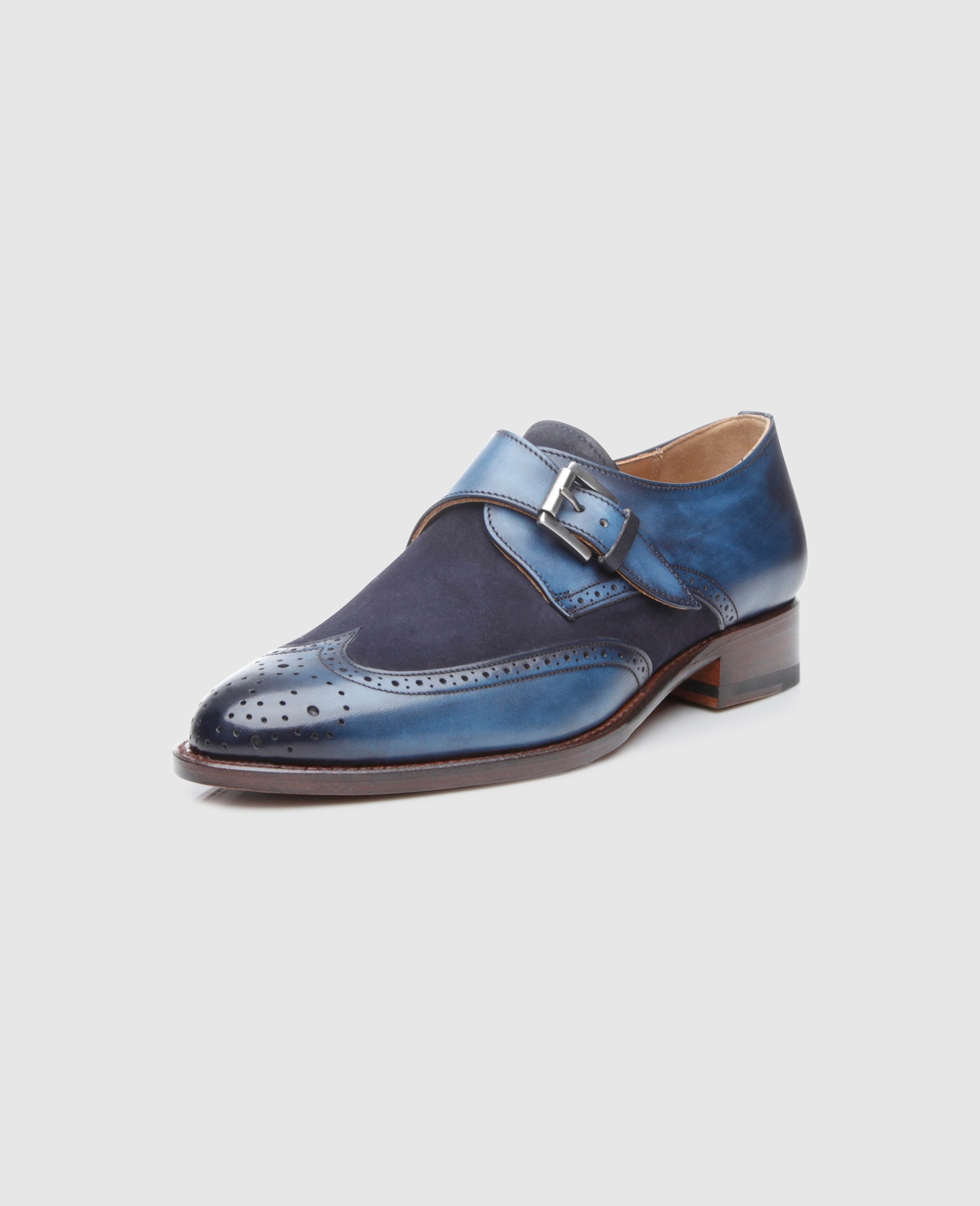 No. 1155 is a classic Goodyear-welted women’s monk strap that thrills with its visual appearance and practical features. Created partly from vegetable-tanned soft calf leather, partly from velvety soft velours, this shoe enchants with its dark blue coloring, further refined by an elaborate hand finish.