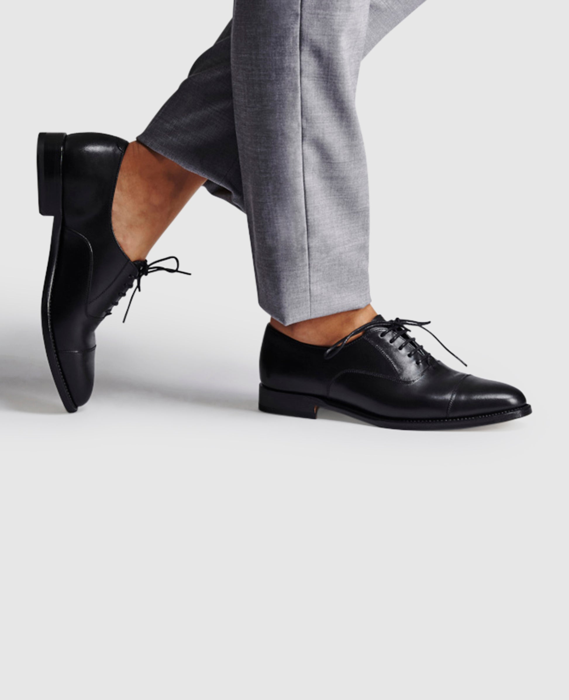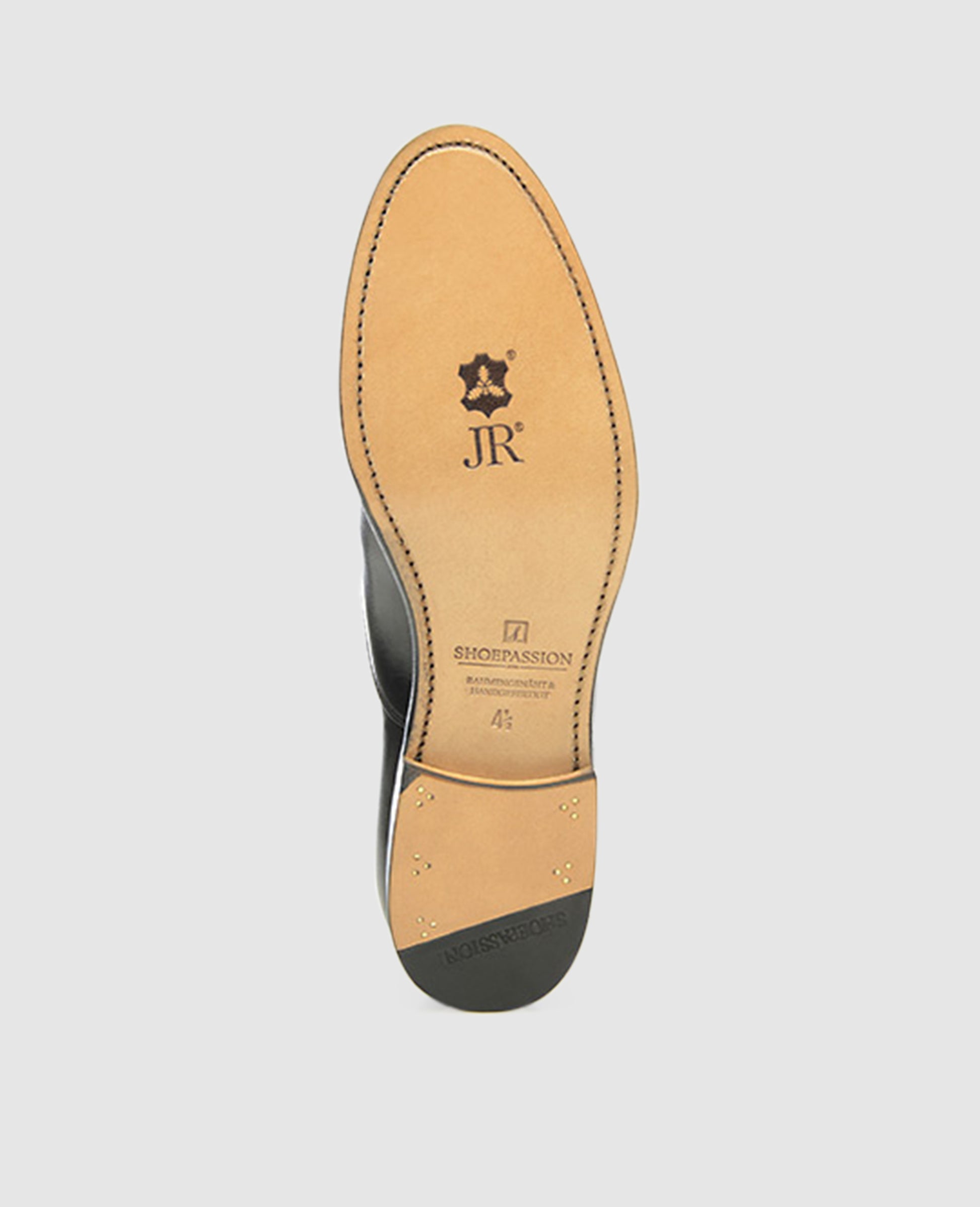 No. 120 is a black women’s oxford shoe with a toe cap and closed five-eyelet lacing. Oxfords have long been considered a staple of men’s footwear; women’s fashion has come to adopt this world-famous, elegant and fashionable low-rise shoe. This model is made using a feminine shoe last (the elegant shoe last), which results in a comfortable, practical yet stylish women’s shoe, currently available in black.