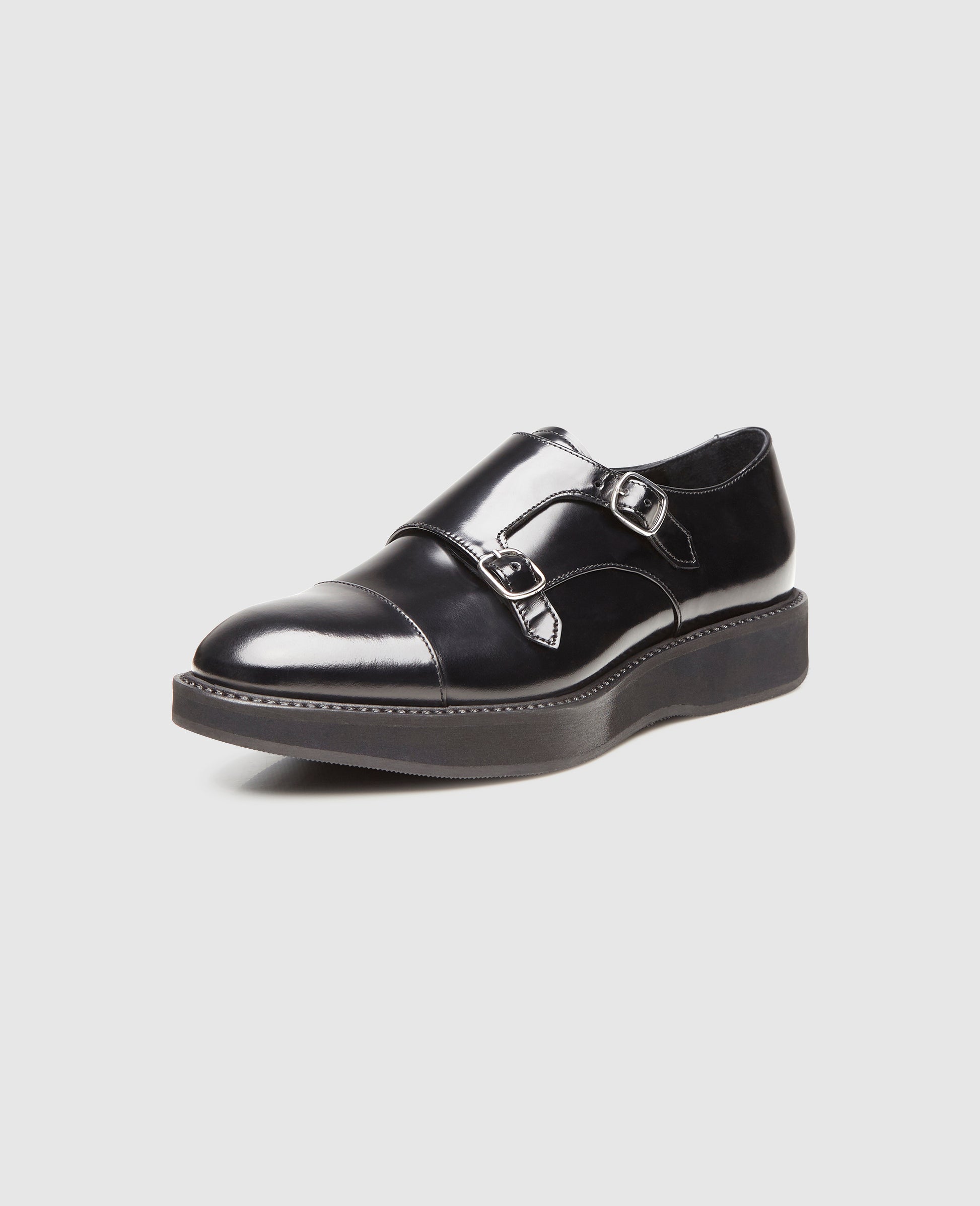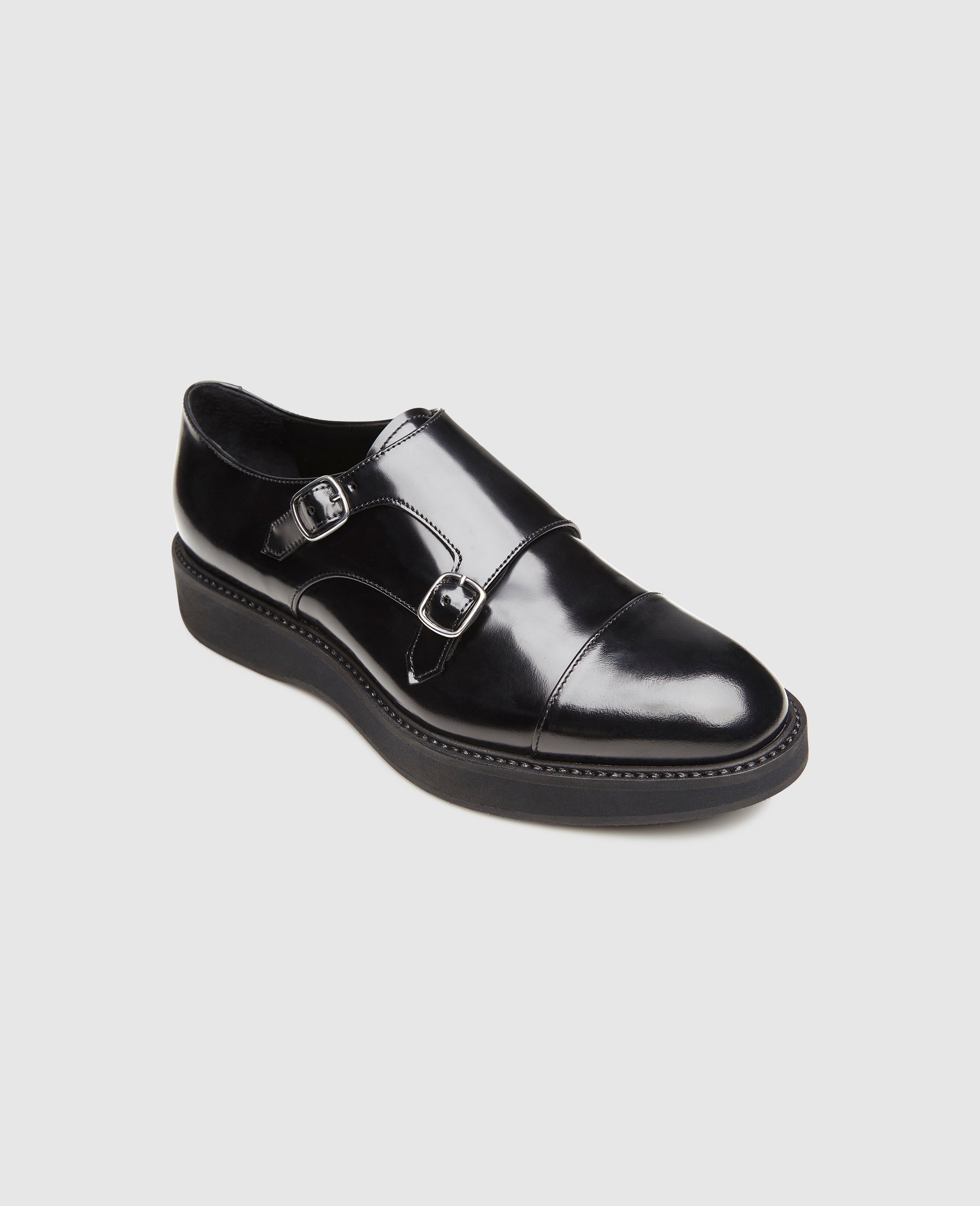 Handcrafted in Italy from the finest cowhide, this is a classic with a new look. The double monk strap has been regarded as a casual choice for centuries in classic menswear. Over time, women have also discovered the fashionable nonchalance of this buckled shoe. The shaft of our Italian interpretation pays tribute to the classic, with a double buckle fastening and cap-toe seam. Yet this model also takes its wearer to completely new fashionable heights. The sturdy, 3-centimeter high platform sole, made from EVA and rubber, not only provides comfort, it also lifts the wearer comfortably away from the big city sidewalks on wet and cold days. The ideal companion for casual jeans looks, but also in playful contrast to more classical ways of dressing.