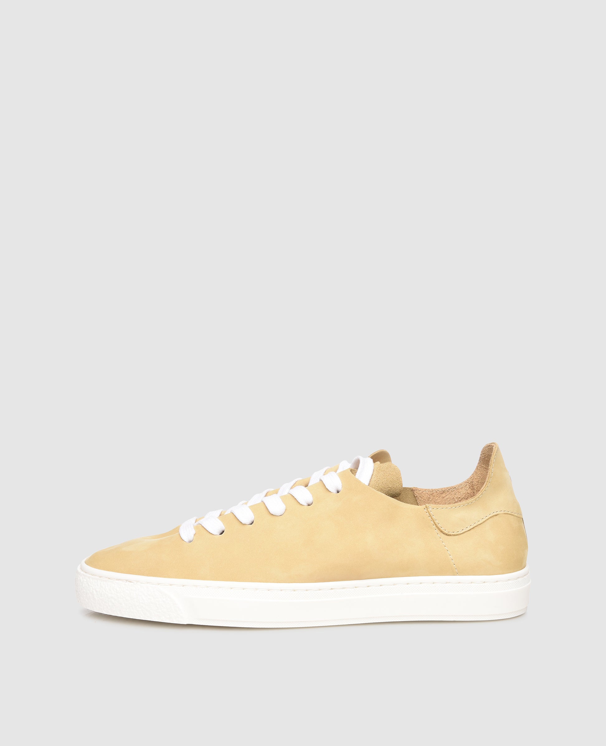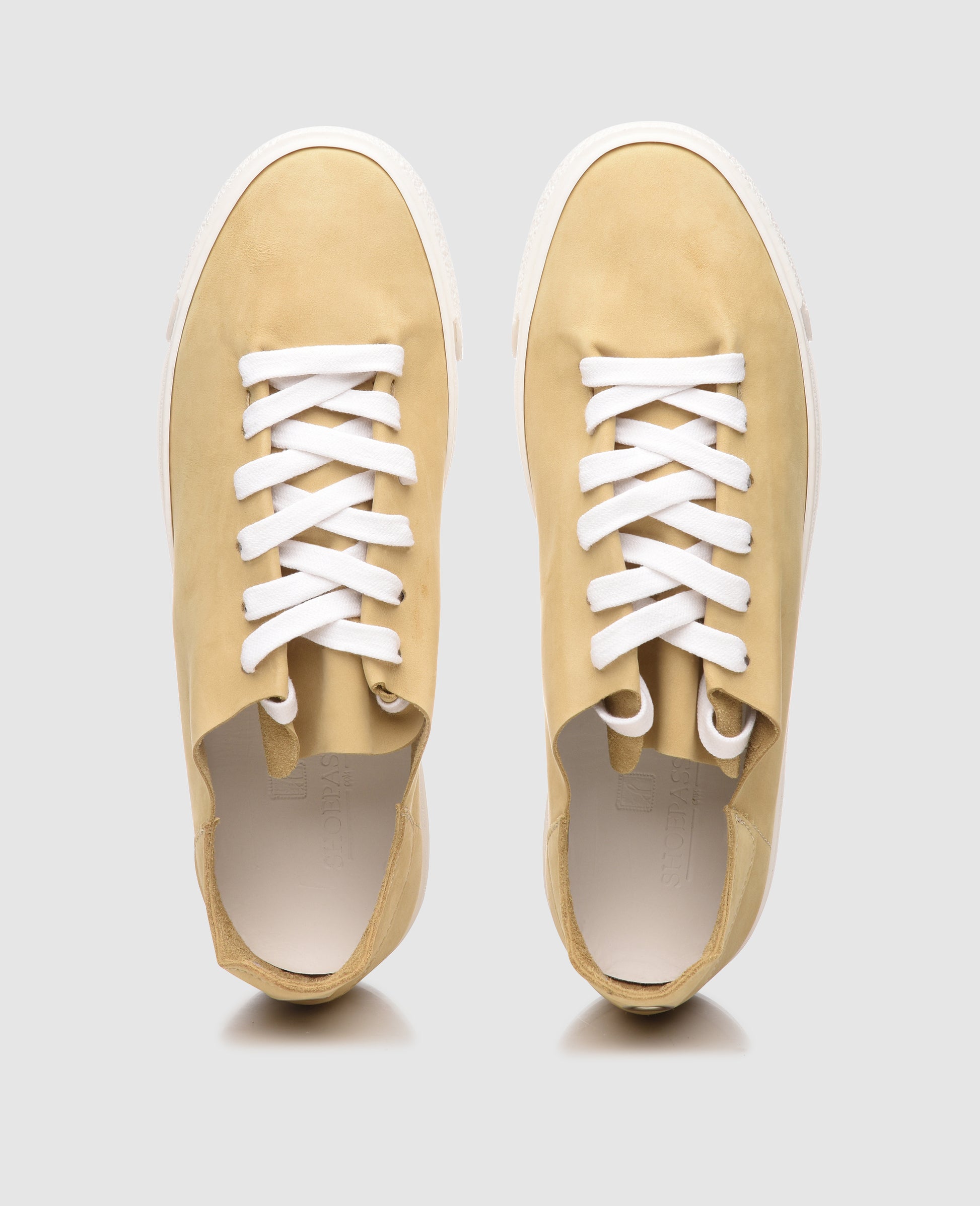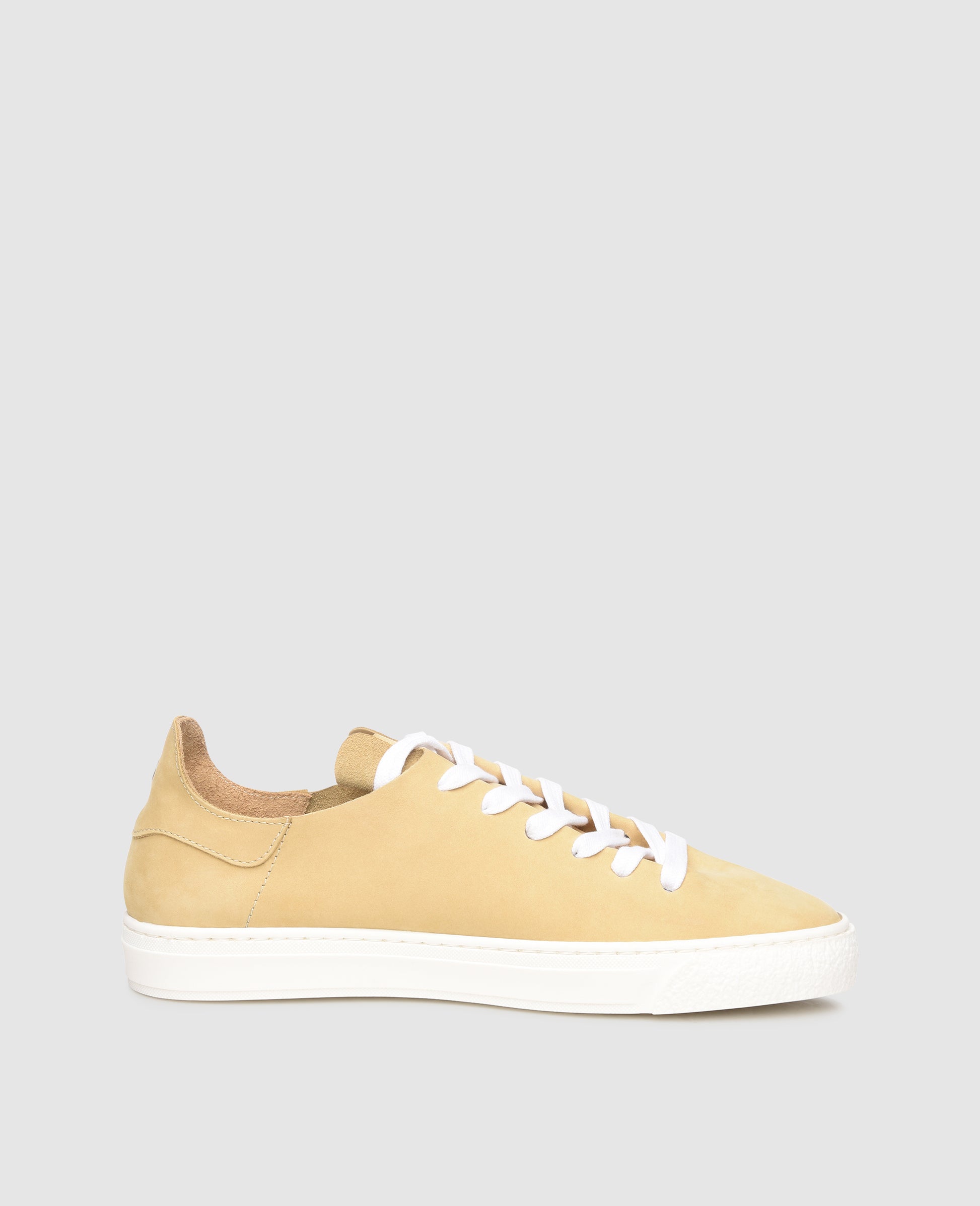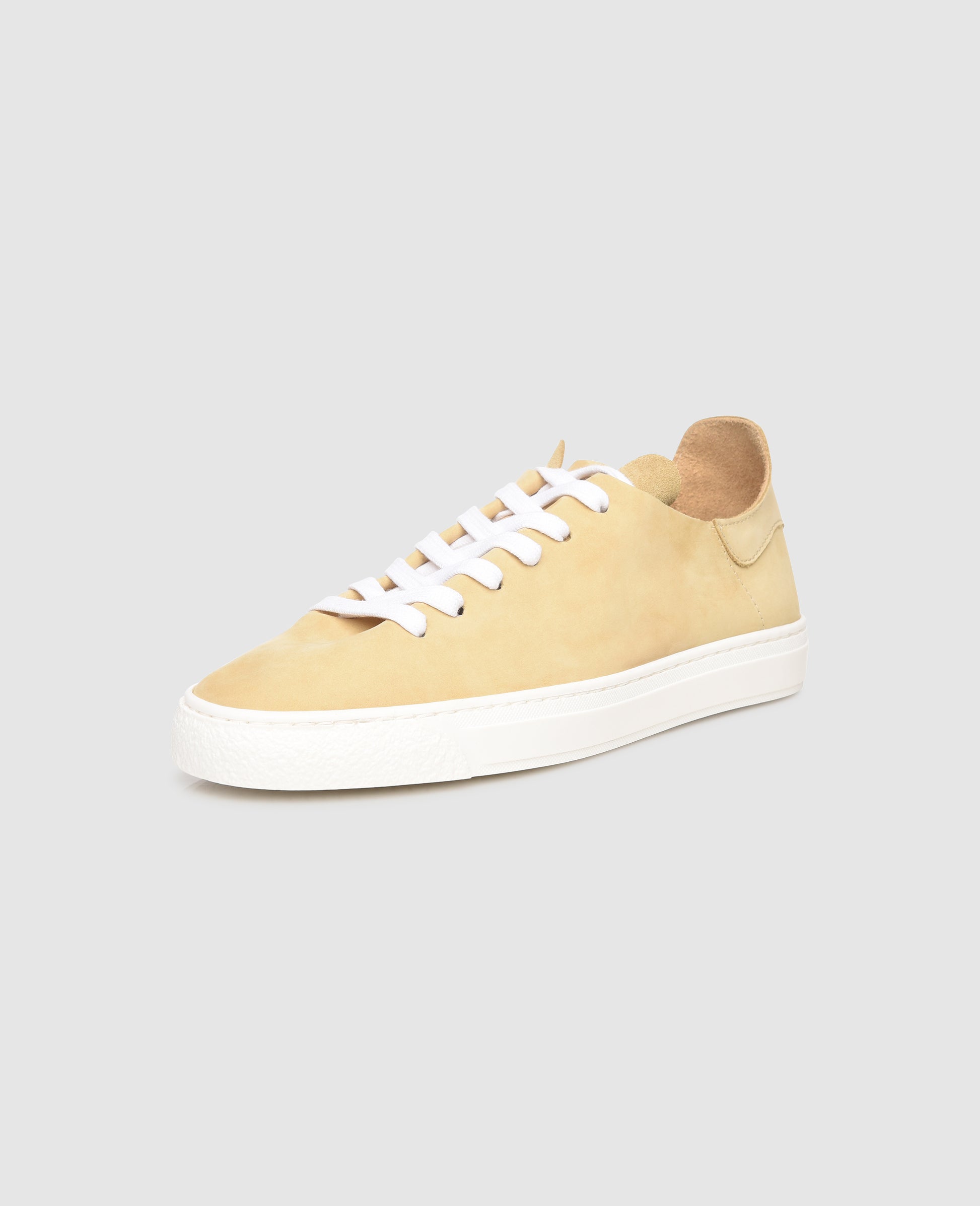 This handcrafted women’s trainer in sand is the perfect choice for virtually any summertime outfit. Its shaft is made from a single piece of soft nubuck. Only the counter features seams — otherwise, the design is consciously kept minimal, reduced to the essentials. The shoe’s thick, white rubber sole forms a stylish contrast against the sand upper, creating a fashionable look that really catches the eye.
