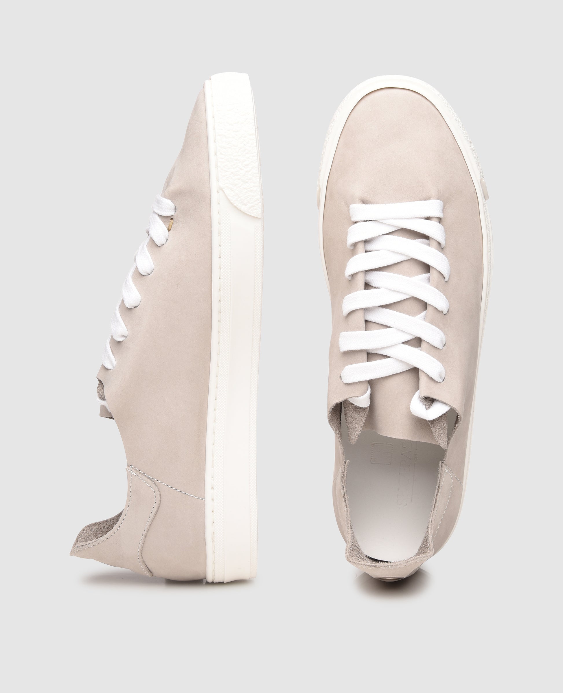 Feminine yet sporty: presenting the women’s trainer in nude. Handcrafted from a single piece of leather, this shoe features just a single seam at the counter, foregoing all other decoration. Paired with the shaft’s velvety soft nubuck, the shoe’s white rubber sole exudes a modern spirit. This trainer’s clean design is just the thing for style-conscious women, and pairs perfectly with all kinds of outfits.