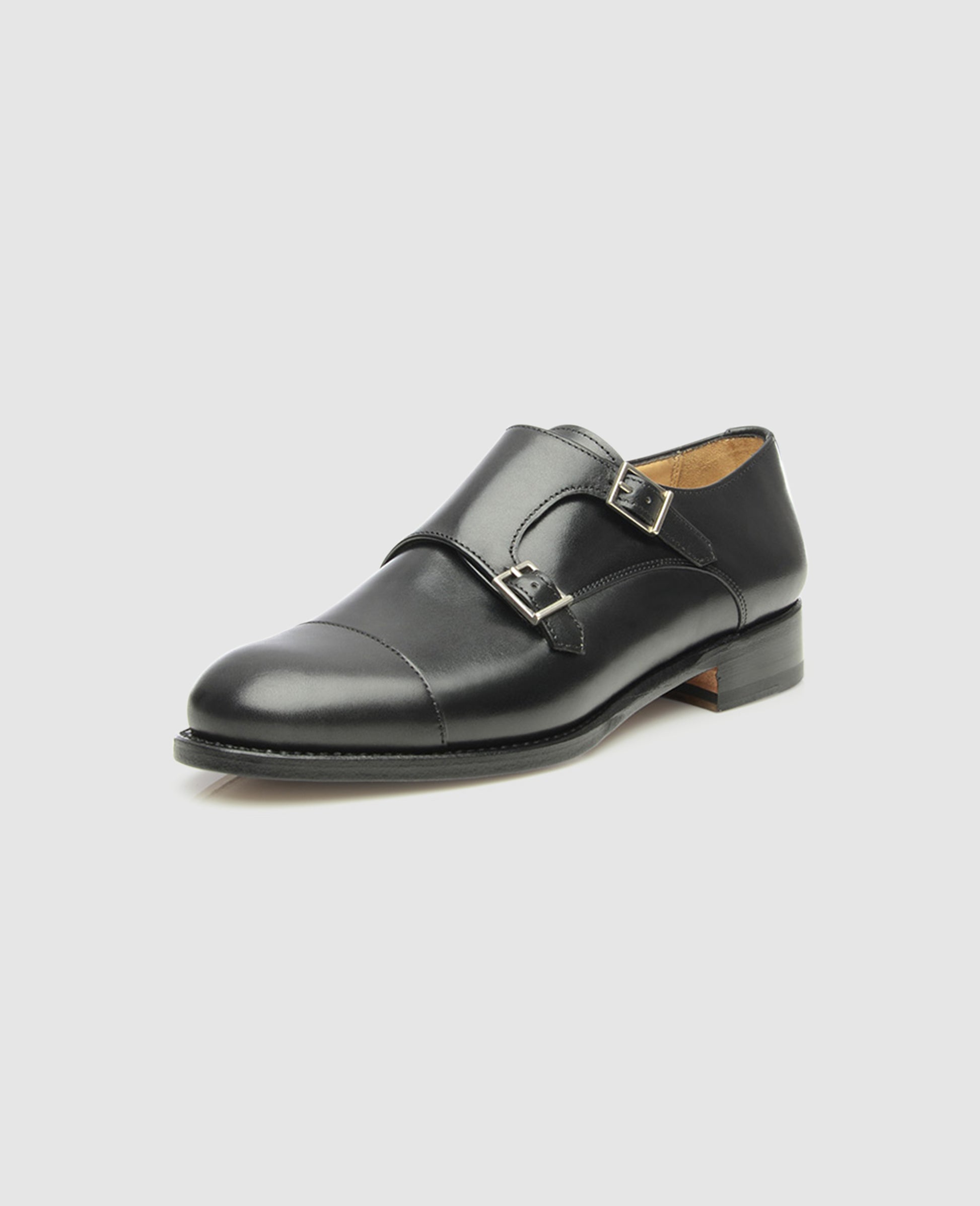 No. 195 is a Goodyear-welted, women’s black double monk shoe. The monk strap, also known as a »Monk shoe« is similar in shaft cut to the classic derby. That being said, the double monk shoe is quite distinctive, as it features a double buckle closure instead of lacing. Worn exclusively by men for centuries, designs such as this one have begun to gain popularity among women as well.