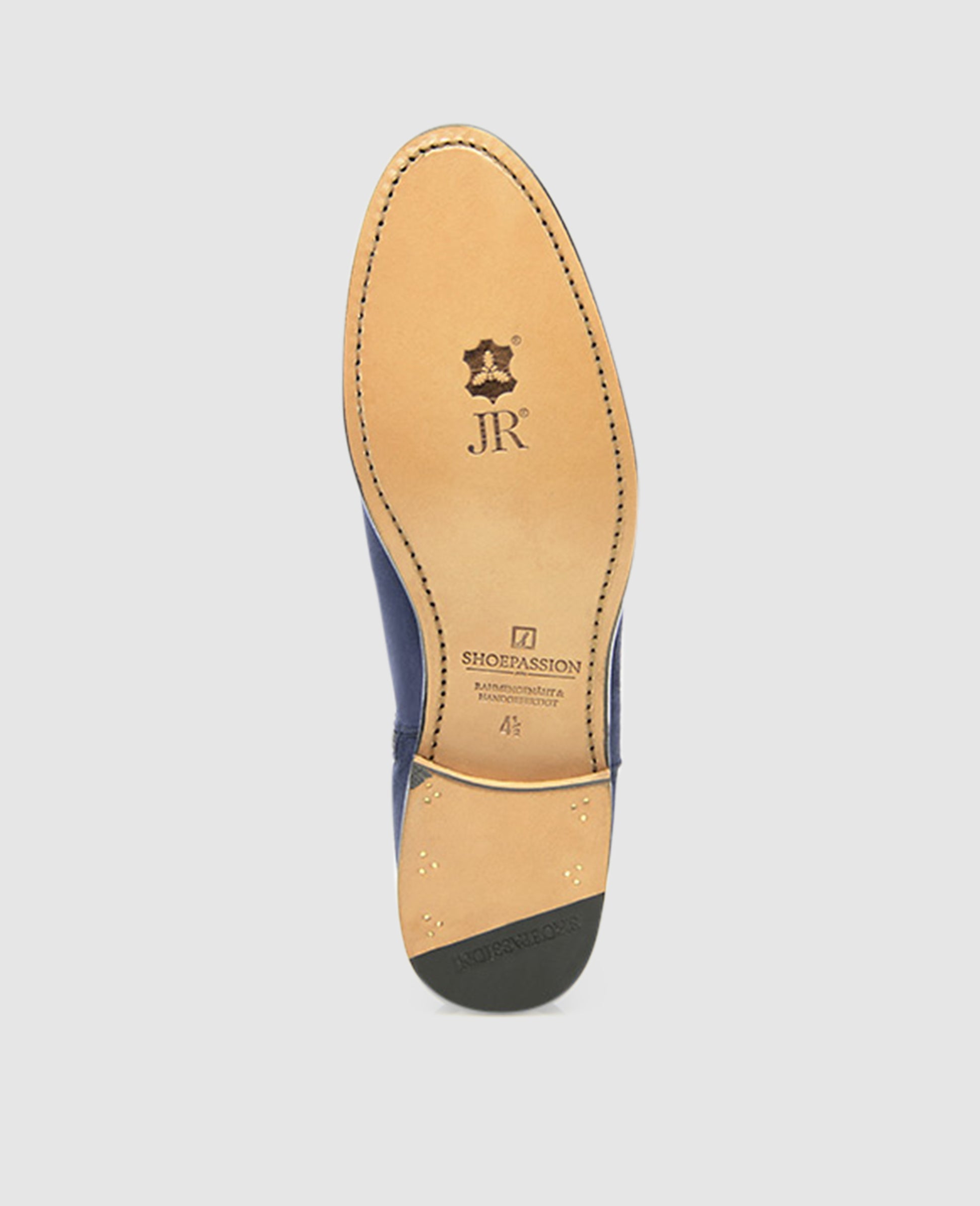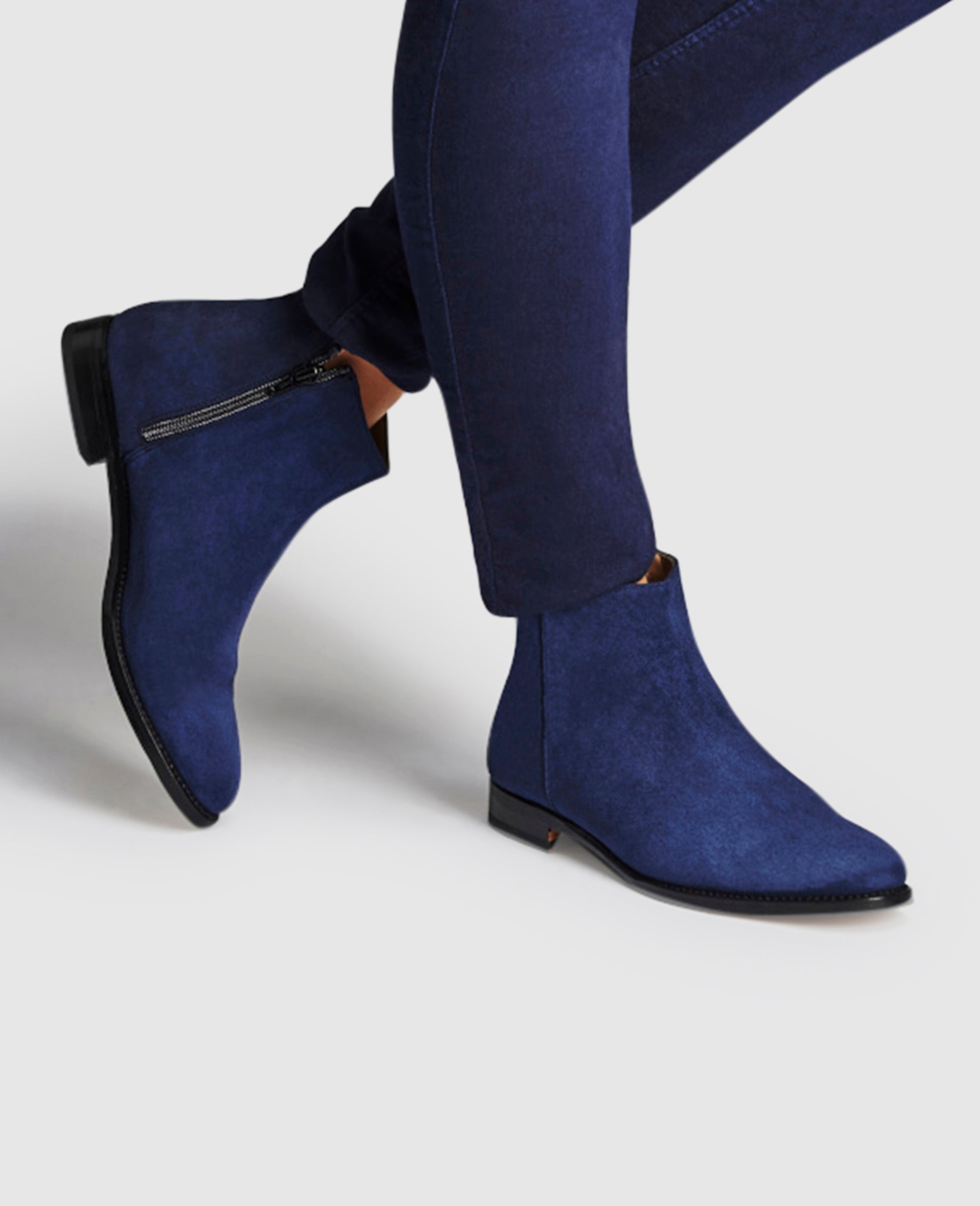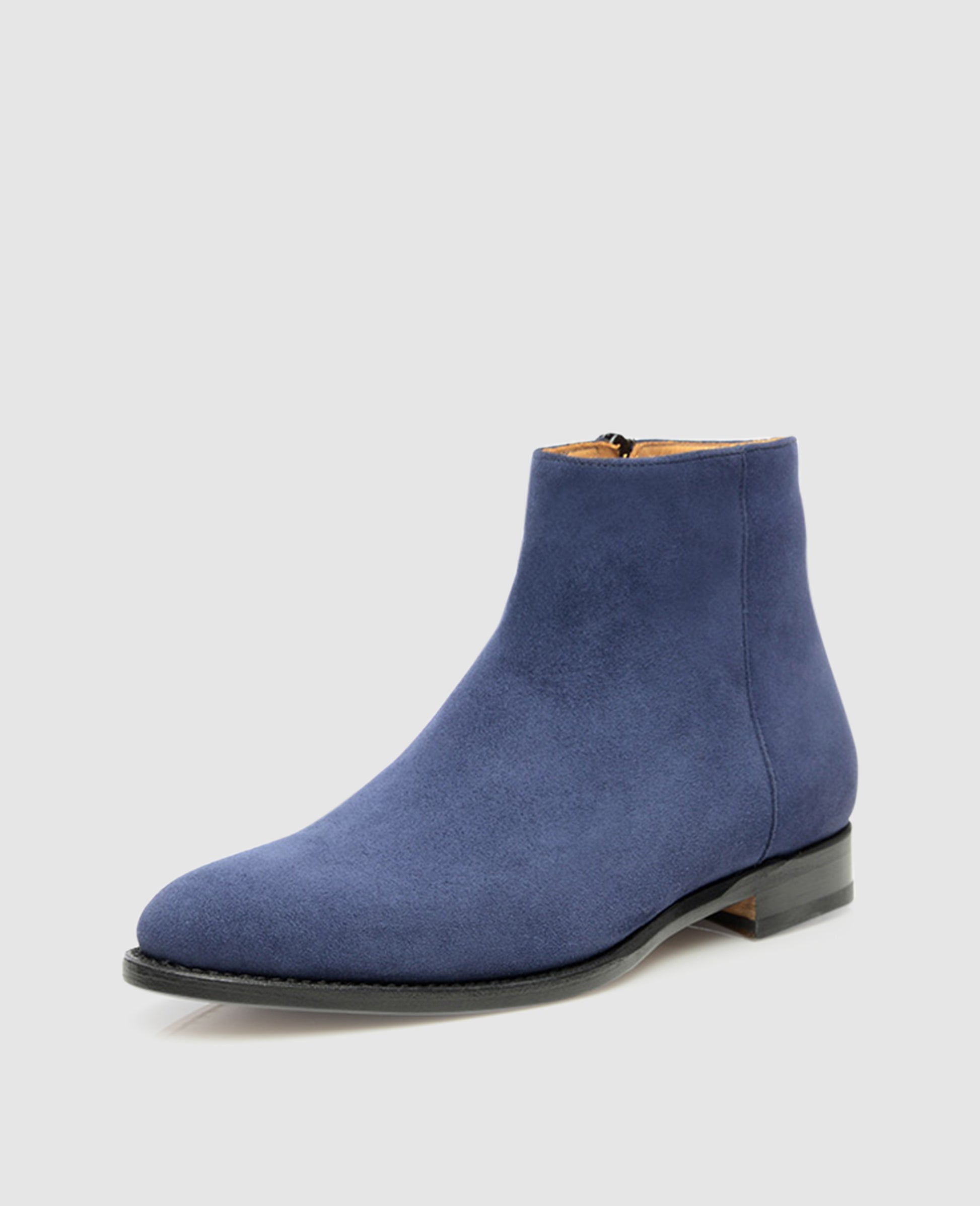 No. 205 is a wonderful alternative to the classic smooth leather shoe. This stylish, elegant blue suede ankle boot is assembled using the finest shoe production method; namely, Goodyear welting.