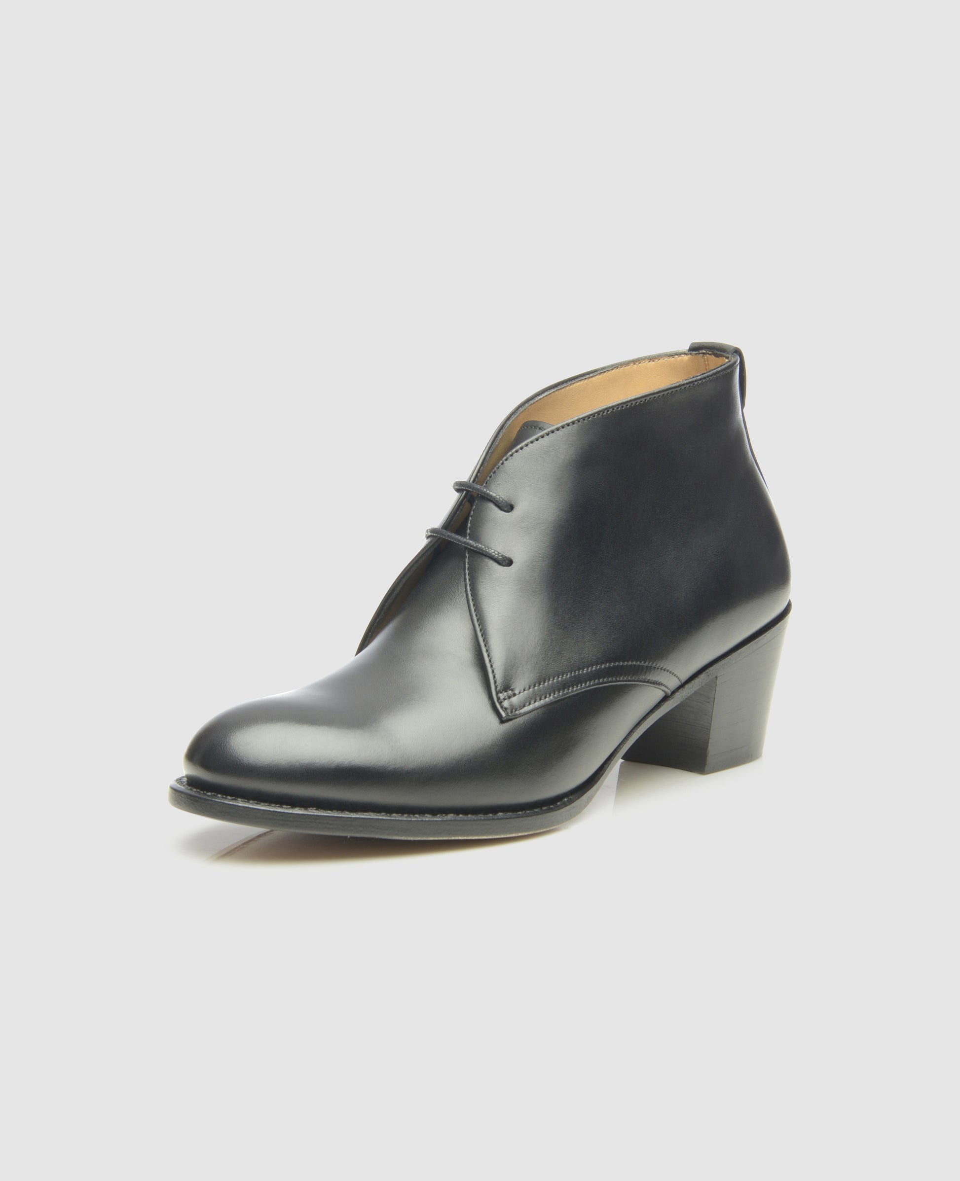 Originally worn by the British military, the George boot was fairly recently designed. King George VI himself commissioned the shoe as part of an initiative to modernize his guards’ apparel. Over time, this stylish ankle boot trickled over into women’s fashion as well. Handcrafted and Goodyear-welted, No. 208 is a refined women’s George boot in black.