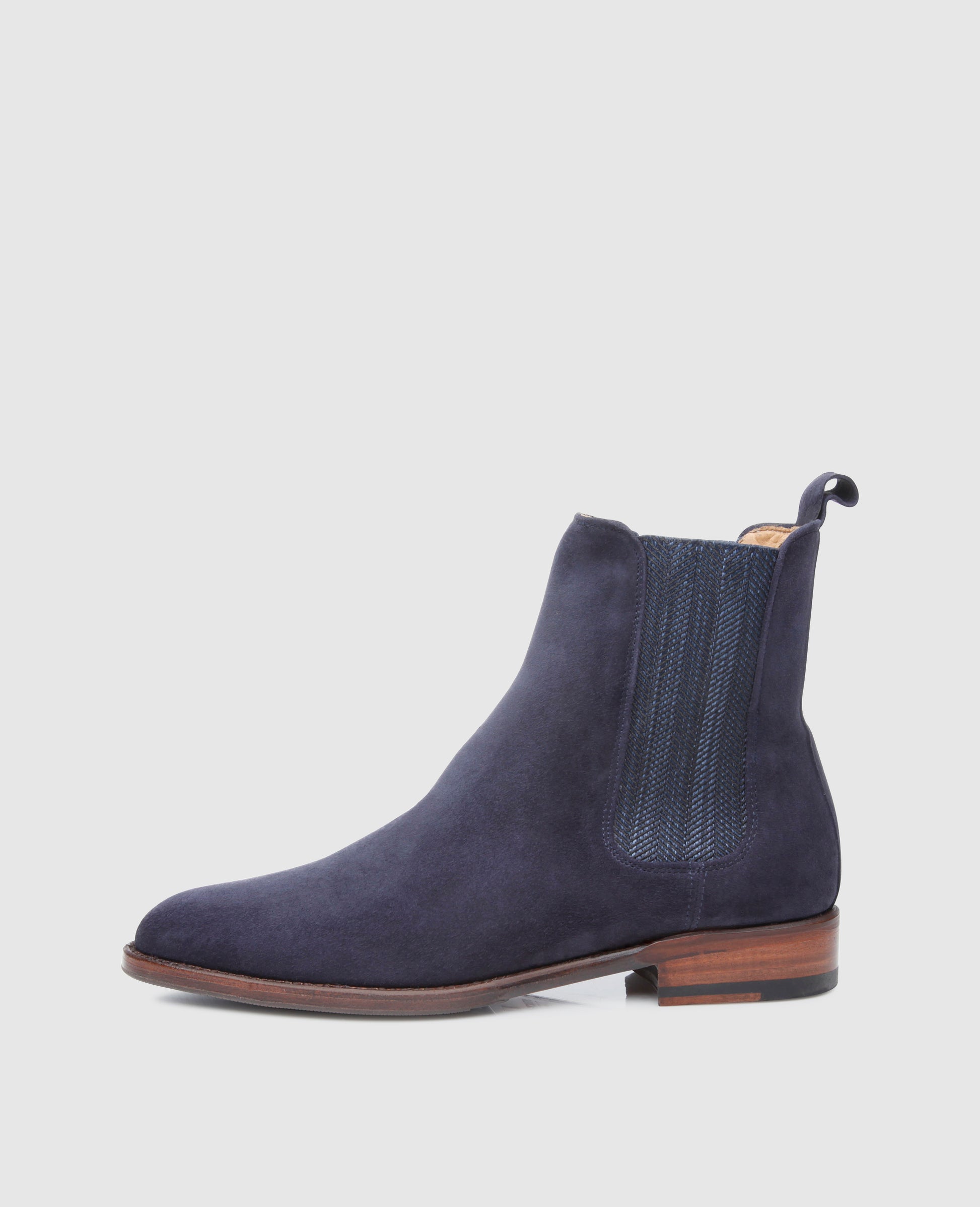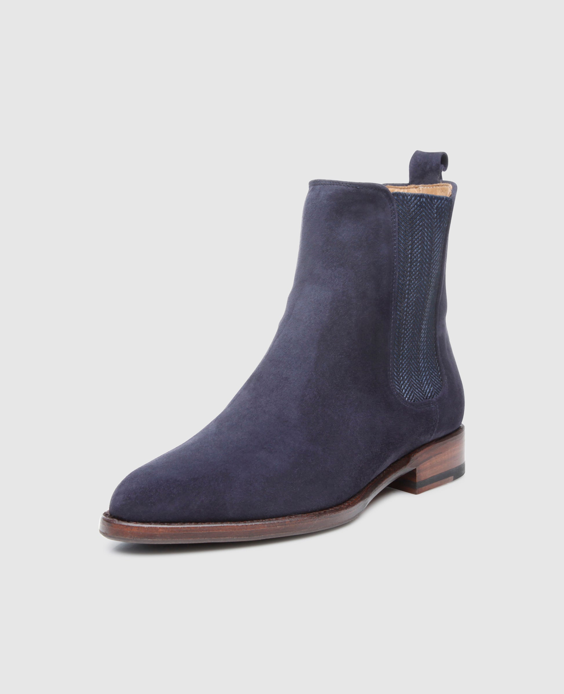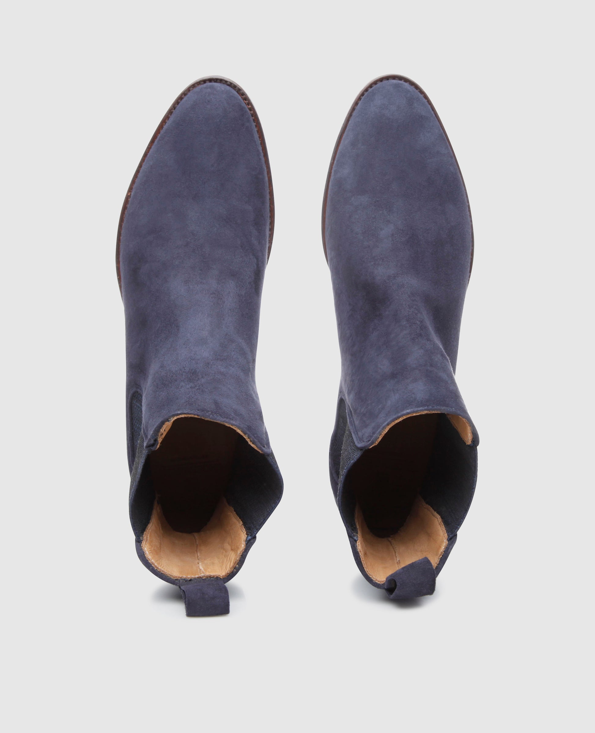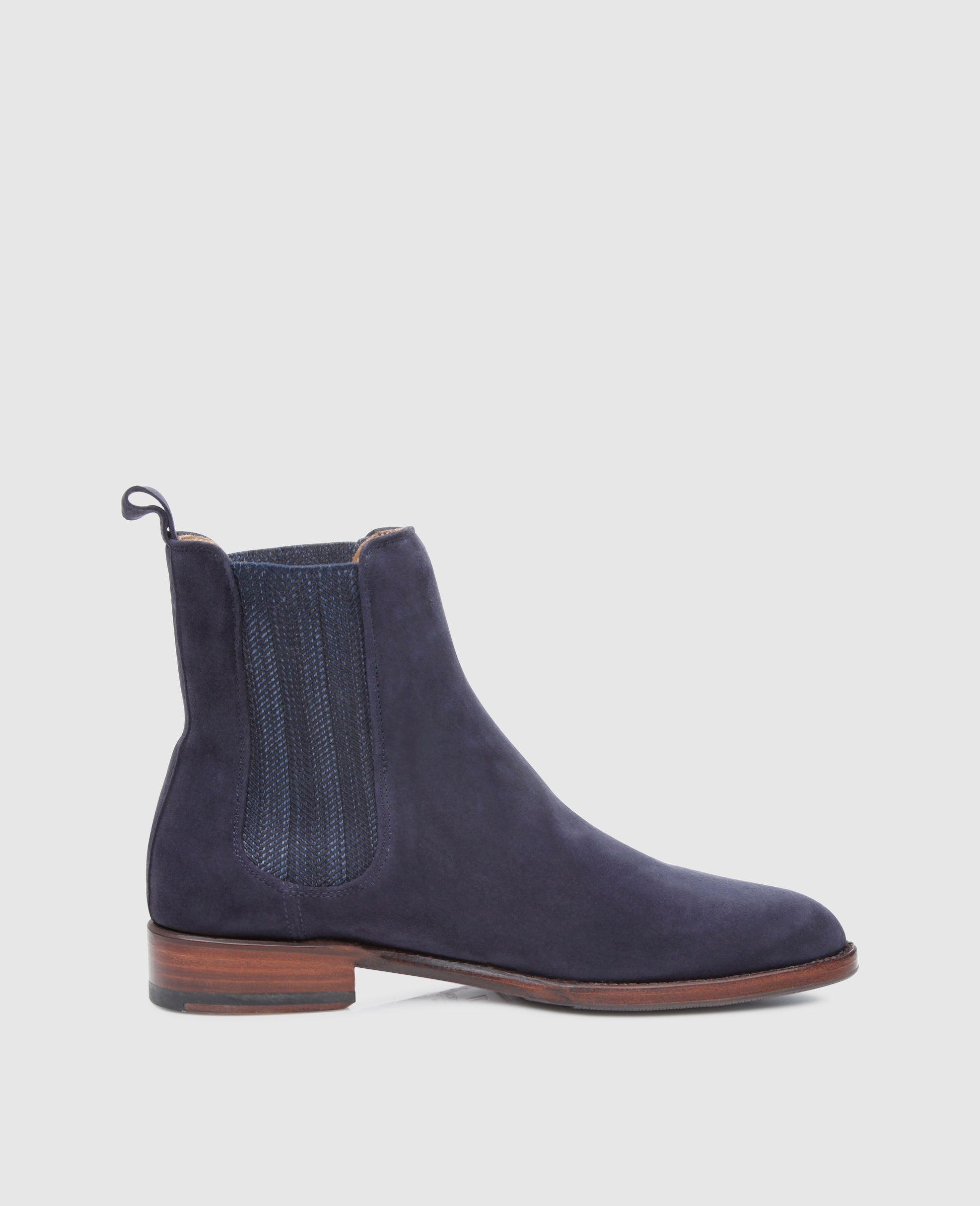No. 2301 proves that a Chelsea boot doesn’t have to be black or brown to be fashionable. The beloved ‘Beatle boot’ is seen here in dark navy blue, stylishly complemented by its patterned inserts. Crafted from fine velours and equipped with an additional Vibram sole, these boots are endlessly versatile.