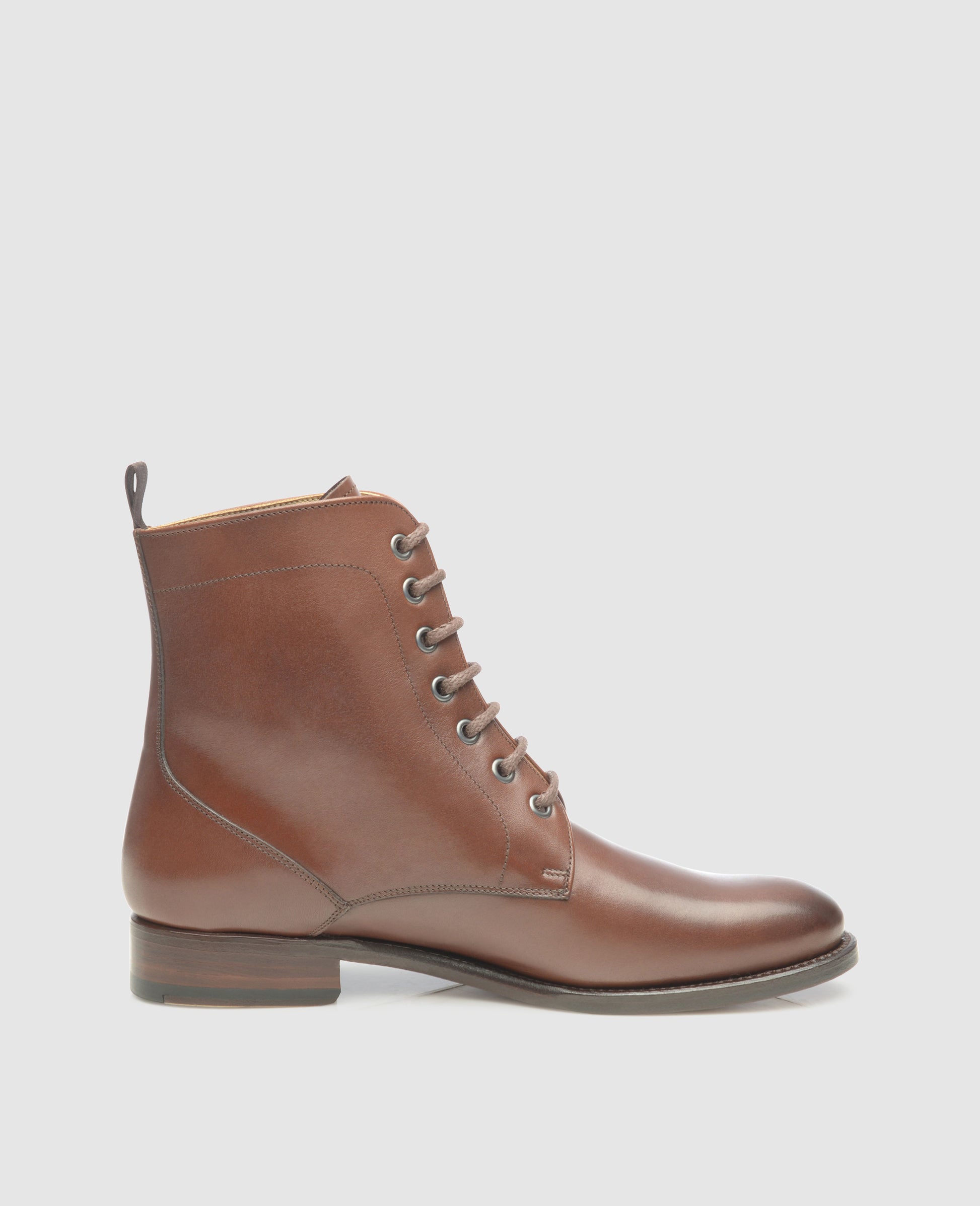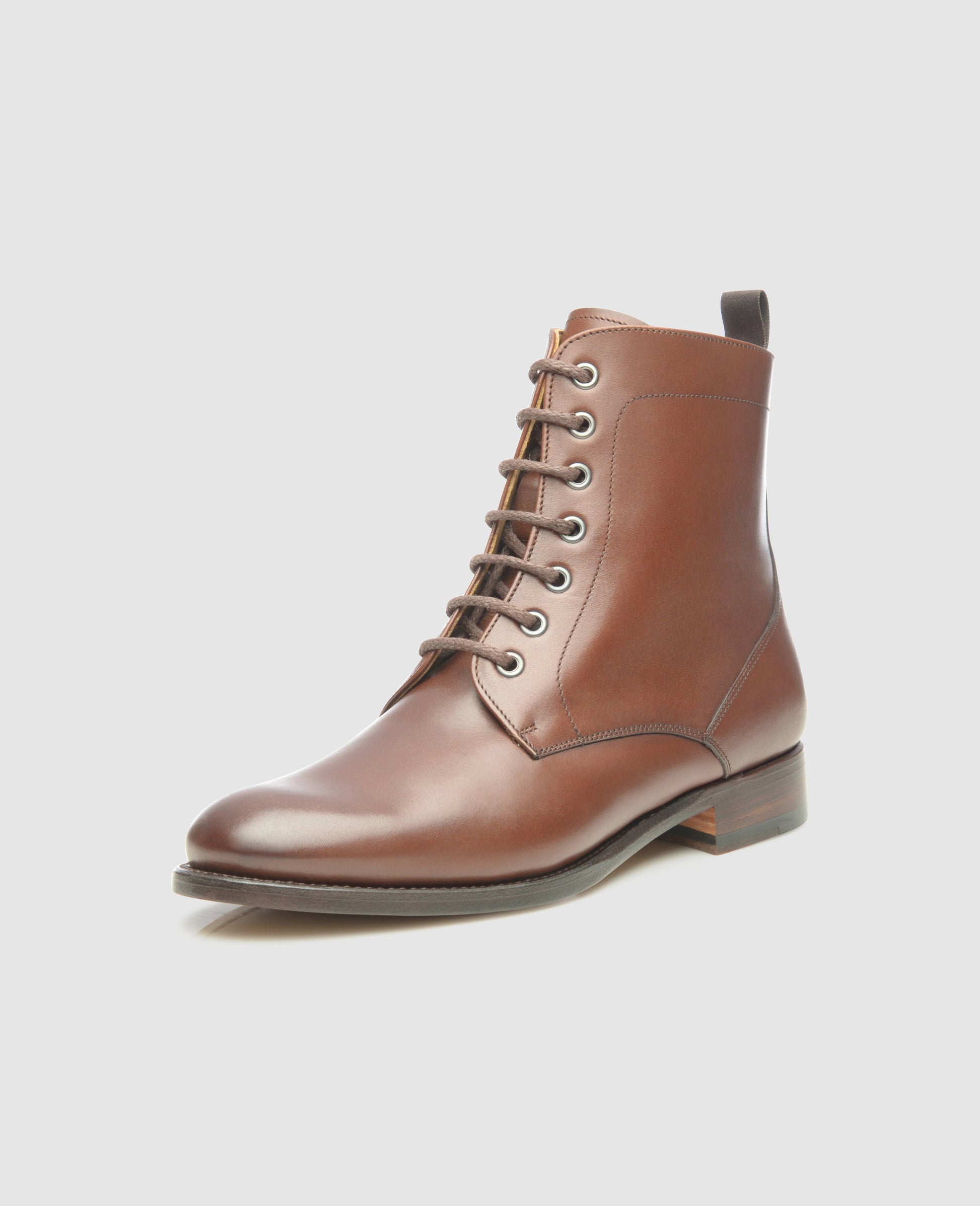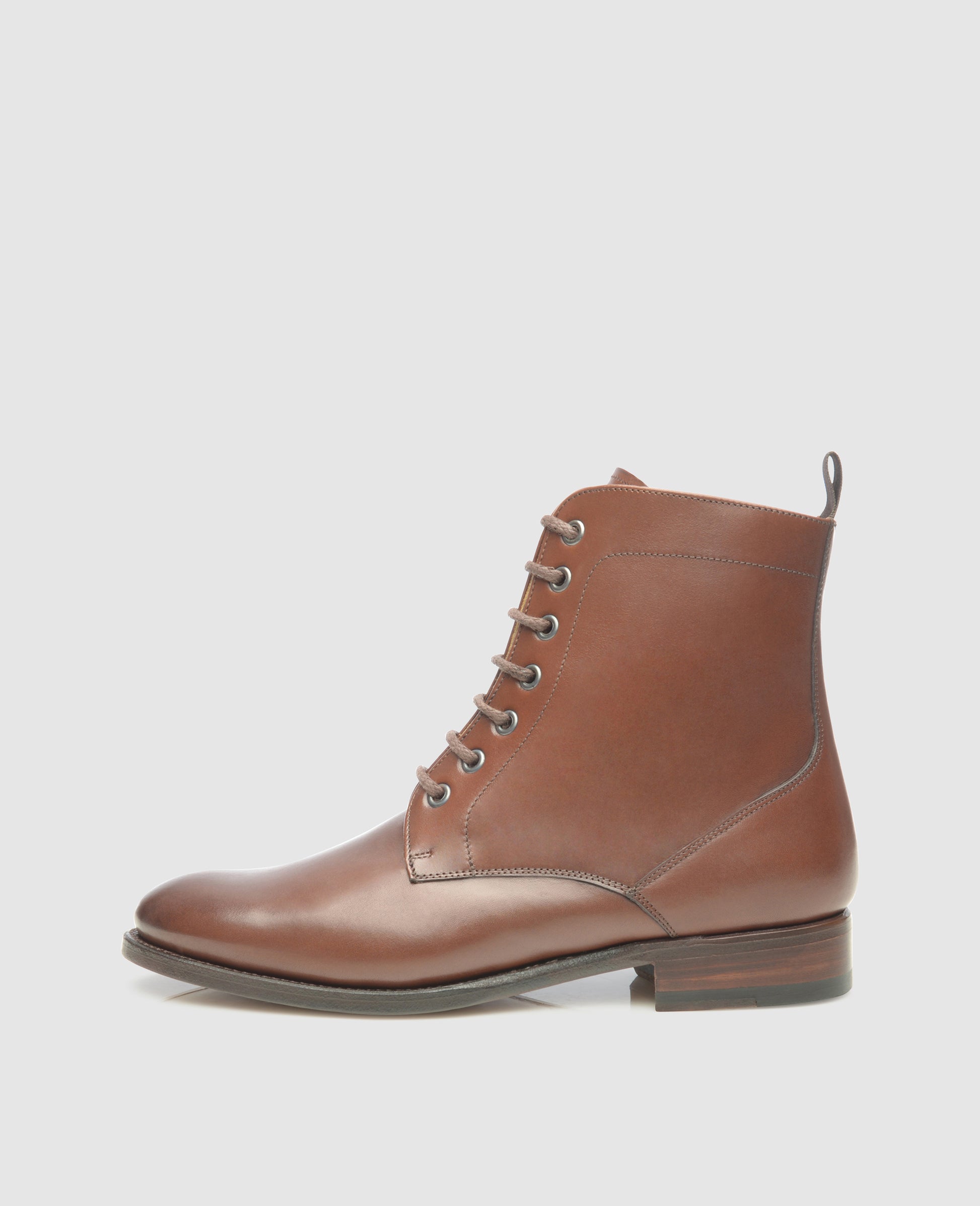 This Goodyear-welted women’s Derby boot in dark brown is perfect for cool summer evenings as well as the colder, wetter months of the year. In terms of its basic shaft cut, No. 251 is similar to a classic Derby—like that shoe, this boot features open lacing. Unlike its low-rise counterpart, though, this comfortable lace-up boot features a shaft that extends far above the ankle, ensuring warmth and comfort even at chilly temperatures.