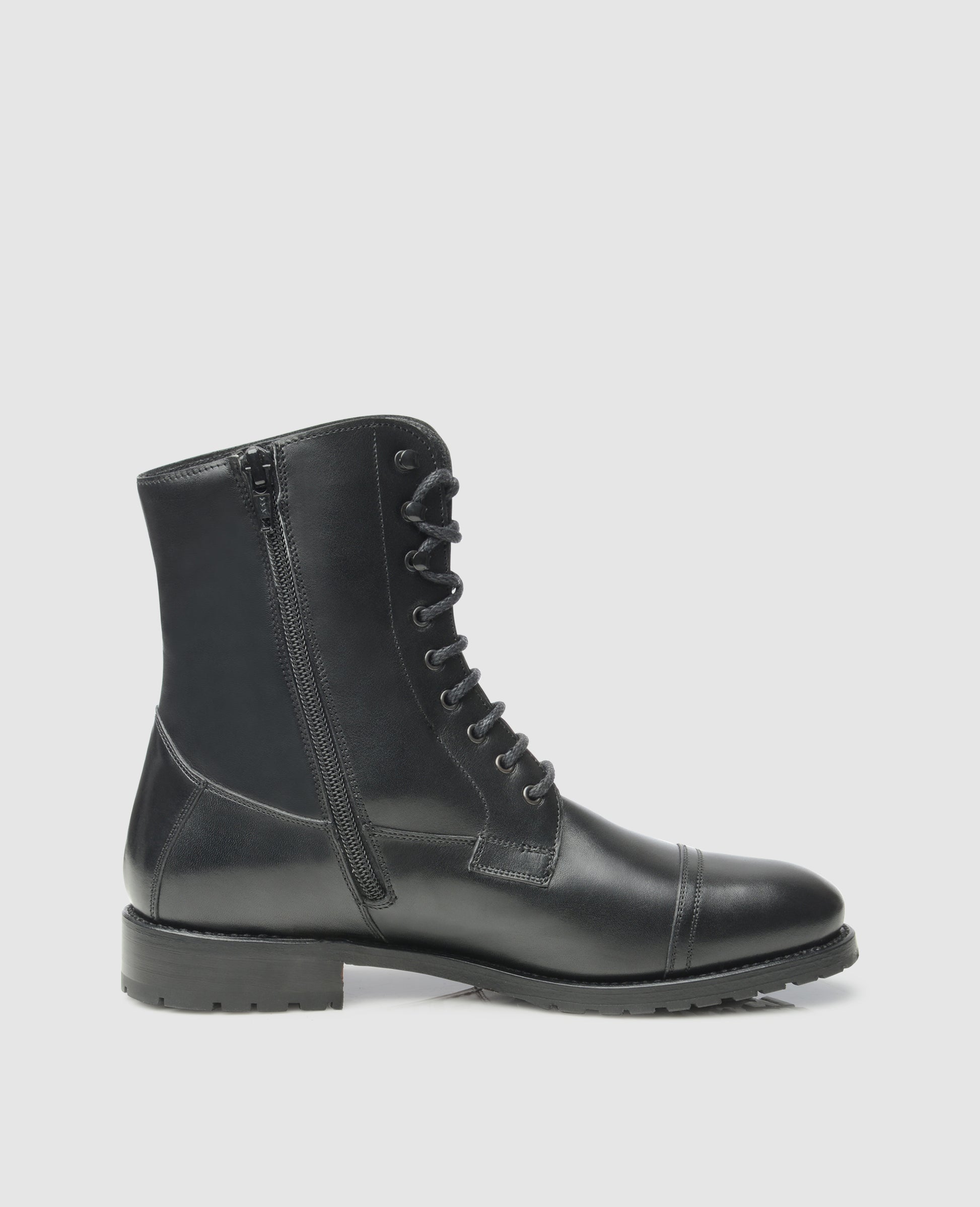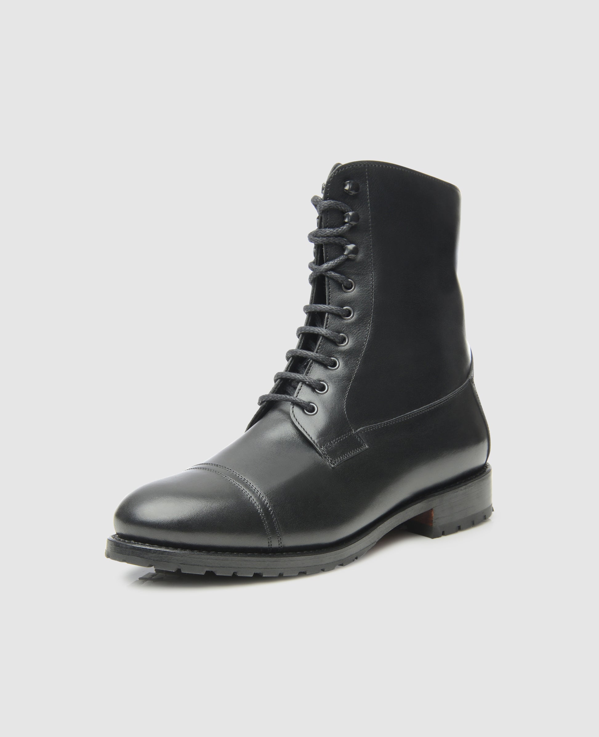 No. 271 is a classic women’s lace-up boot in black. While similar in shaft cut to the classic Derby, the shaft on this model reaches notably higher than that of its famous low-rise counterpart. Open 6-eyelet lacing follows the traditional Derby design, while the leg is held firmly in place with 3 hook-and-eye pairs. The clean lines of the design are softened by the toe cap and side zipper closure.