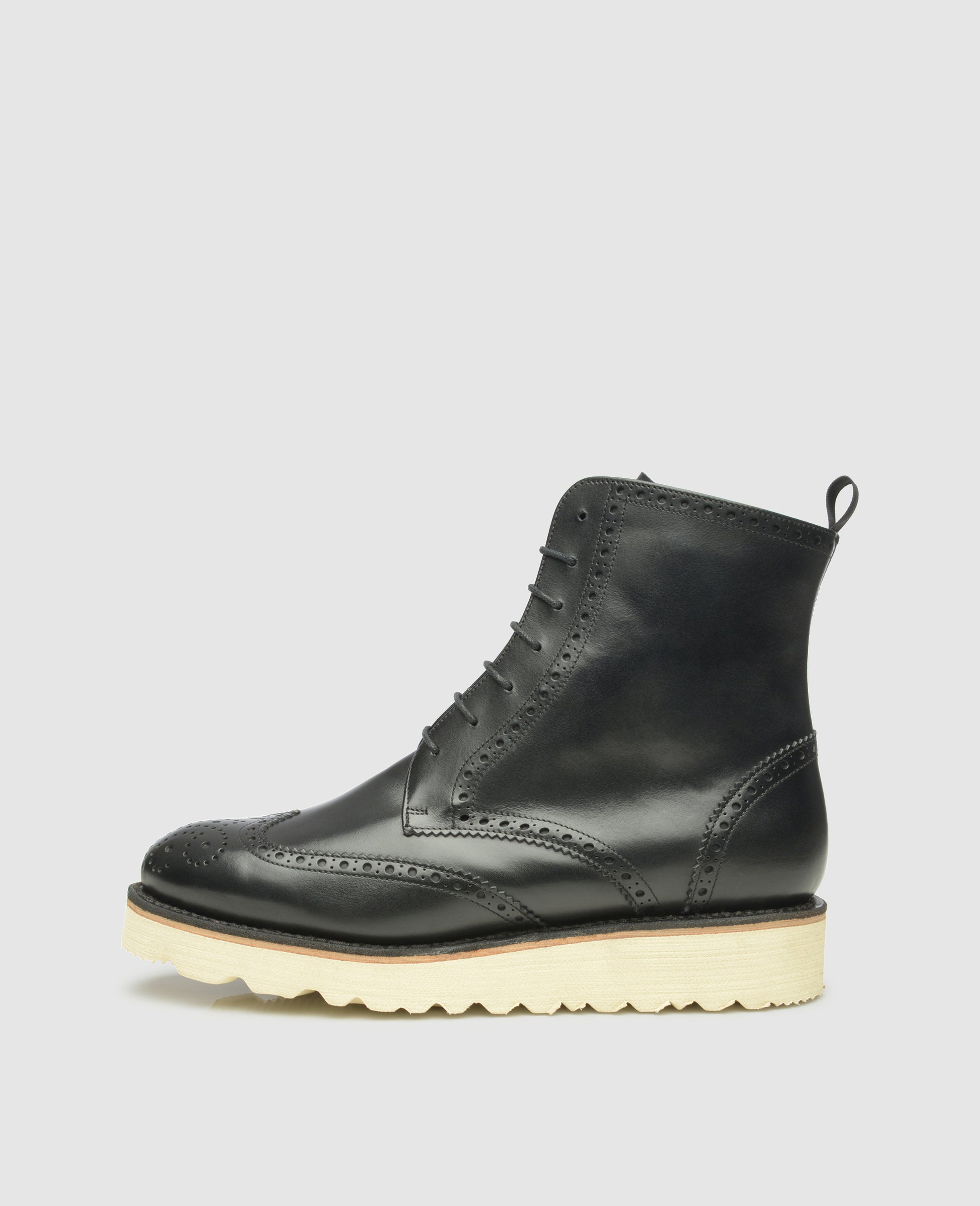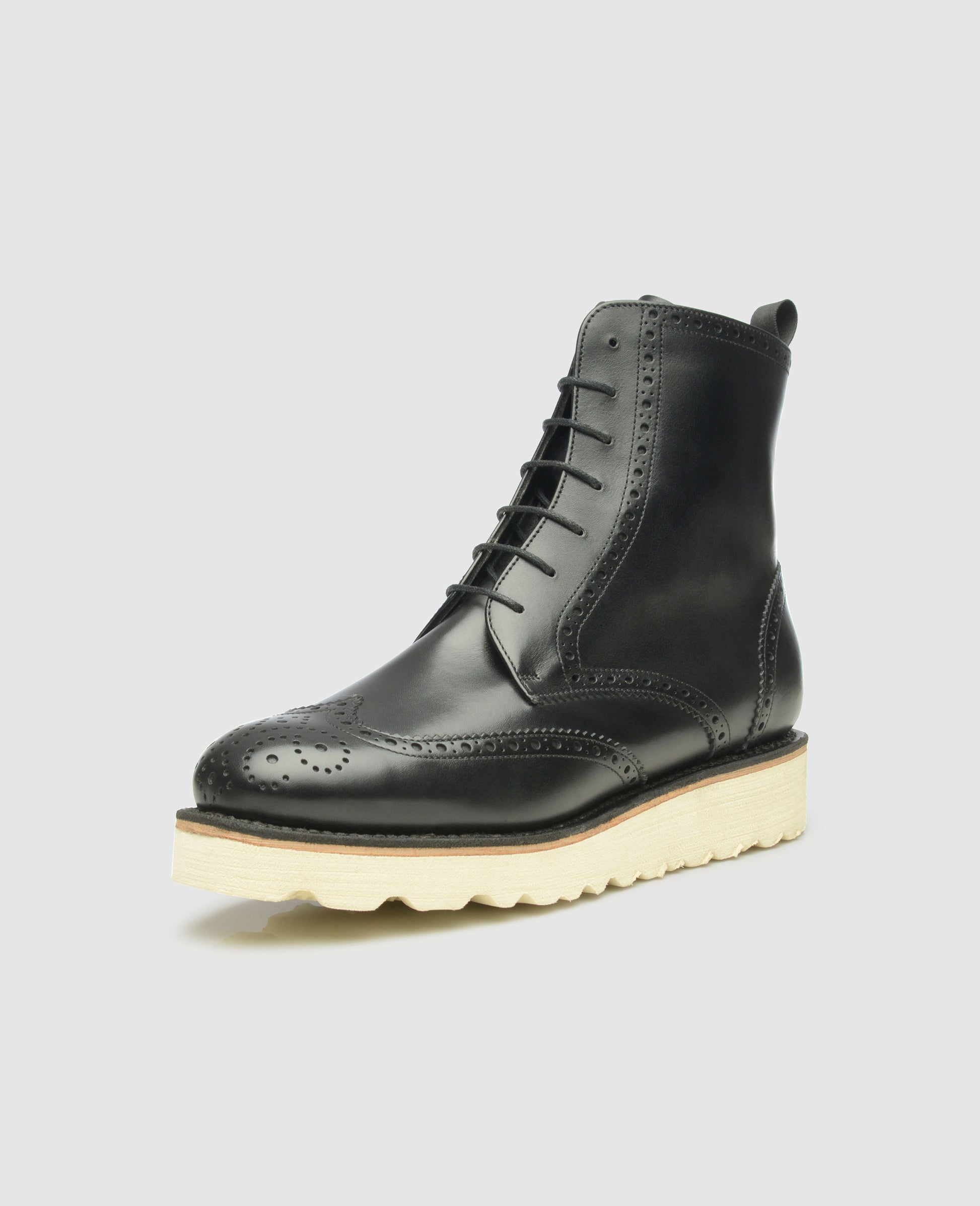When Jack Nicholson wore Derby boots in the Academy Award-winning film “One Flew Over the Cuckoo’s Nest,” they became a cult classic. This female take on that extravagant lace-up boot is made entirely of fully-dyed black calfskin.