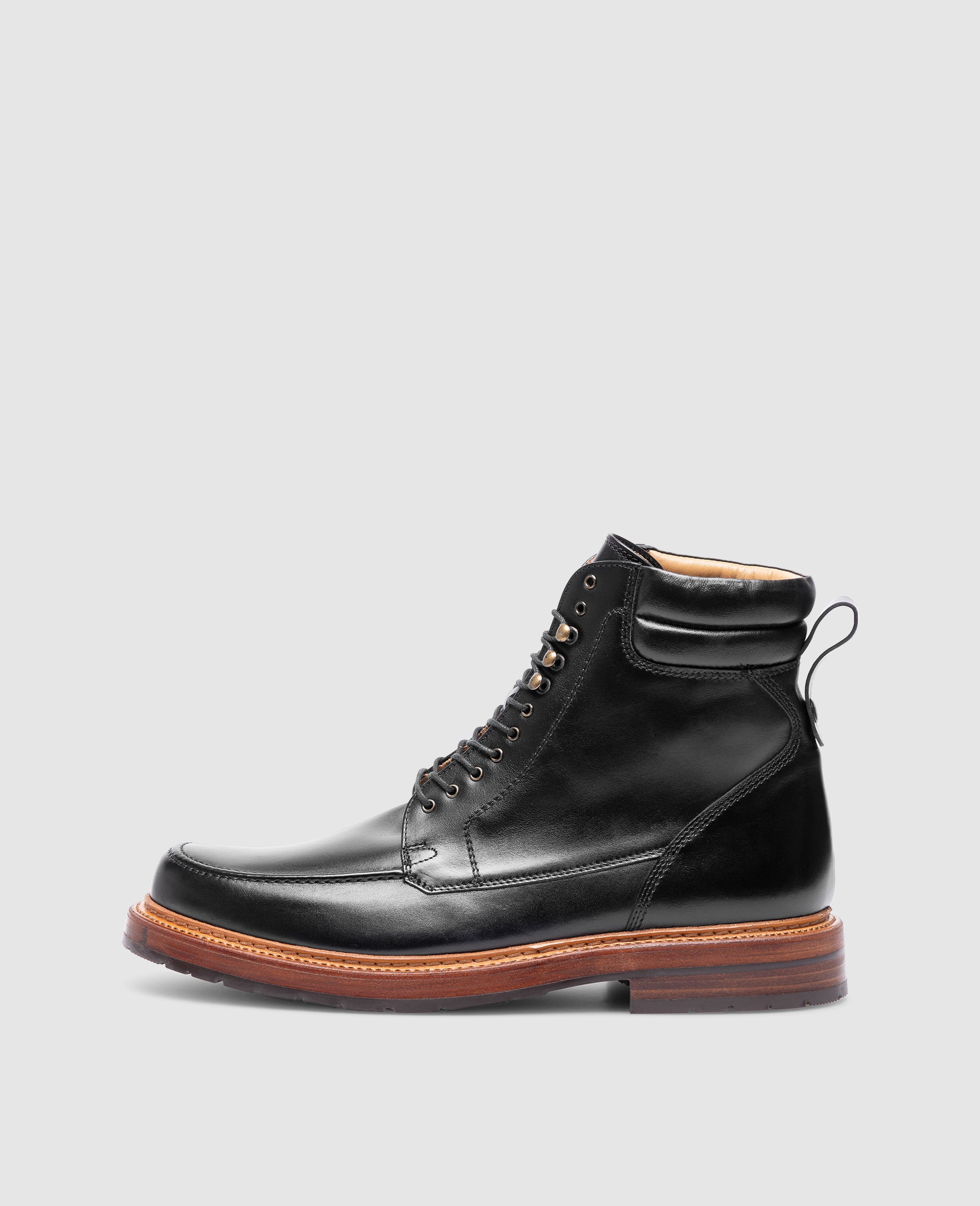 A superb addition to our Heinrich Dinkelacker boots collection, the Norwegian silhouette wins through it's unique vamp design due to the remarkable stitch line along the fore foot area. Combined with a subtle shiny yet elegant box calf leather and hand made welted sole unit popped with a natural brown color, the Norwegian has become a staple in our new boots collection. The inside is enriched with a smooth leather running all the way down until the toes.