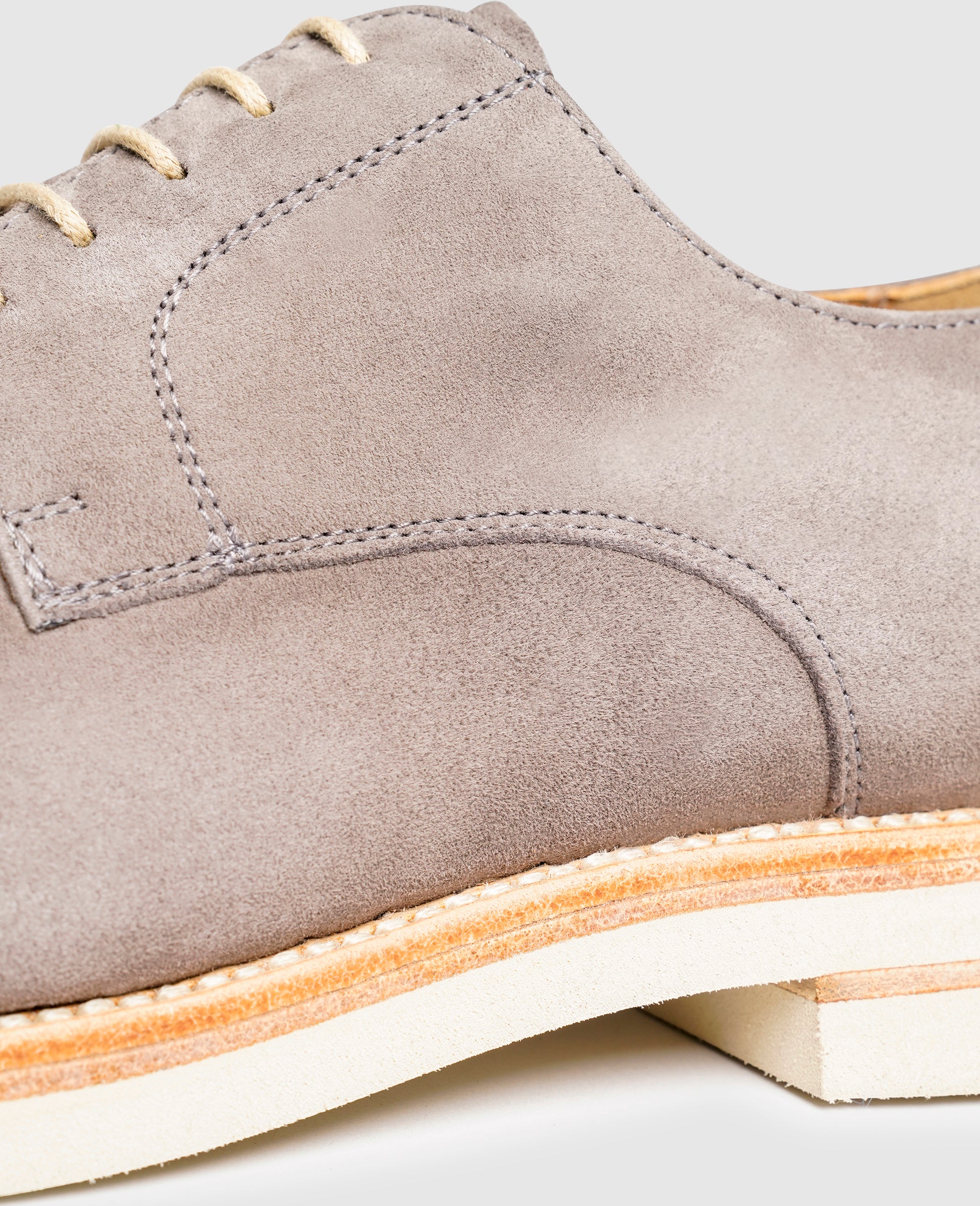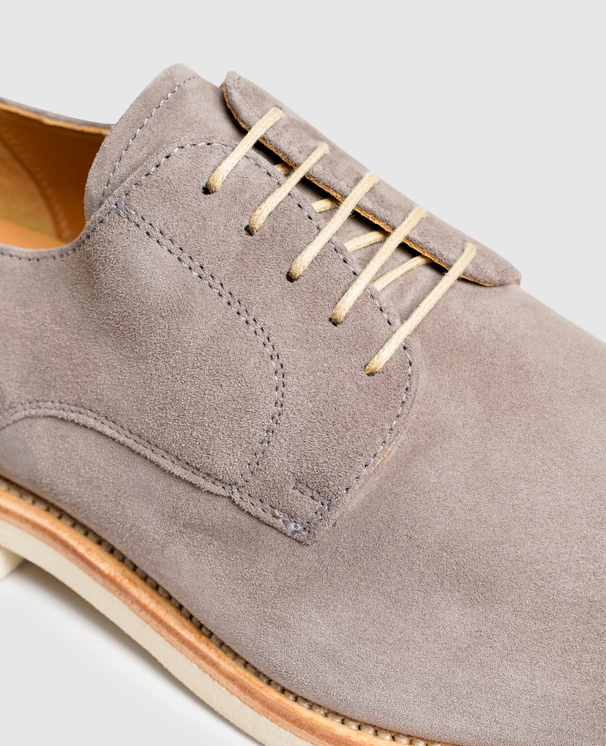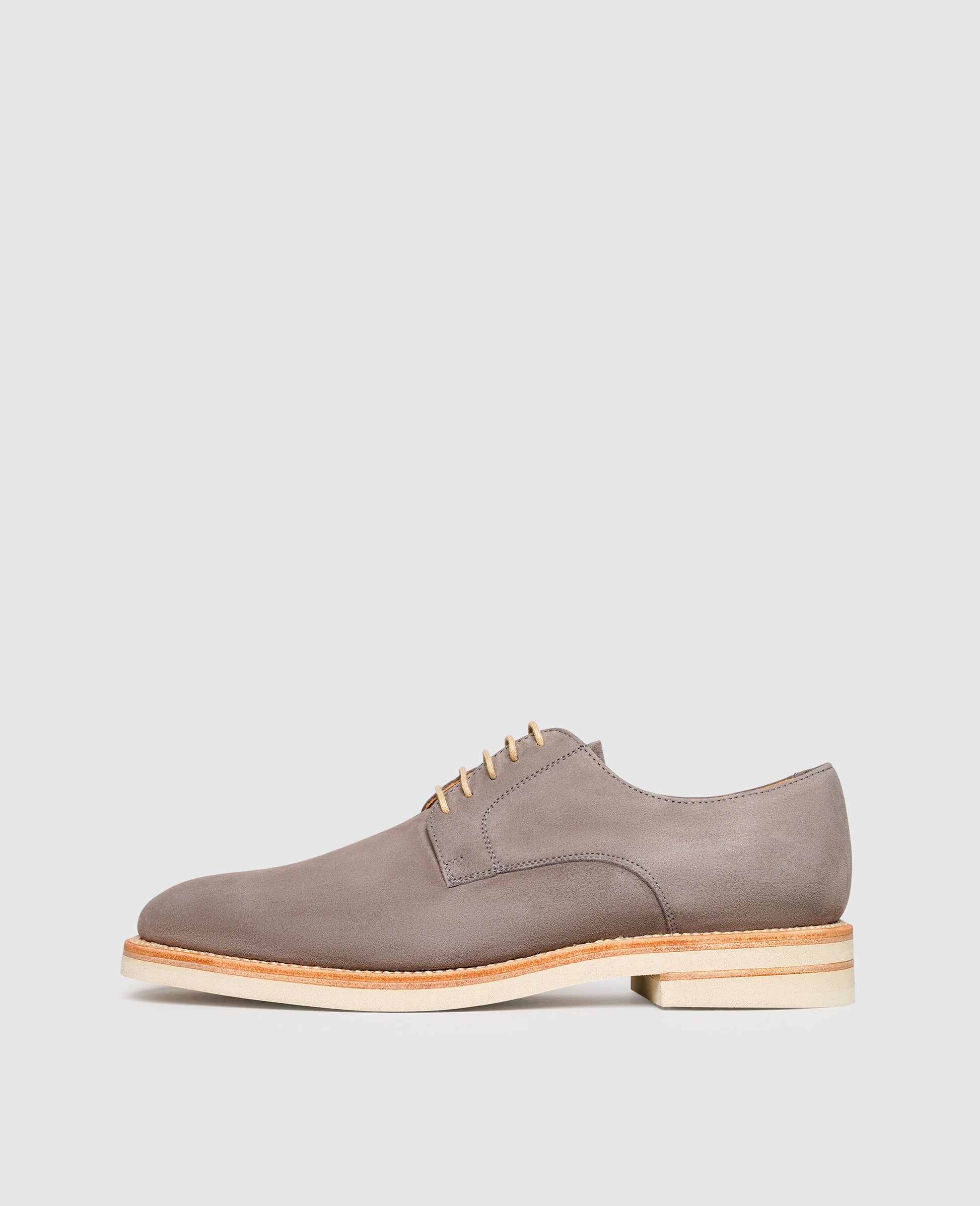 The perfect choice for a smart casual look! This Goodyear-welted plain Derby features a grey velours upper and open five-eyelet lacing. A light EVA outsole accentuates the shoe’s stylish look.