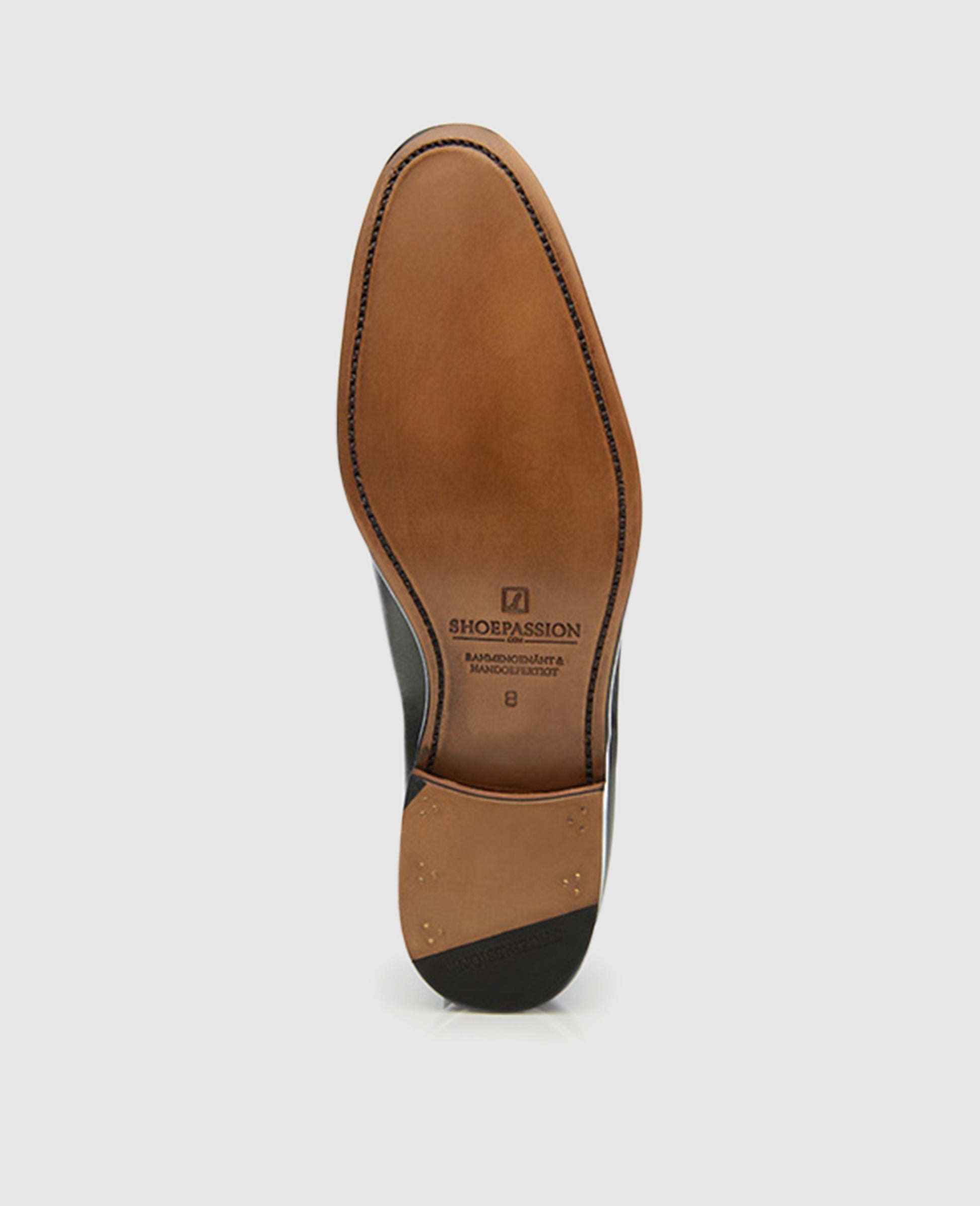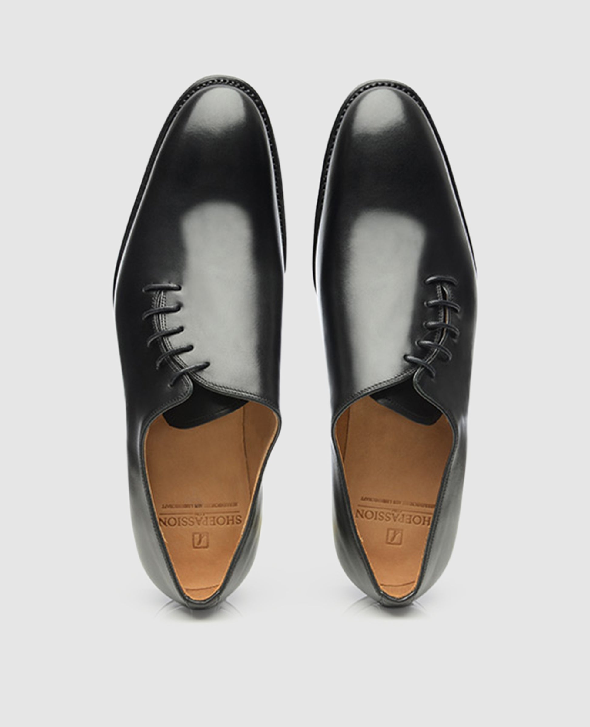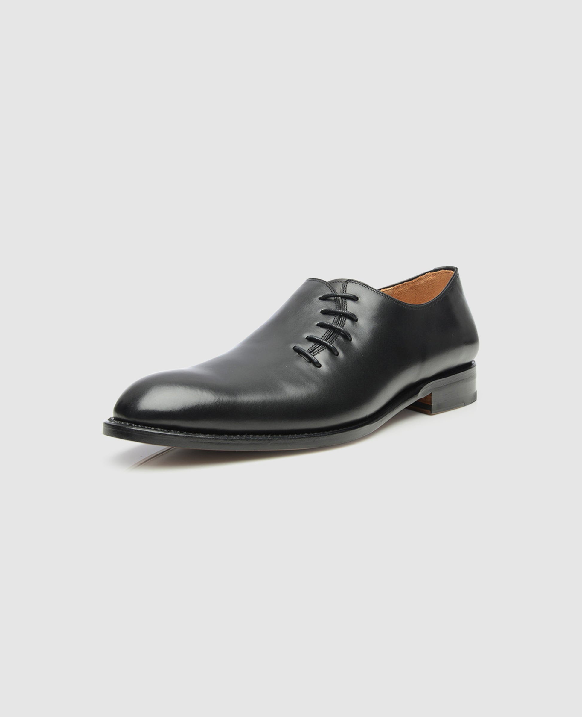 Our No. 346 is a classic black wholecut Oxford with an astonishing design. Generally a wholecut Oxford with a closed lacing is the most elegant and versatile of all men’s dress shoes in the world. Painstakingly cut from one single piece of leather, here a curved seam at the closure reduces the formality, but accentuates the shoe’s handsome lines.
