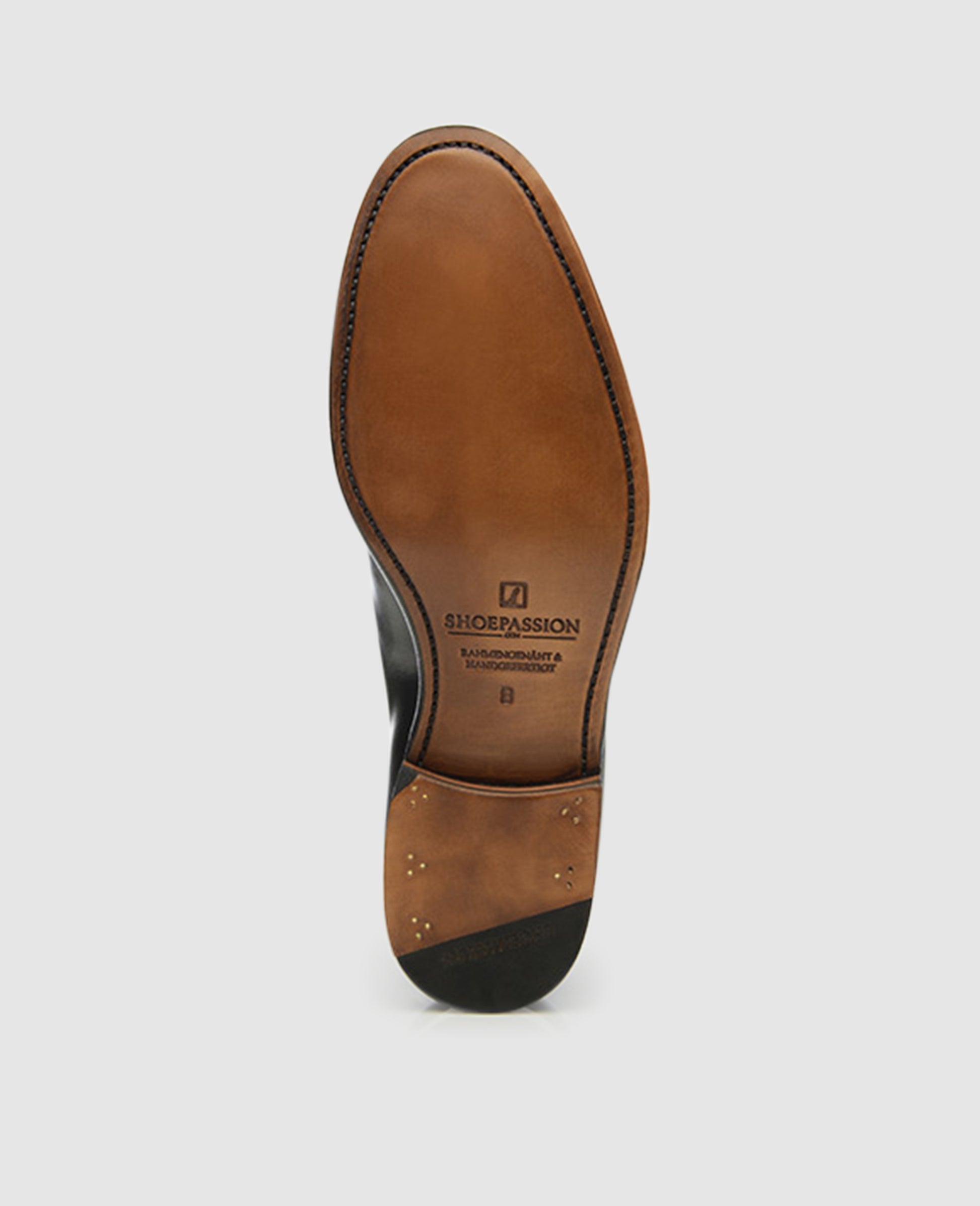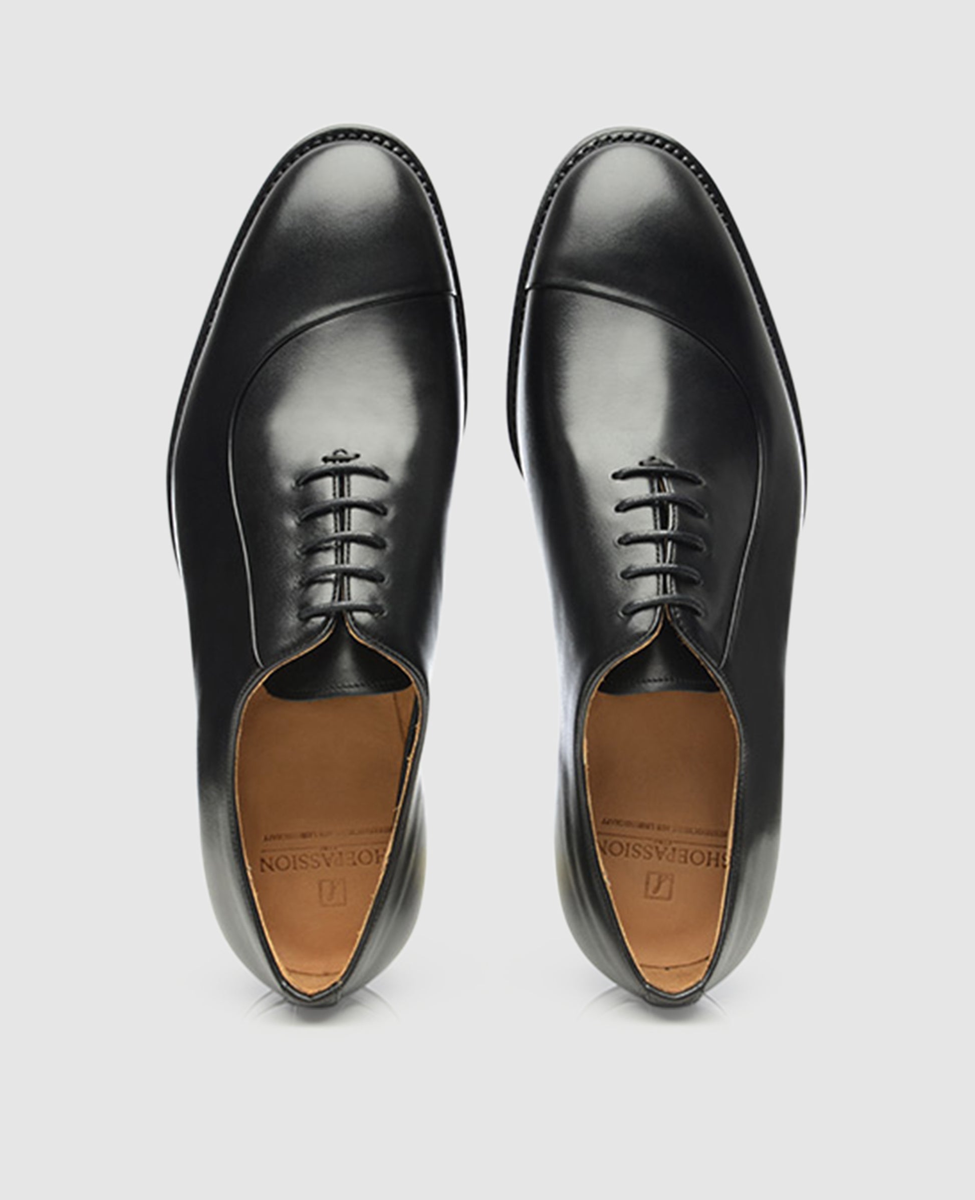 At first glance, our No. 348 is a traditional plain Oxford in black, but first impressions can be misleading. This classic shoe boasts an extravagant touch with its curved leather seam, splitting the upper in two. Crafted from finest French calf leather, these Oxfords are a timeless and discerning addition to any wardrobe.