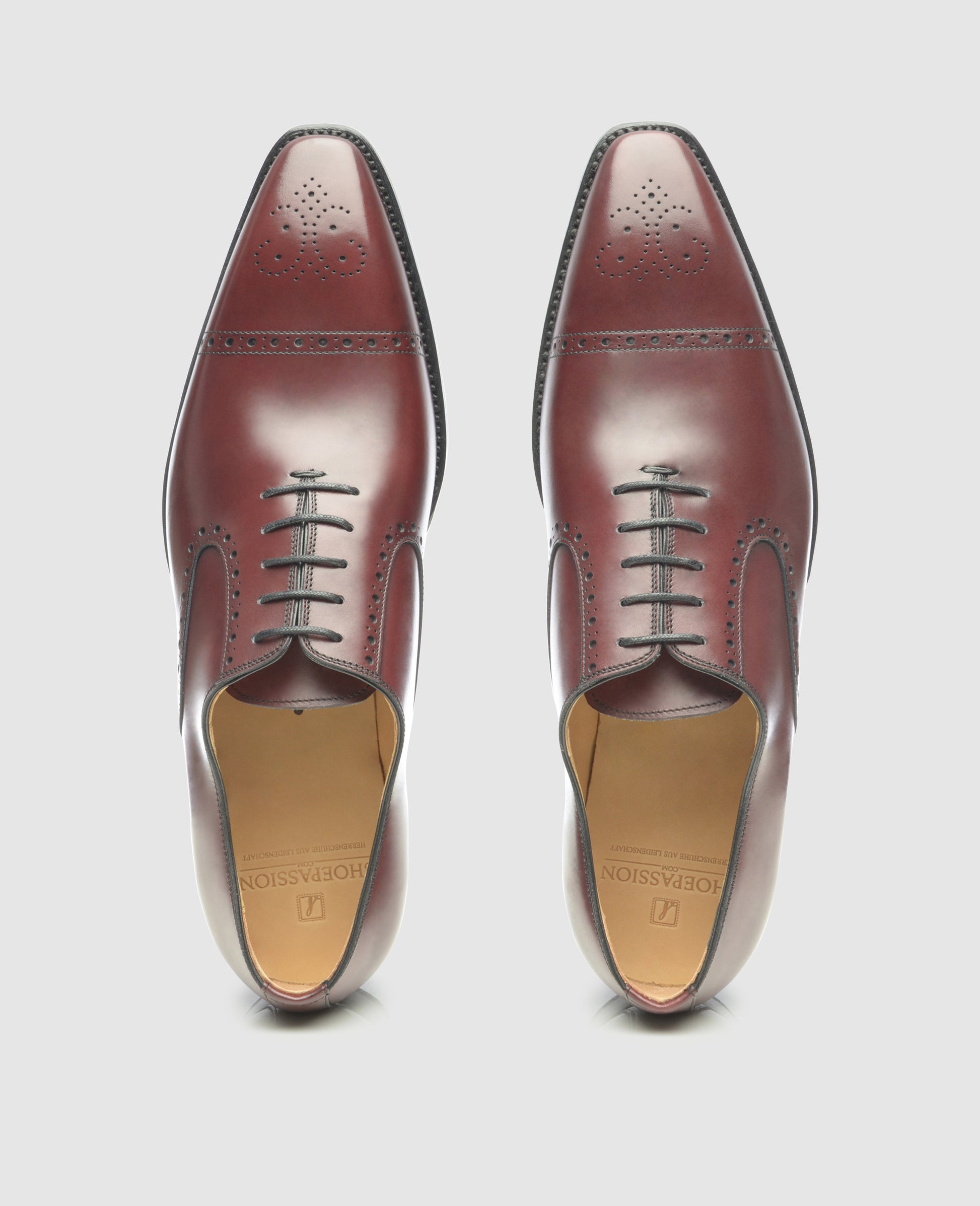 Through to the 20th century, the style dictate “no brown in town” reigned supreme, barring all upper colours besides black from sophisticated occasions. That rule has long been overturned. Now, shoes of all colours, such as this Goodyear-welted half-brogue Oxford in bordeaux, are welcome at elegant affairs. This modern shoe thrills with a fully-dyed bordeaux upper.