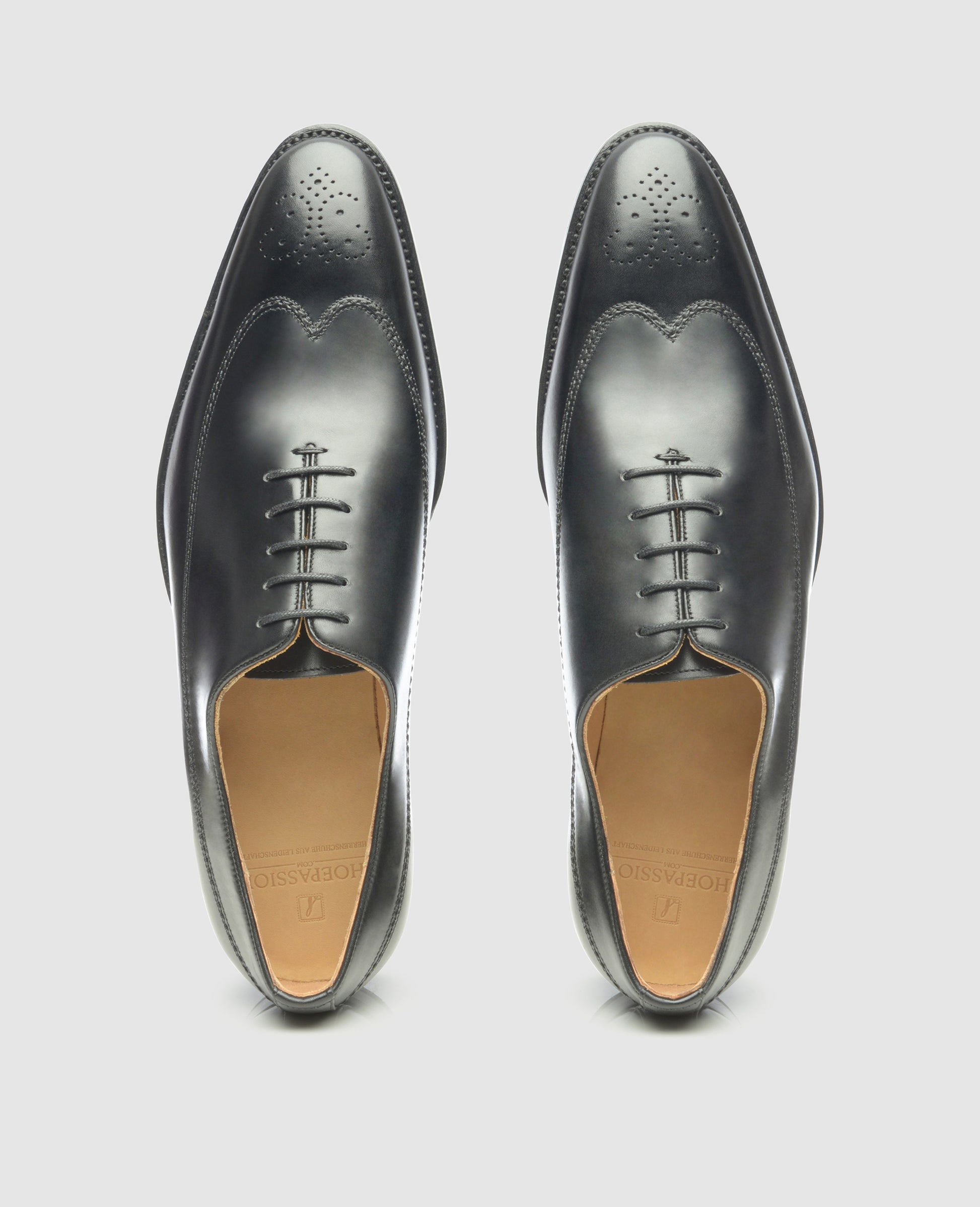 In the US, full-brogues are called “longwing brogues” if they feature a heart-shaped cut-out wing cap extending to the heel. While longwing brogues are known for their opulent broguing, No. 353 is relatively subdued in terms of decorative perforation.