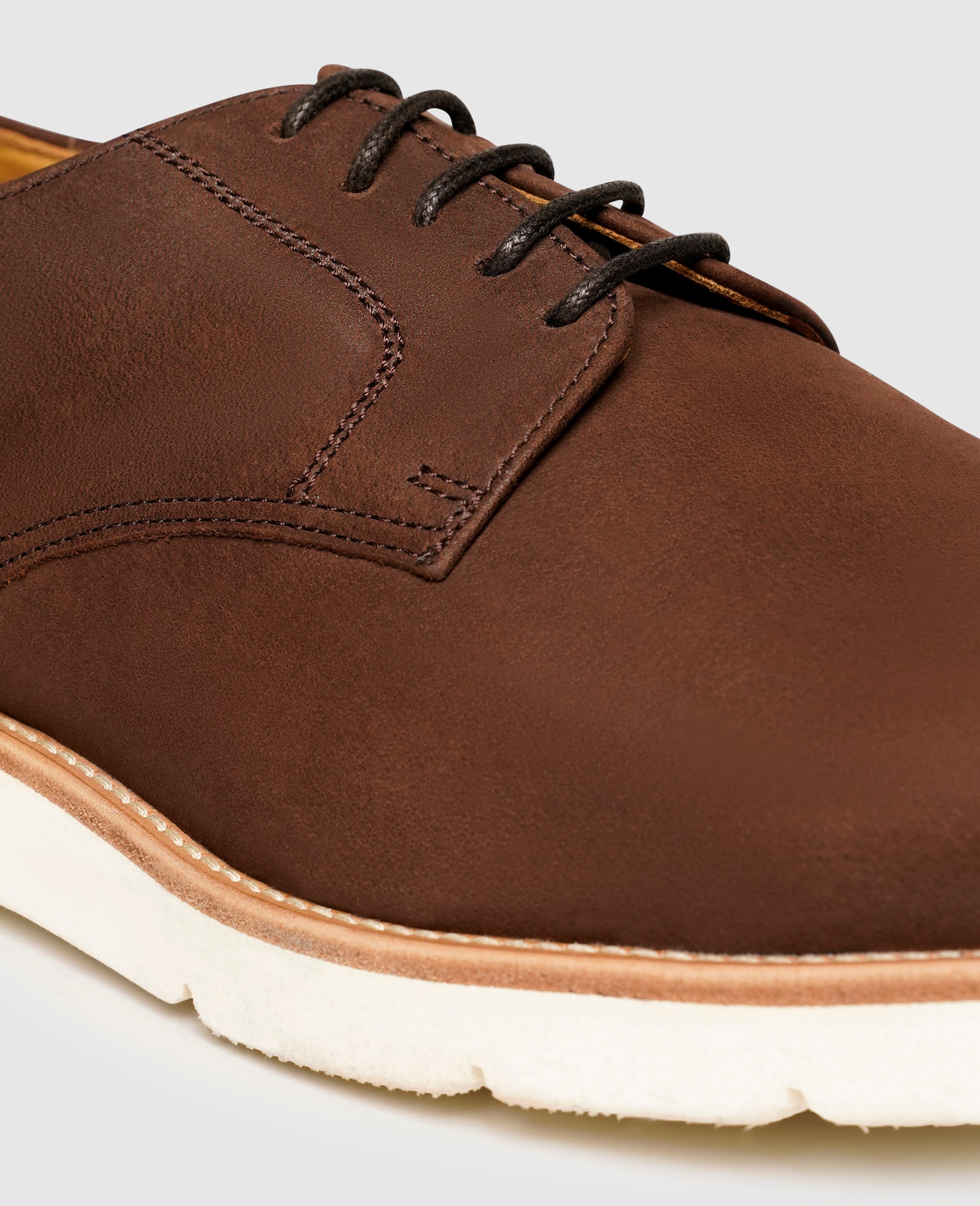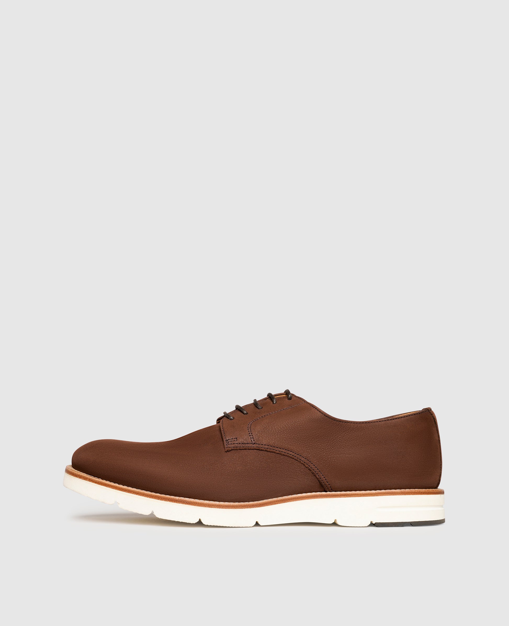 The distinctive feature of this model becomes apparent at first glance: the ultra-light caoutchouc outsole, called an EVA sole. It not only makes this classic plain Derby with its nubuck upper leather a fashionable companion with its sporty flair, but also guarantees its wearer an ultra-light ride.