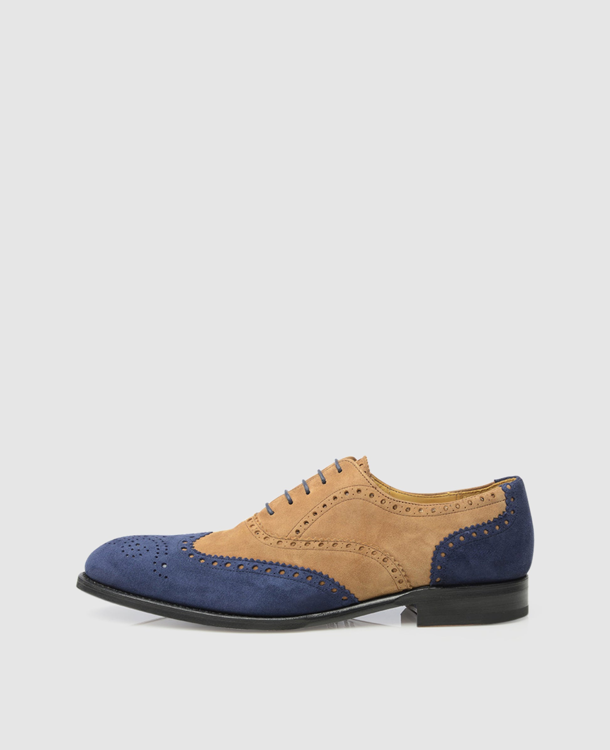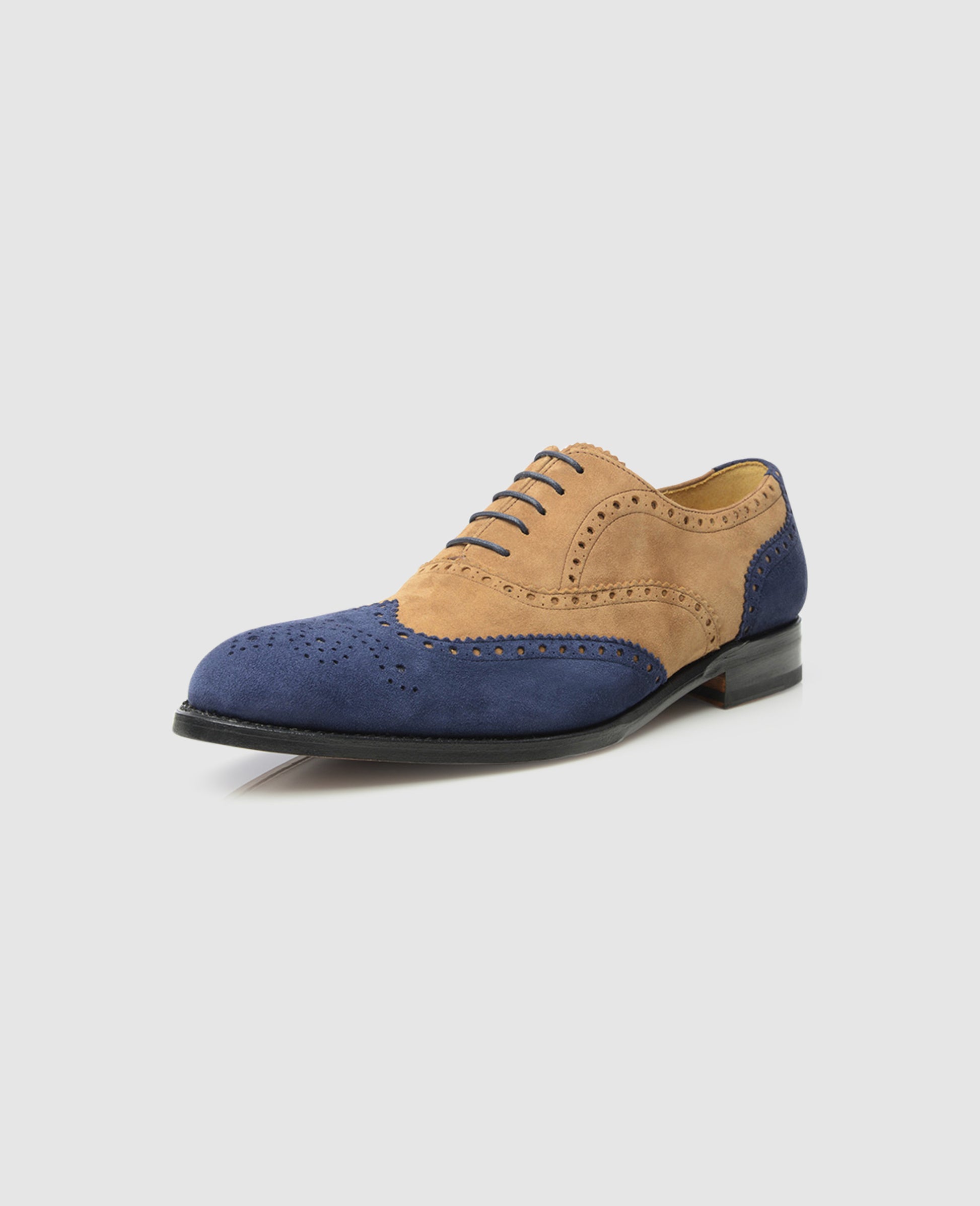 Enjoy the comfort of a Goodyear-welted full-brogue Oxford in blue and brown. In contrast to its formal cousin, our No. 385 is characterised by a fashionable combination of colour and decoration. The soft velours leather increases the contemporary style of this full-leather shoe.