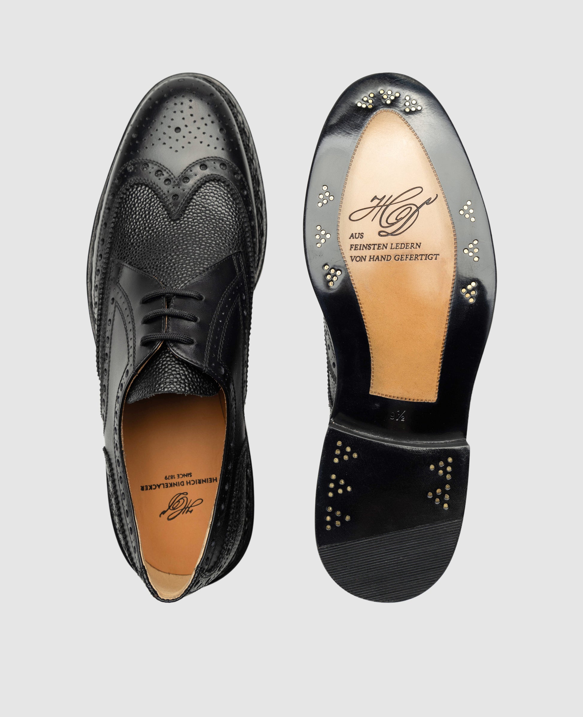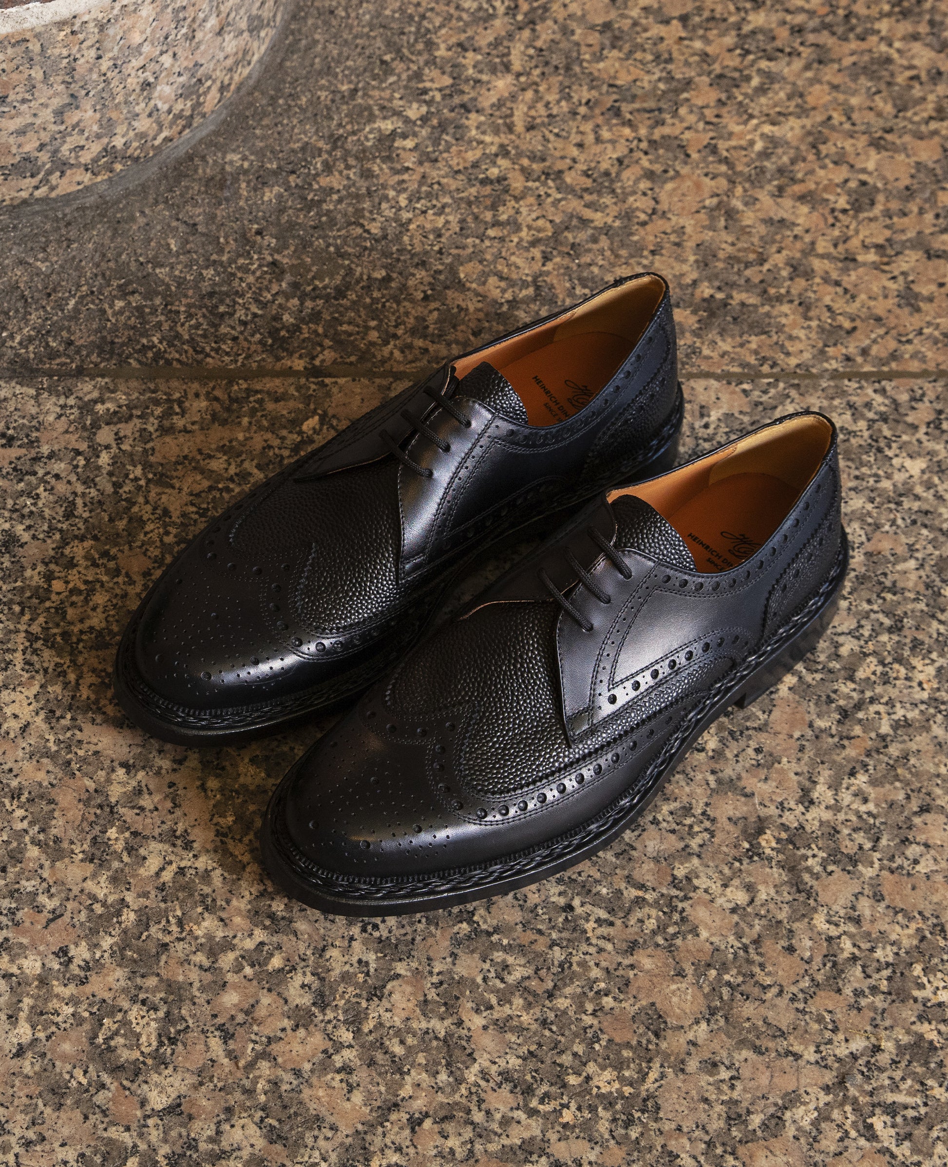 Our welted Buda full brogue derby in scotch grain leather offers elegance for every occasion. Its inner lining is made from vegetable-tanned leather, which is extremely comfortable to wear. The pigtail stitching on the leather sole is a testament to master craftsmanship.