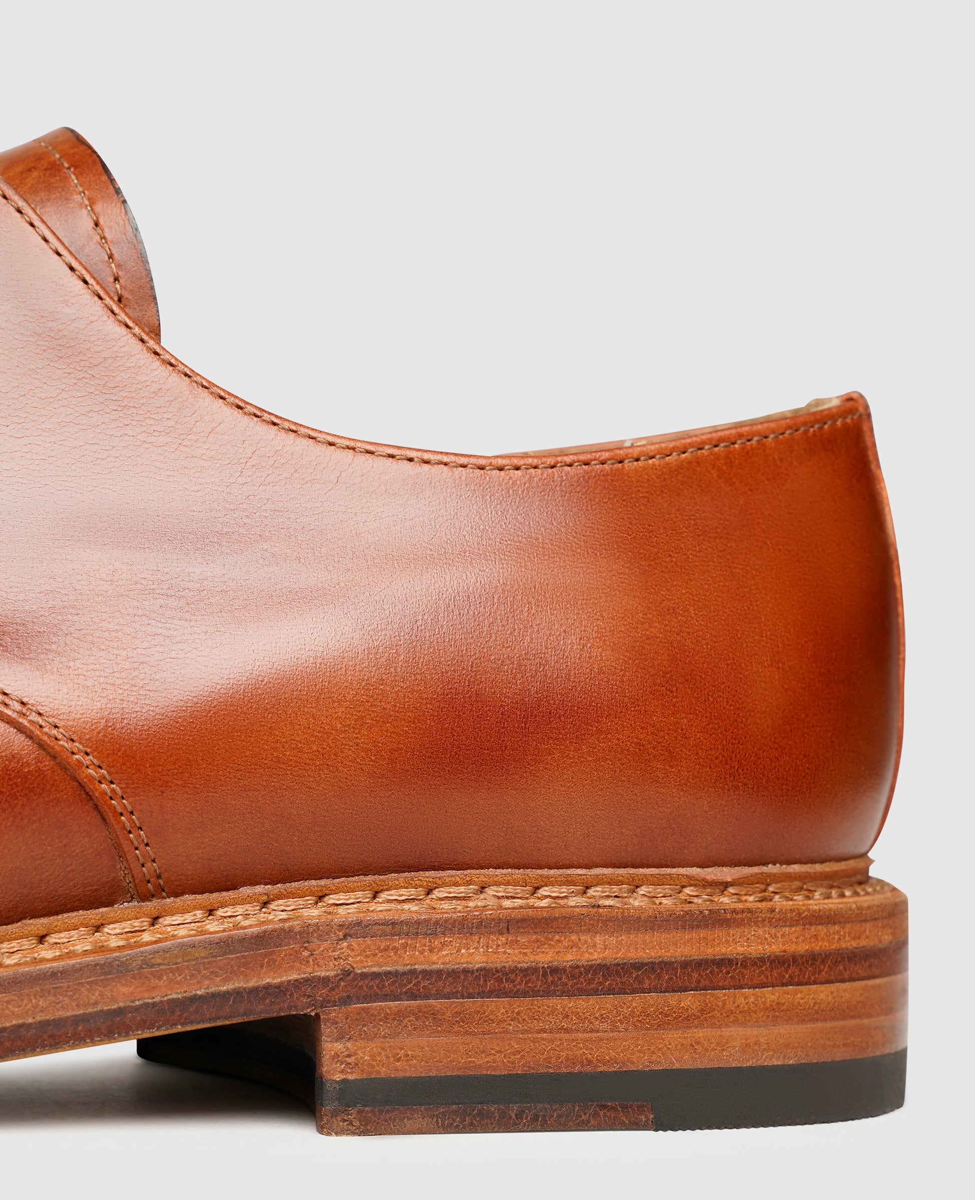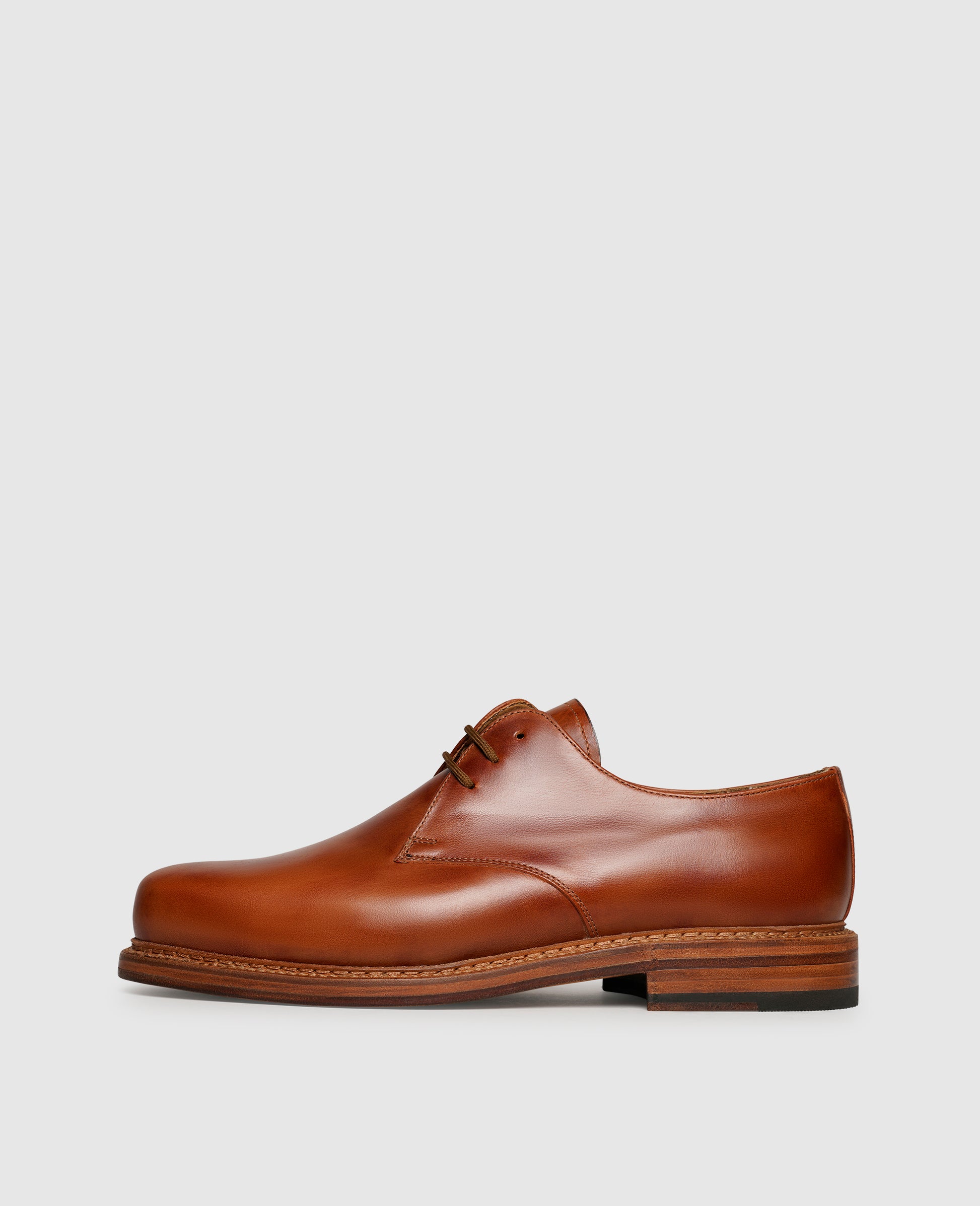 A symbiosis of lightweight comfort and classic elegance is presented by this Goodyear welted plain derby by Heinrich Dinkelacker. Together with a comfortable leather footbed and a vegetable-tanned and breathable leather lining, the shoes, handcrafted in Spain, promise modern ease and comfort. The material of smooth and robust mambo leather in amber, combined with a 3-hole lacing, makes this shoe for men exceptional. A noble leather outsole ensures that your feet won't get tired even after a long day. This lace-up shoe will make your casual looks perfect all year round.