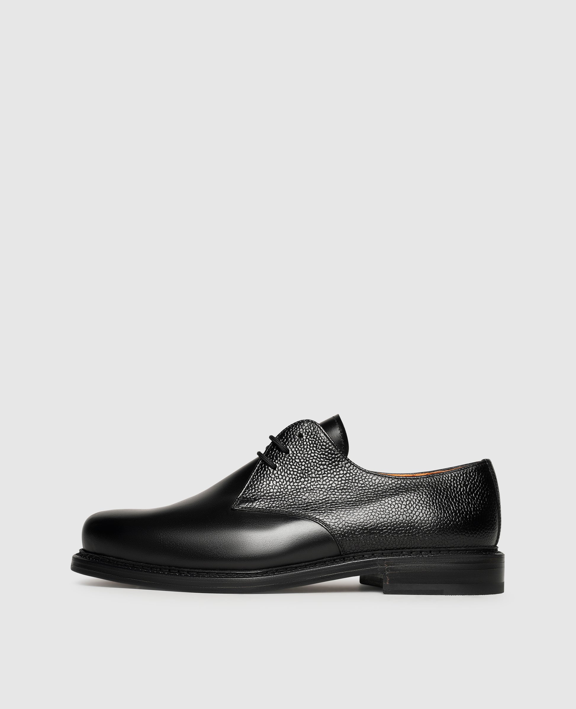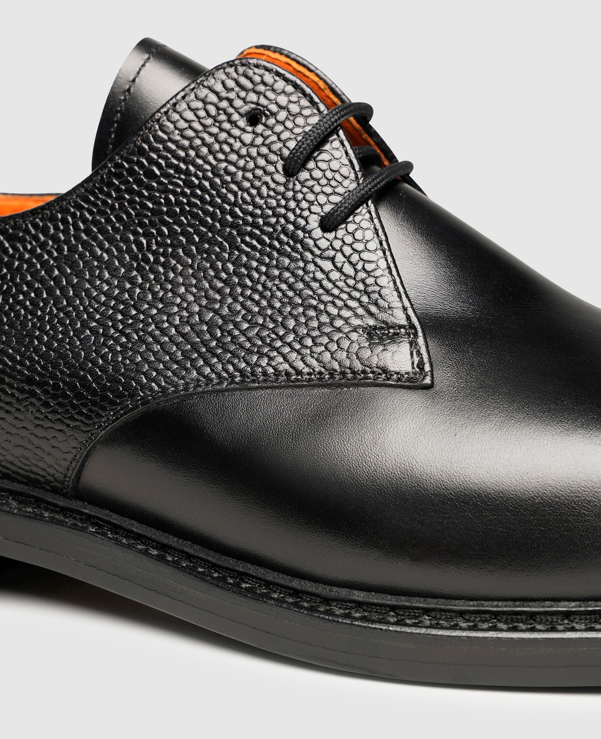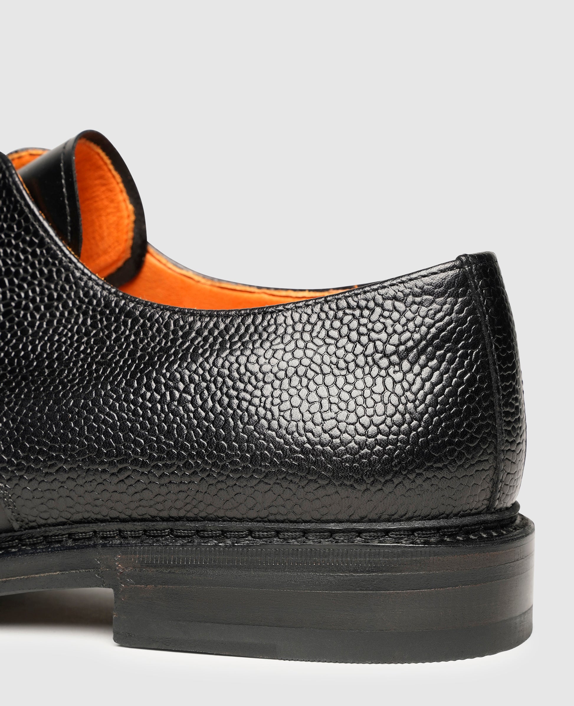 This Goodyear welted plain derby by Heinrich Dinkelacker presents a sophisticated combination of grace and opulent dynamism at first glance. The shoe in black for men impresses with its dynamic mix of aniline dyed box calf and embossed calfskin and is particularly stylish thanks to the 3-hole lacing. The inner lining is breathable and particularly skin-friendly, as it is made of vegetable-tanned leather. Thanks to the natural leather outsole and the comfortable leather footbed, they are versatile and master even long walks with full comfort. If you're looking for a visual highlight, this model, which was handcrafted in Spain, with its decorative scotchgrain is the one for you. With these lace-up shoes, you have found the perfect companion for everyday life and leisure.