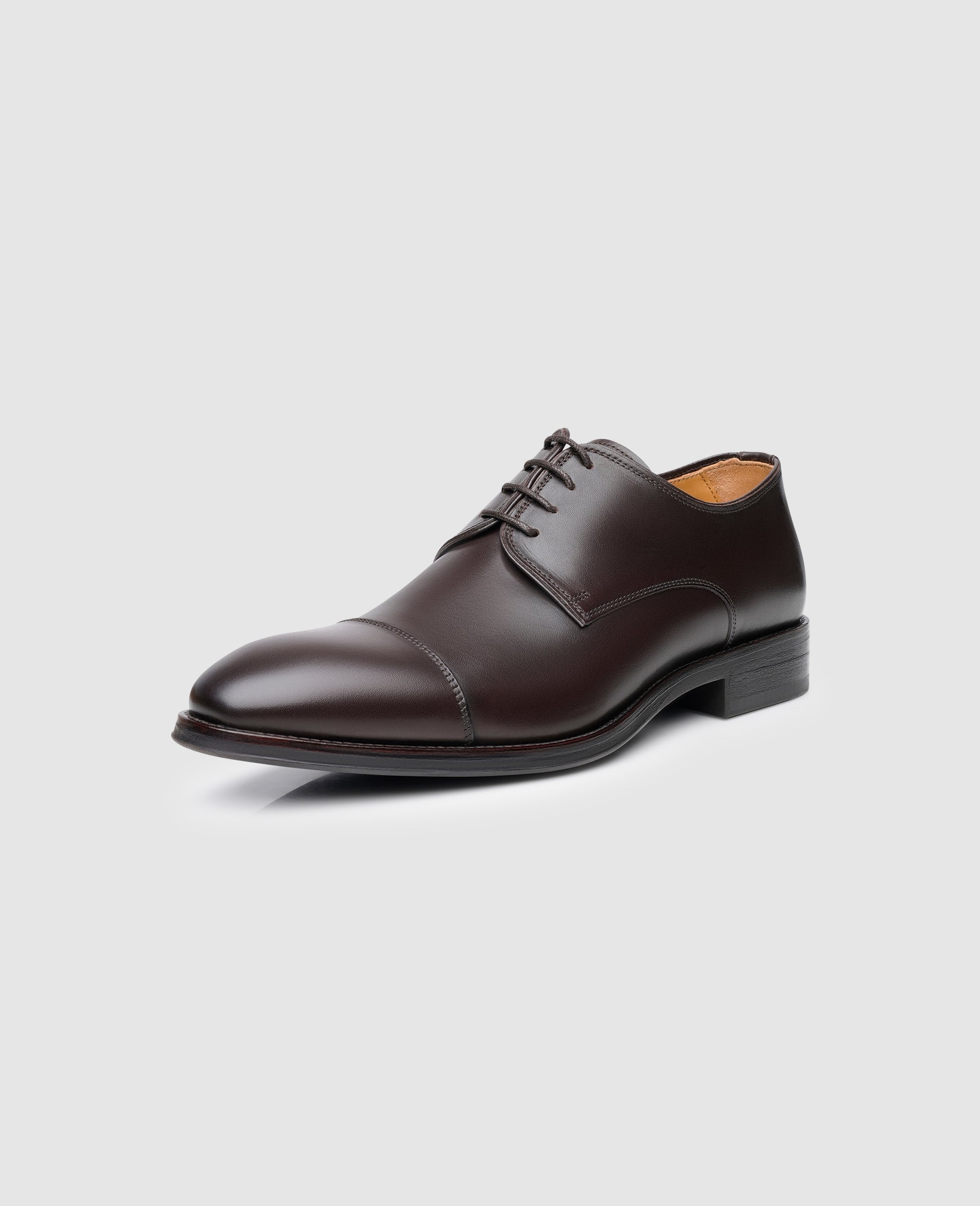 Comfort enthusiasts will get their money's worth with more than just the traditional, open, four-eyelet lacing of this cap-toe Derby, which can be individually widened around the instep: the special construction of our Comfort Line sole promises additional comfort too. An antibacterial midsole prevents unpleasant odors from developing in the shoe, while a shock-absorbing midsole provides additional cushioning for walking. The leather insole and a non-slip rubber outsole round off the innovative design of this model.