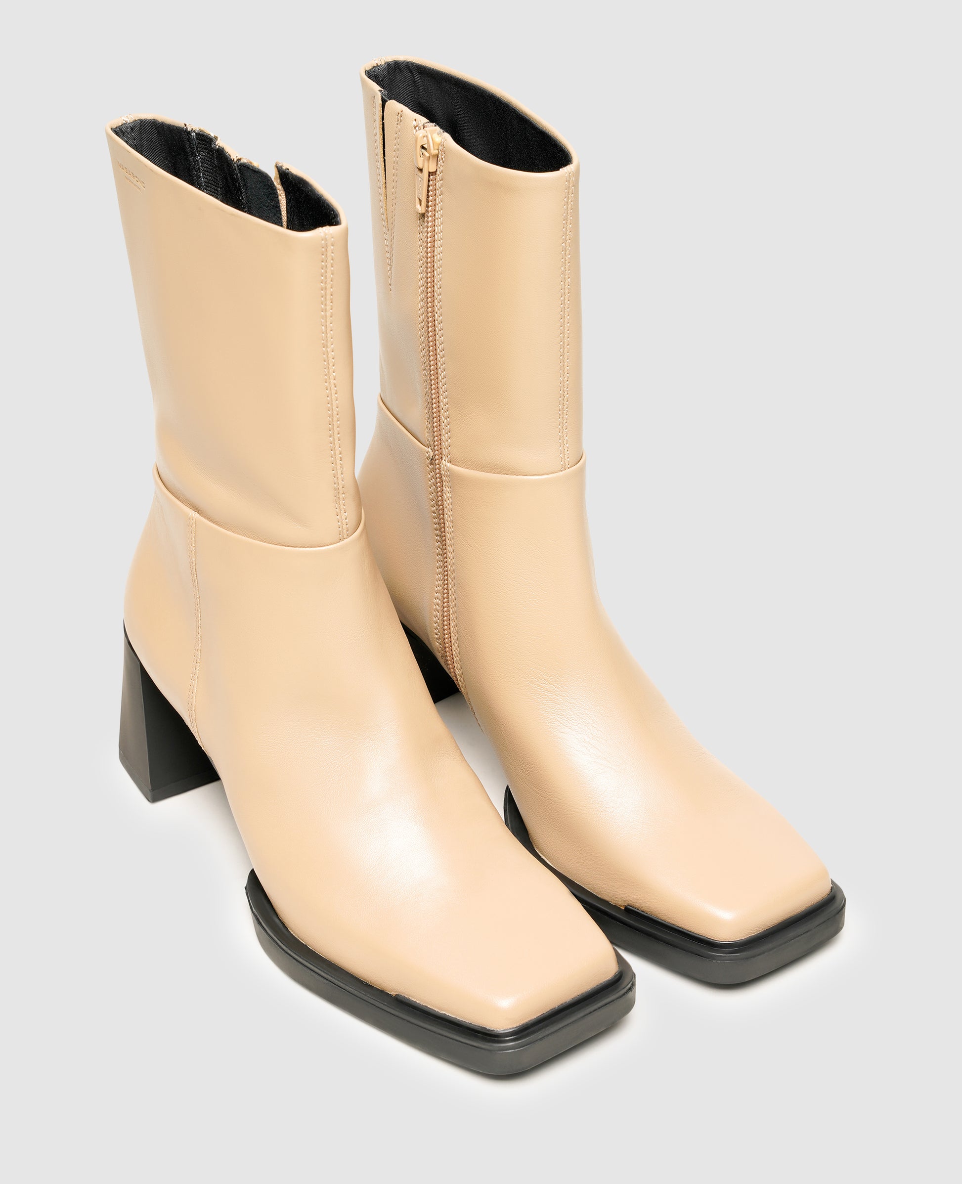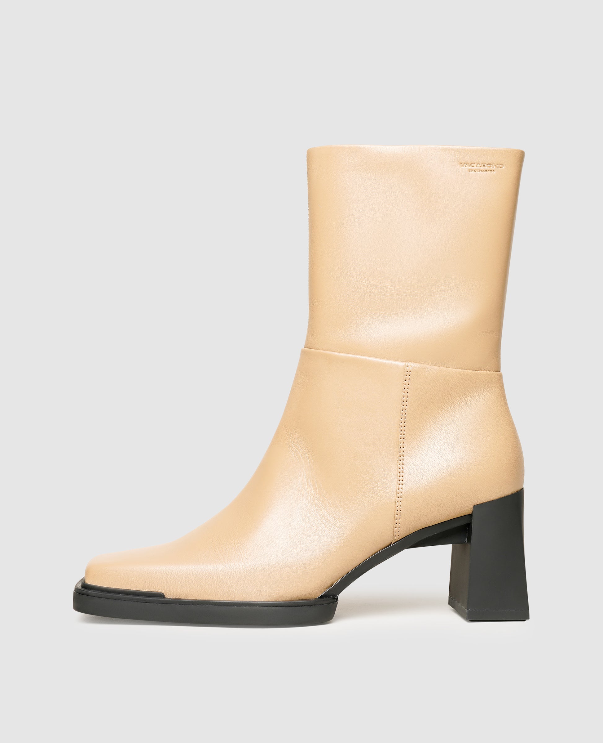 The striking, angular toe of this Vagabond Edwina boot is sure to win over any onlooker at first glance. The square cut is fully on trend while also offering its wearer ample space and comfort. Discreet decorative stitching adorns the mid-height shaft of these boots, which also feature inside zip-fastenings. This modern yet simple ensemble is complemented by a 7.4-centimeter high block heel.