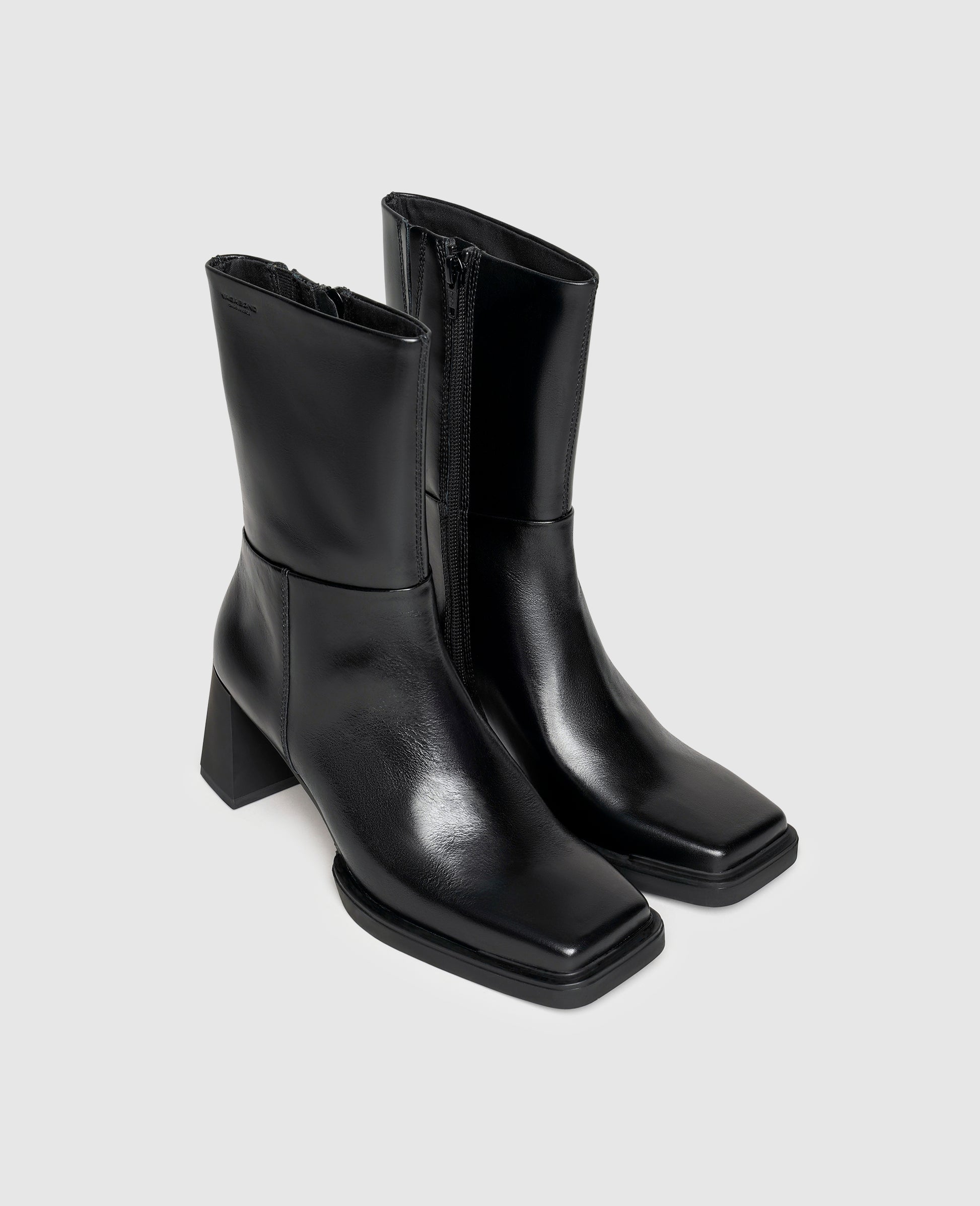 The striking, angular toe of this Vagabond Edwina boot is sure to win over any onlooker at first glance. The square cut is fully on trend while also offering its wearer ample space and comfort. Discreet decorative stitching adorns the mid-height shaft of these boots, which also feature inside zip-fastenings. This modern yet simple ensemble is complemented by a 7.4-centimeter high block heel.