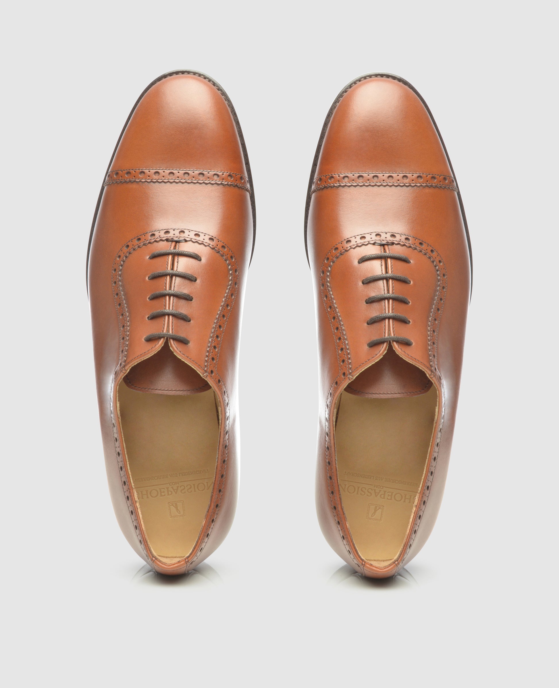This kind of shoe has long been worn in American and Italian offices. Brown leather shoes are gaining increasing acceptance in the German business world as well. This Goodyear-welted quarter-brogue Oxford in red-brown walks the line between classic elegance and modern chic.