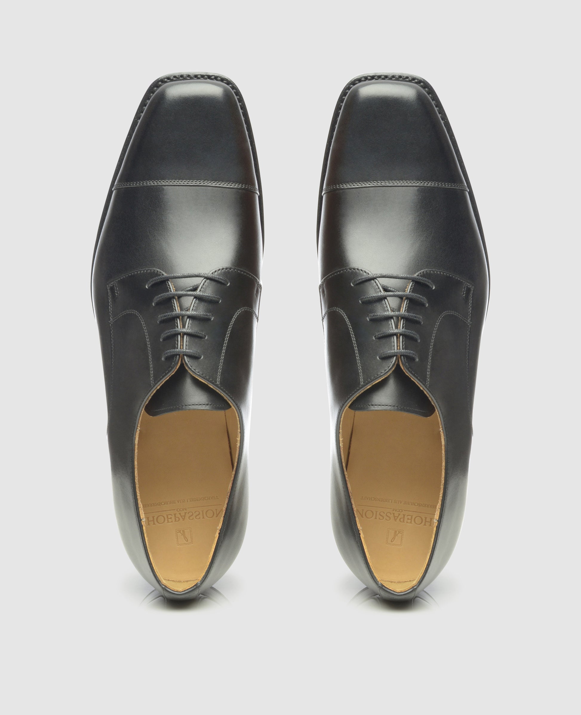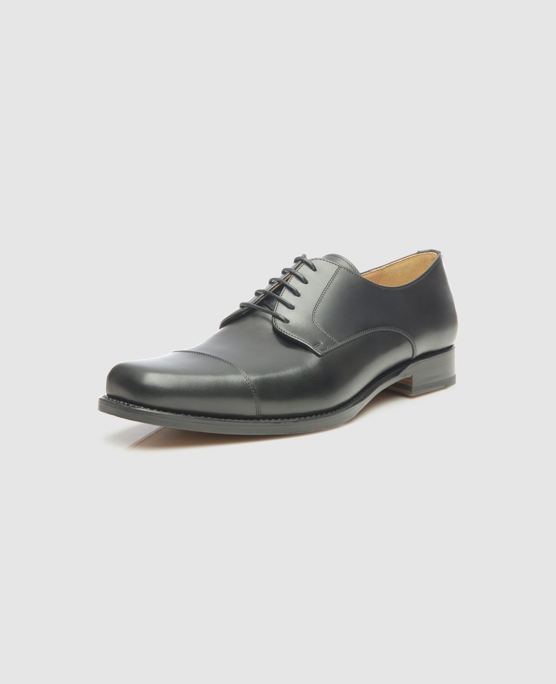 No. 522 is a Goodyear-welted cap-toe Derby in black. In keeping with tradition, this classic men’s shoe features open five-eyelet lacing. Its lively toe cap seam is a feature more commonly found on the Oxford.
