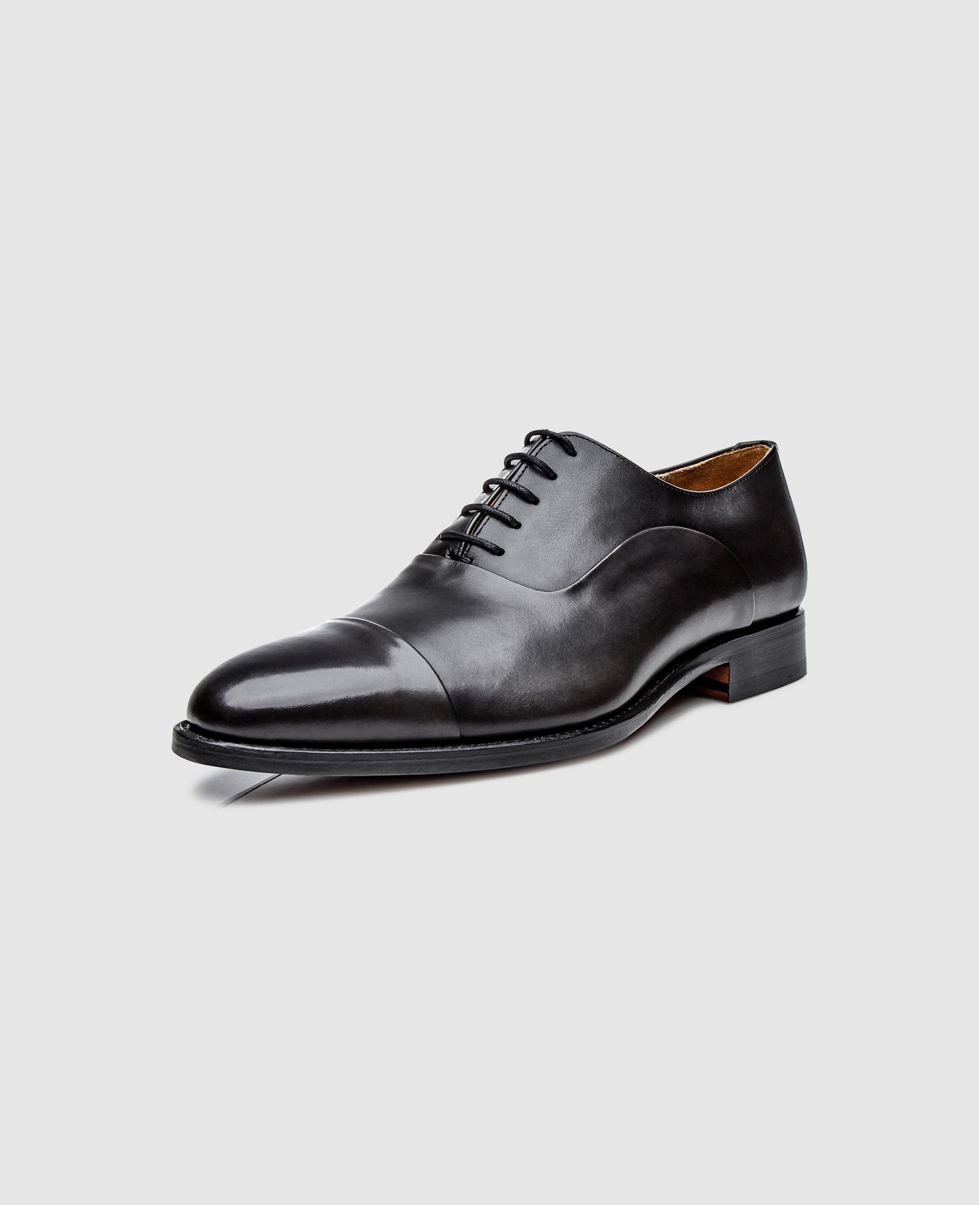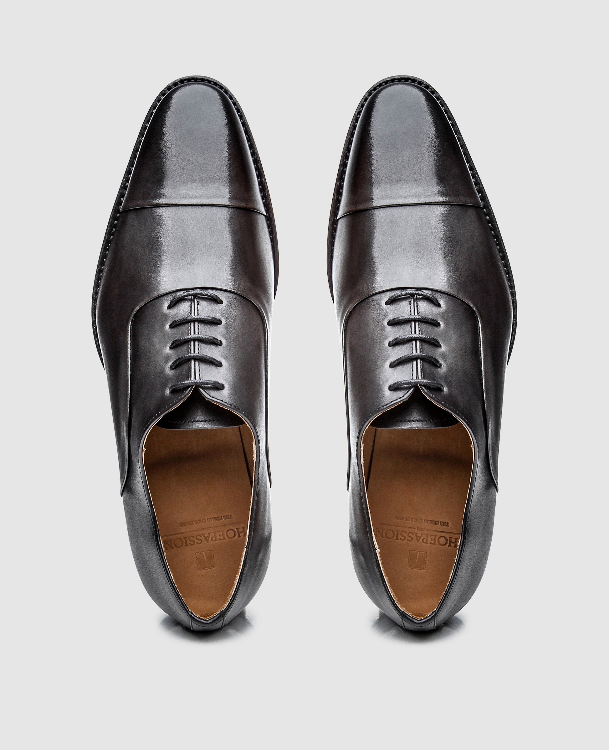 No. 5226 is a modern take on a Goodyear-welted classic. With its closed five-eyelet lacing, the traditional shaft cut defines the form of these Oxfords from the Patina Line, and is complemented by the distinctive toe cap seam. Fully dyed grey soft calf leather exudes a modern twist without seeming too extravagant.