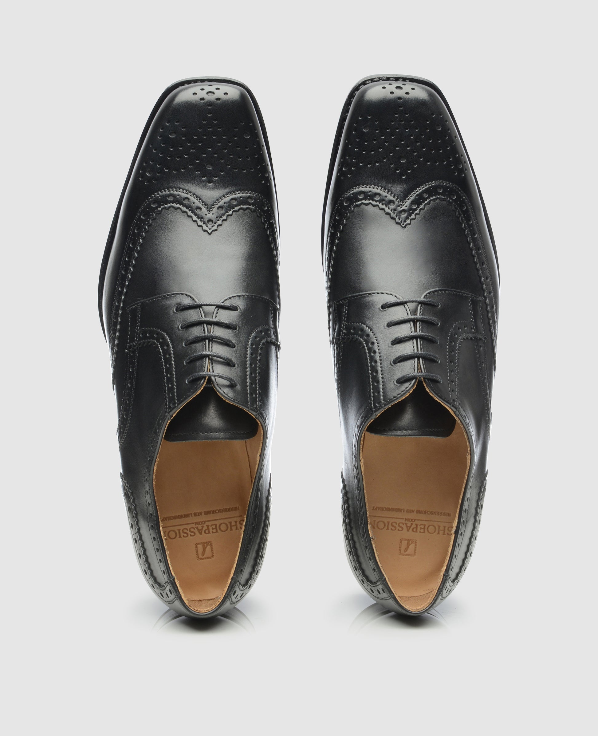 At heart, our No. 527 is a Goodyear-welted full-brogue Derby in black. This traditional men’s shoe is a versatile business shoe and a great companion for both informal settings and the office, too. Originally, the decorative punched leather upper was developed for functional rather than aesthetic reasons.
