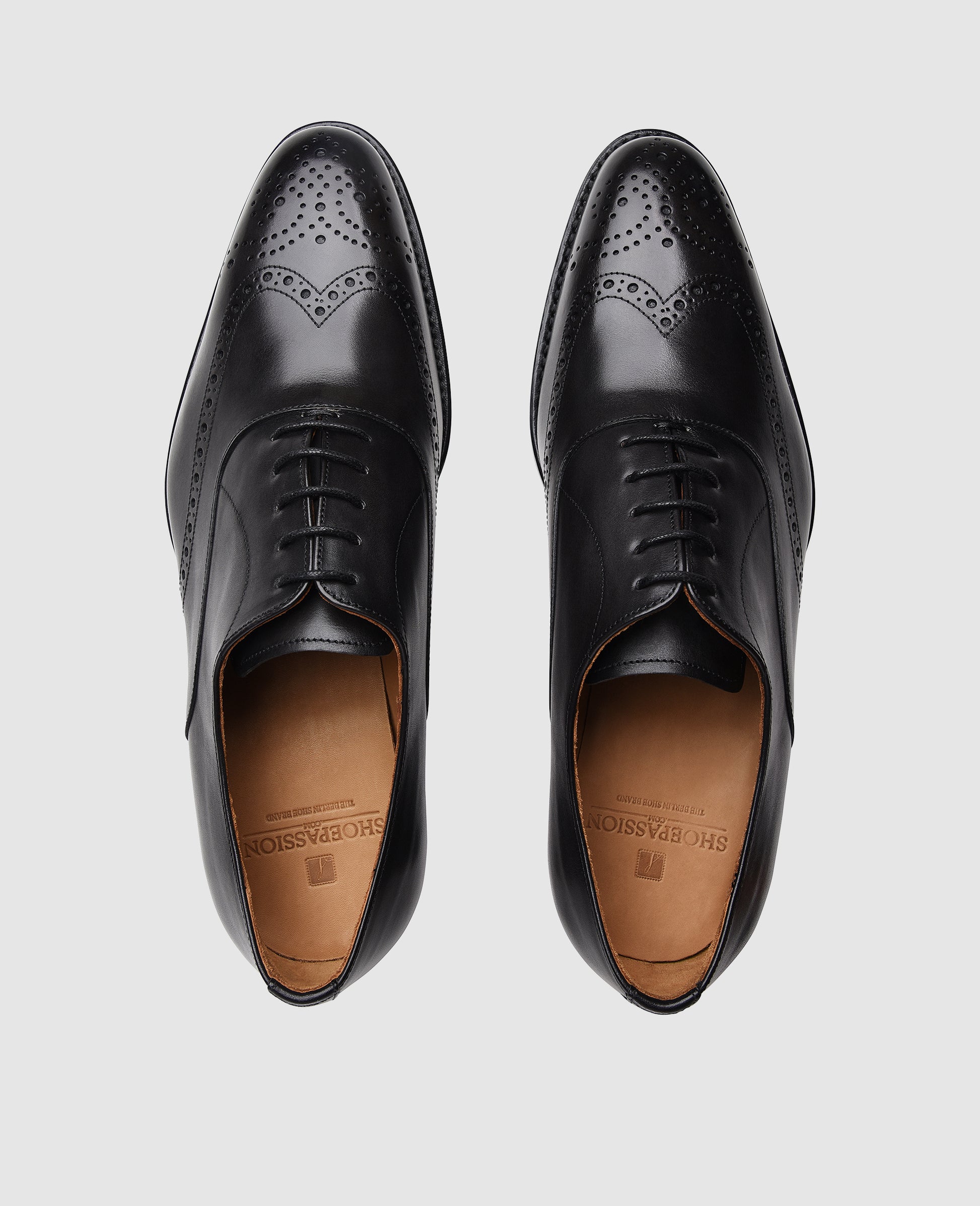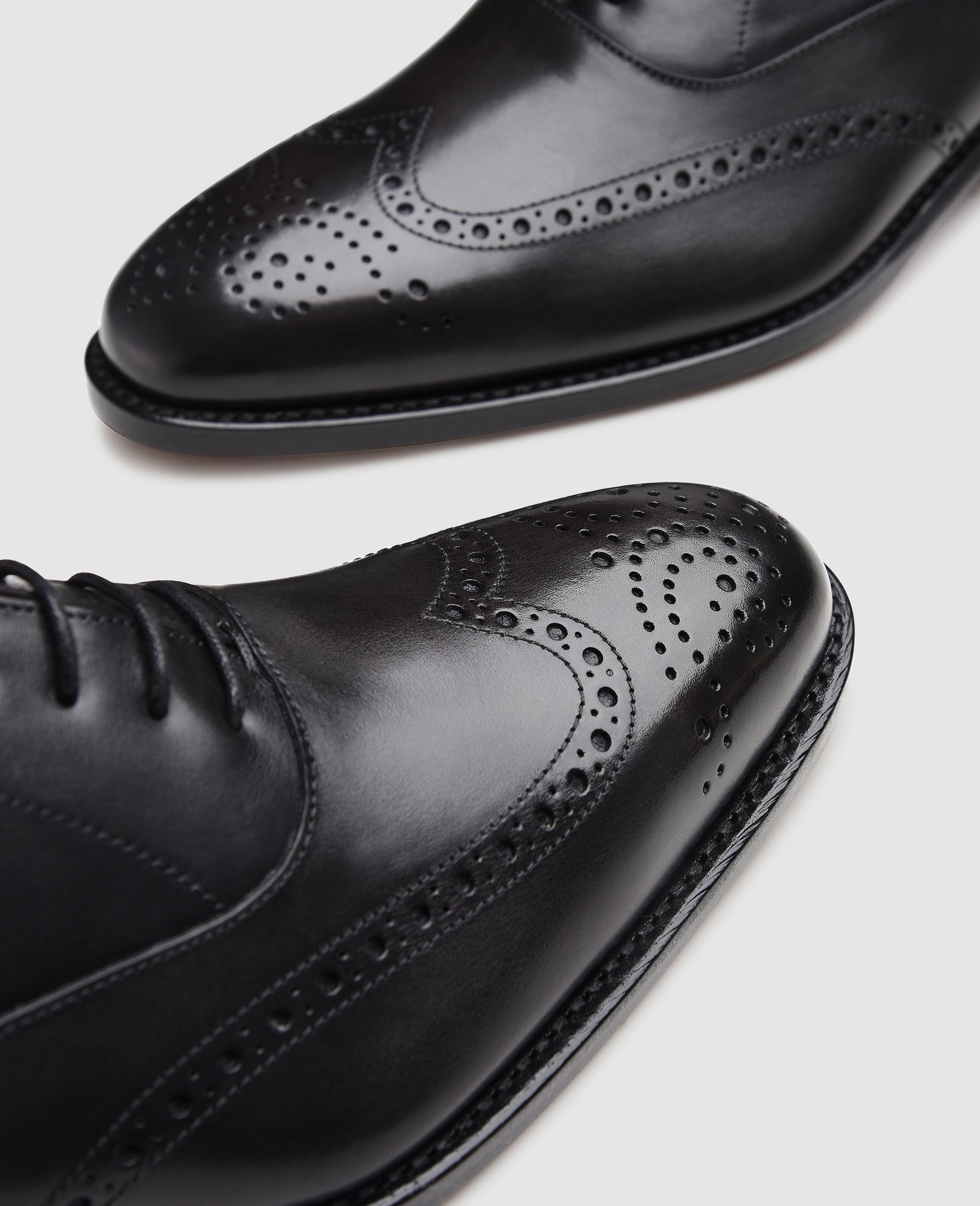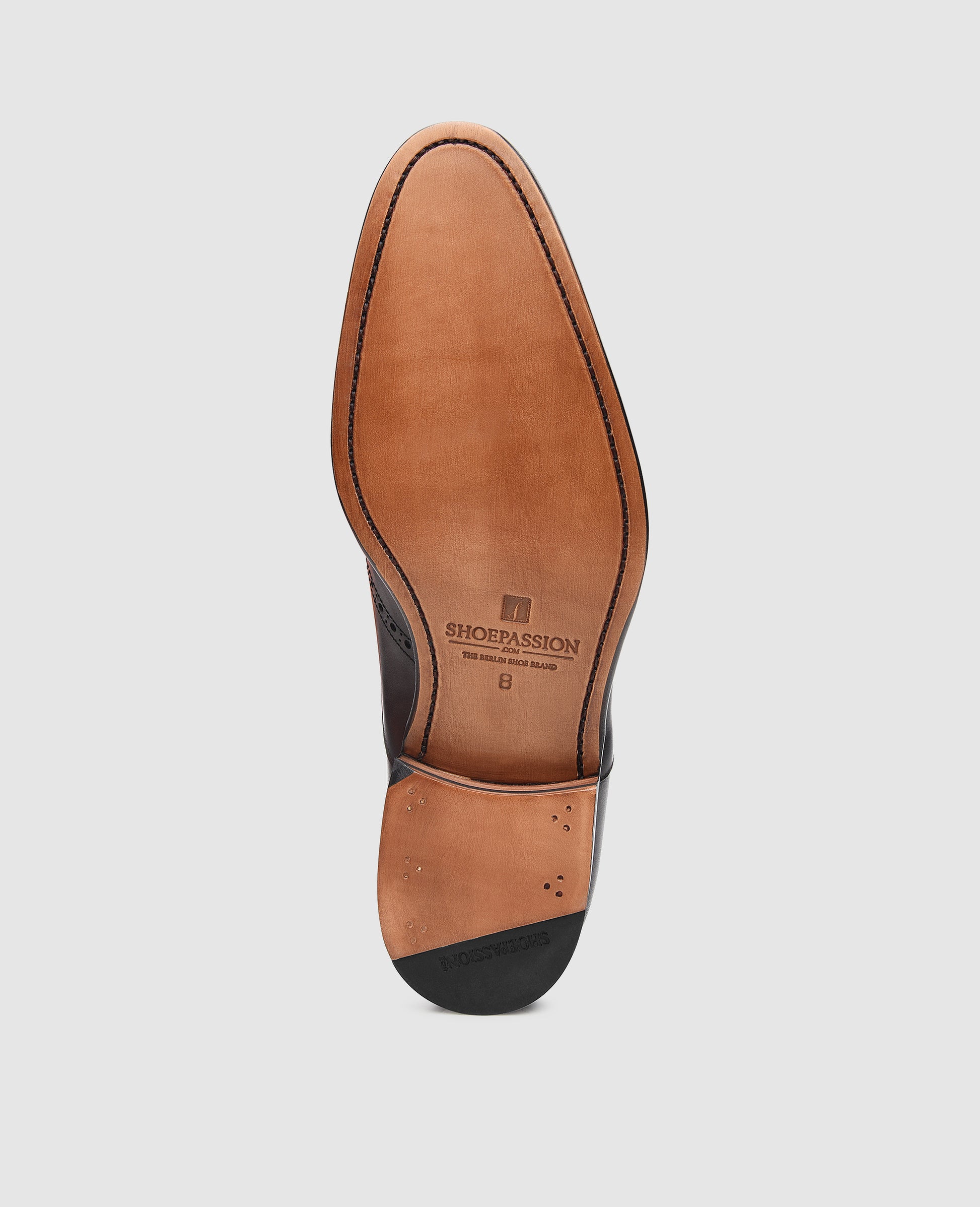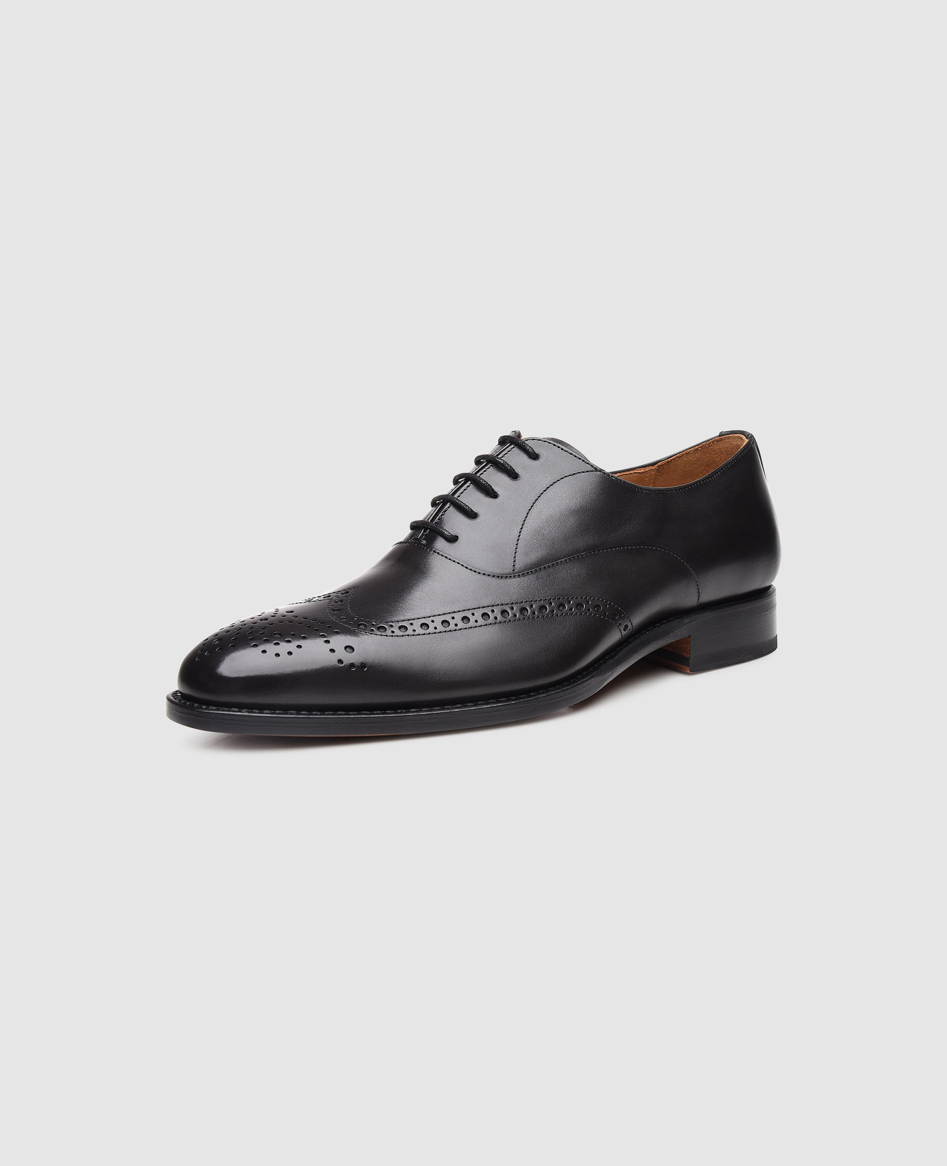 Men with a penchant for that certain something will find the right balance between classic grace and modern refinement in this men's shoe model. The playful lines of this brogue Oxford offer the traditional closed-eyelet lacing, a decorated wing cap and an elegant rosette. The novelty: the heel cap and other edges do not have any additional decoration. Instead, the focus lies on the enchanting hand finish of the fine calfskin. These subtle light-dark gradations guarantee an additional dynamism and transform this Goodyear-welted full leather shoe into the right match for an unforgettable appearance.