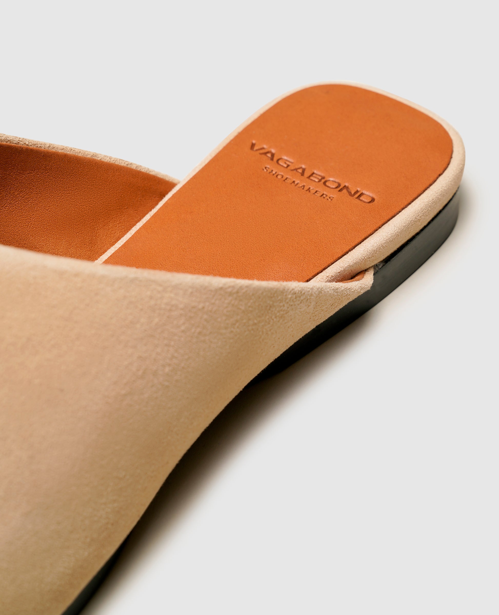 A blend of casual grace and feminine elegance are presented in these women's Wioletta velour leather mules from Vagabond. The pointed toe combined with the open heel is reminiscent of Moroccan babouches, elevating the model to a stand-out piece with its eye-catching design. The flat outsole running the length of the shoe and the padded footbed guarantee the wearer the highest levels of comfort on summery days.