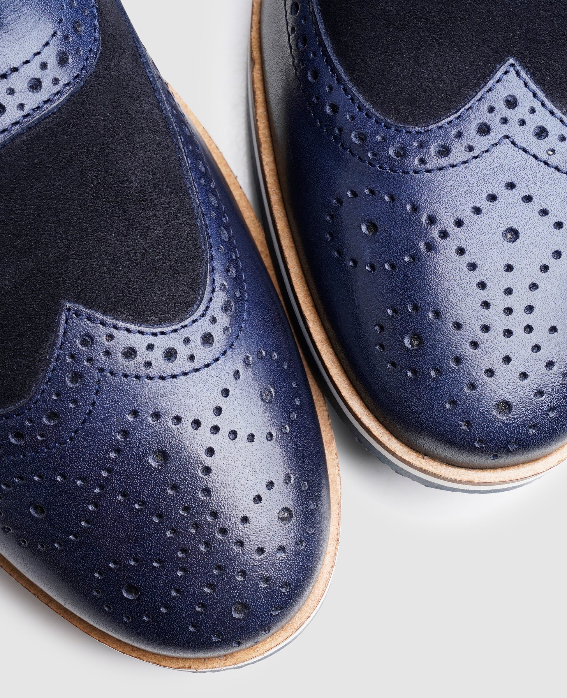 This full-brogue Oxford in our Modern Basics collection offers an exciting opulence. On the upper of this comfortable men's shoe, glossy smooth leather sections alternate with soft velours, accompanied by a rich array of perforations. The flexible rubber outsole provides for a comfortable, athletic wearing experience.
