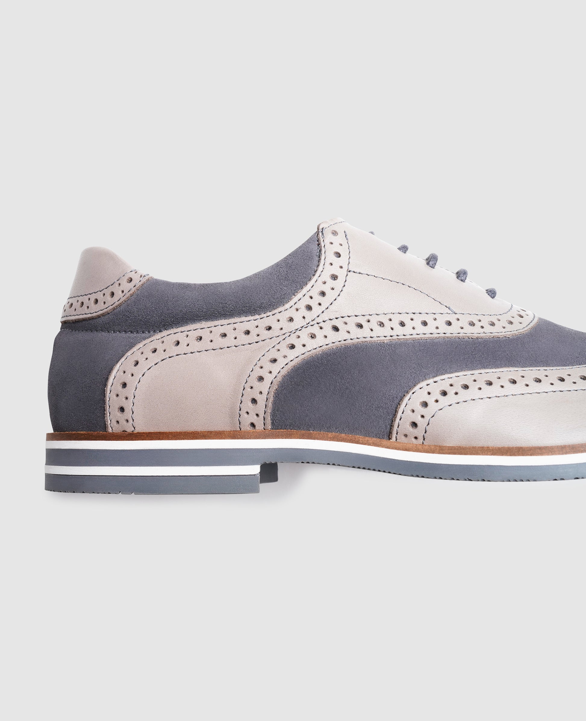 This full-brogue Oxford in our Modern Basics collection offers an exciting opulence. On the upper of this comfortable men's shoe, glossy smooth leather sections alternate with soft velours, accompanied by a rich array of perforations. The flexible rubber outsole provides for a comfortable, athletic wearing experience.