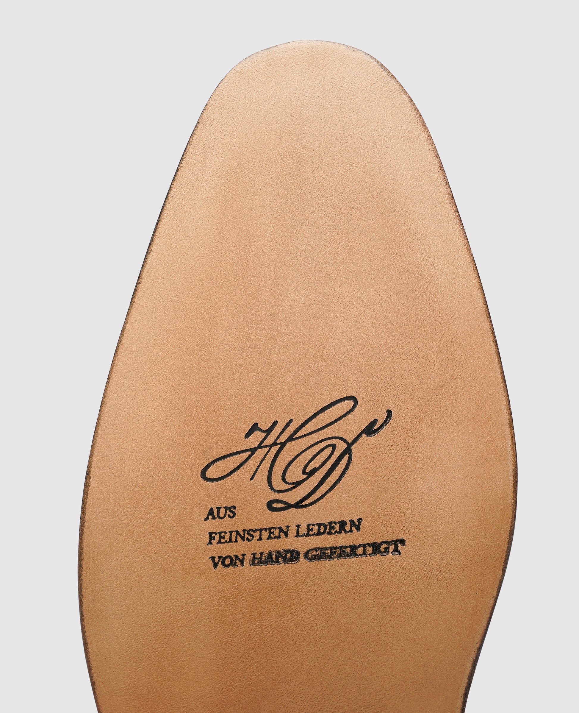 This Goodyear-welted, handcrafted classic with its comfortable Derby lacing exudes a summery flair. The exquisite Toscana Calf of the upper, with its elaborate brushed hand finish, offers a dynamic grace while the eye-catching perforation detailing on the vamp, which passes through both the upper and inner leathers, adds a certain nonchalance to the model. In addition to its visual appeal, the perforated leather upper also ensures air is able to circulate comfortably within the shoe, even in summer temperatures. The durable Rendenbach leather double sole and hard-wearing triple nailing complete the comfort of this exclusive full leather shoe for men to perfection.