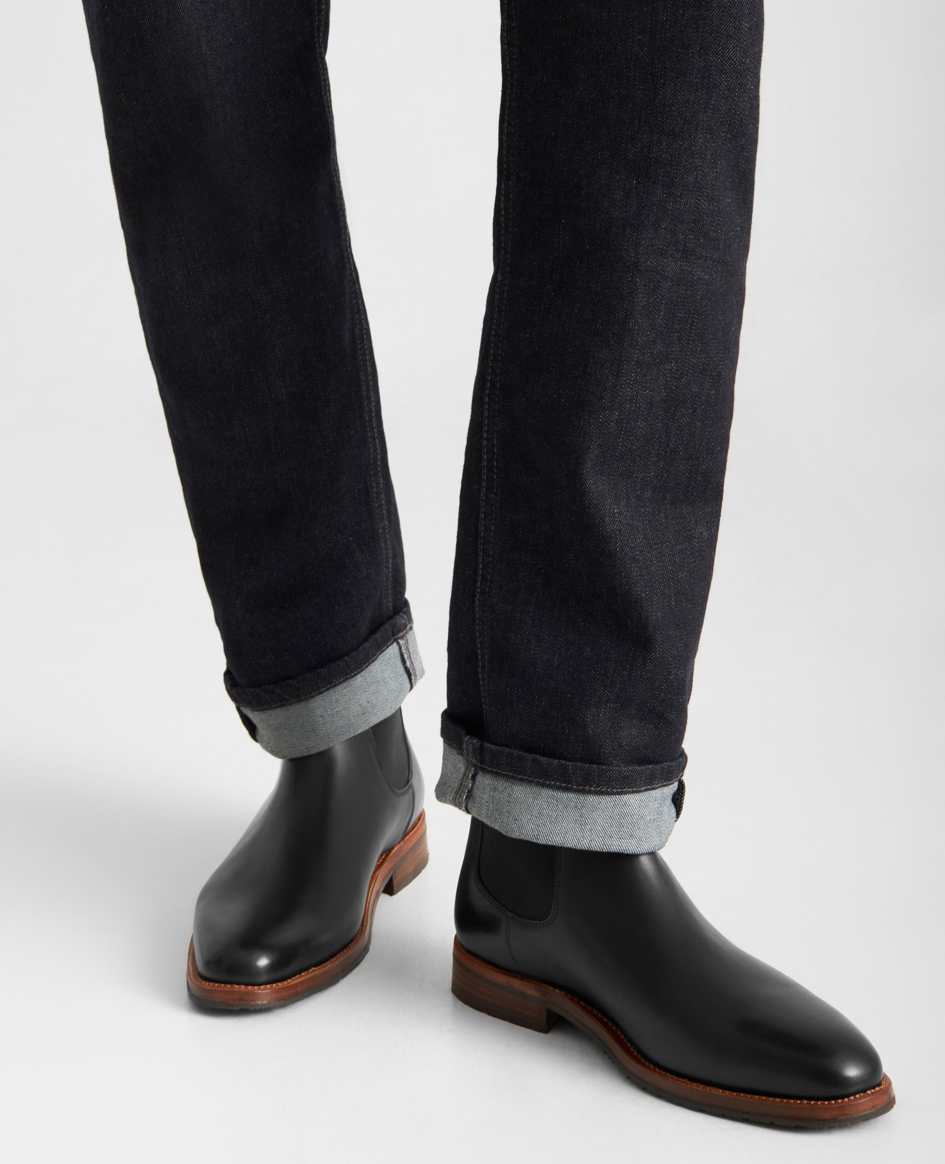 The Luzern Chelsea boot in black is handmade from luxurious box calf leather with a vegetable-tanned inner leather, which ensures a high level of comfort. The goodyear-welted construction and rubber sole provide the model with stability and durability. Made in Spain.