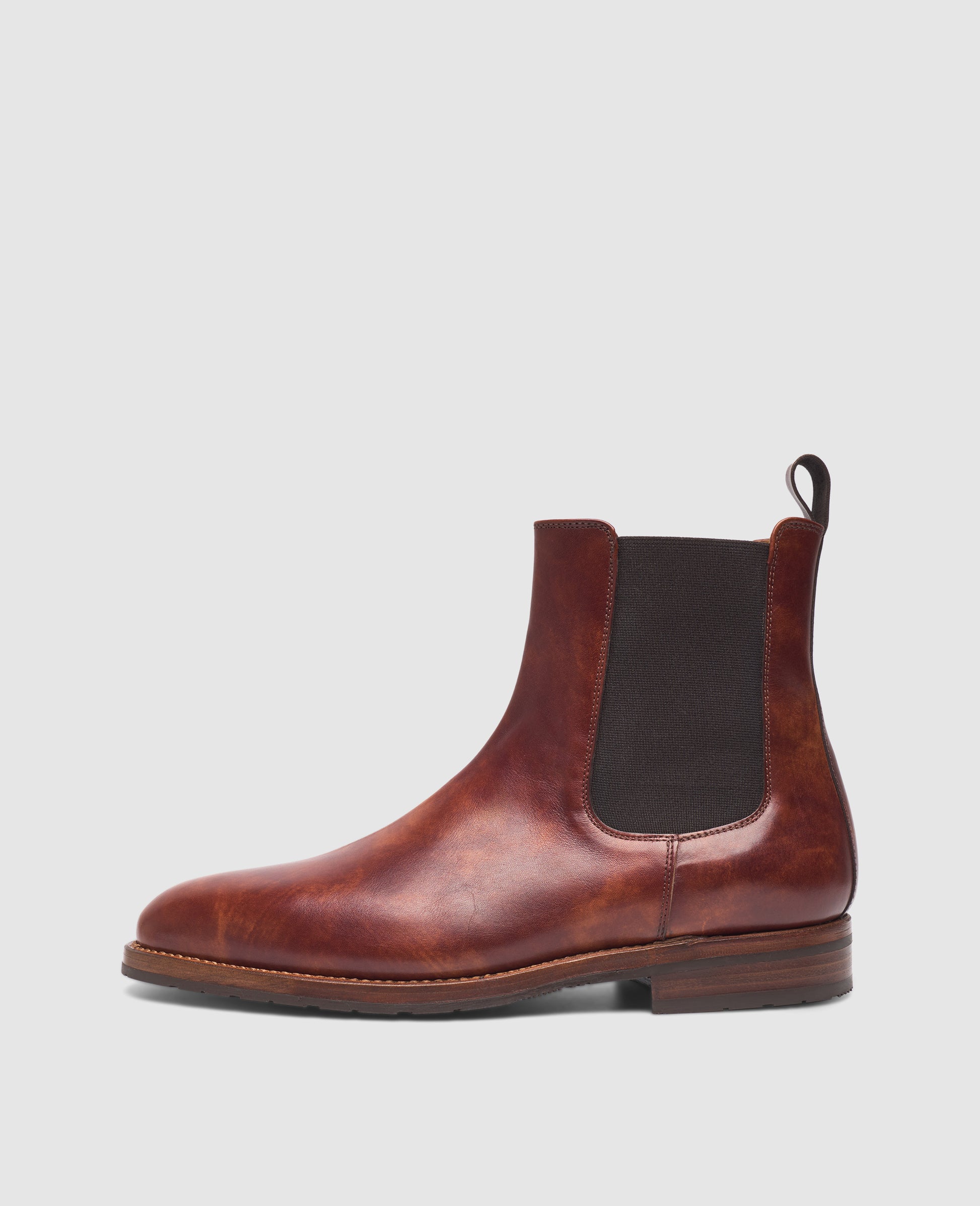 The Luzern Chelsea boot in whiskey is handmade from luxurious toscana calf leather with a vegetable-tanned inner leather, which ensures a high level of comfort. The goodyear-welted construction and rubber sole give the model stability and durability. Made in Spain.