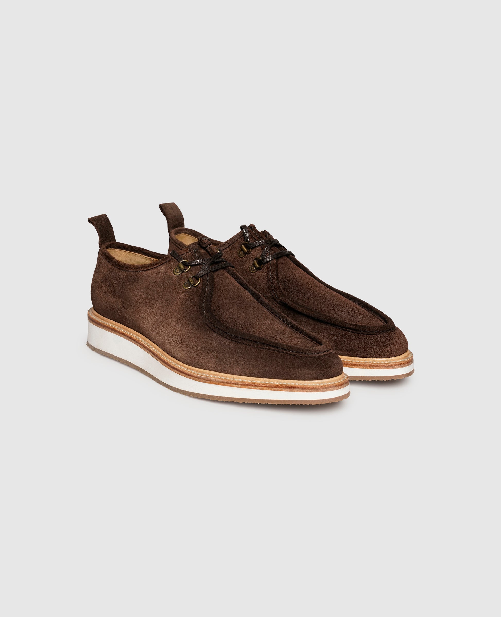 These Goodyear welted plain norwegians by Heinrich Dinkelacker combine elegance and style in a skillful way. This dark brown shoe model for men impresses with its 2-hole lacing and the grainy and velvety calfskin velours. The inner lining made of vegetable-tanned leather is characterized by skin-friendliness and breathability. You get the best experience with this comfortable footbed made of leather, because the rubber outsole is highly flexible in the forefoot area, particularly wear-resistant and provides ideal support. With this lace-up shoe, handcrafted in Spain, you have found the perfect companion for everyday and leisure wear.