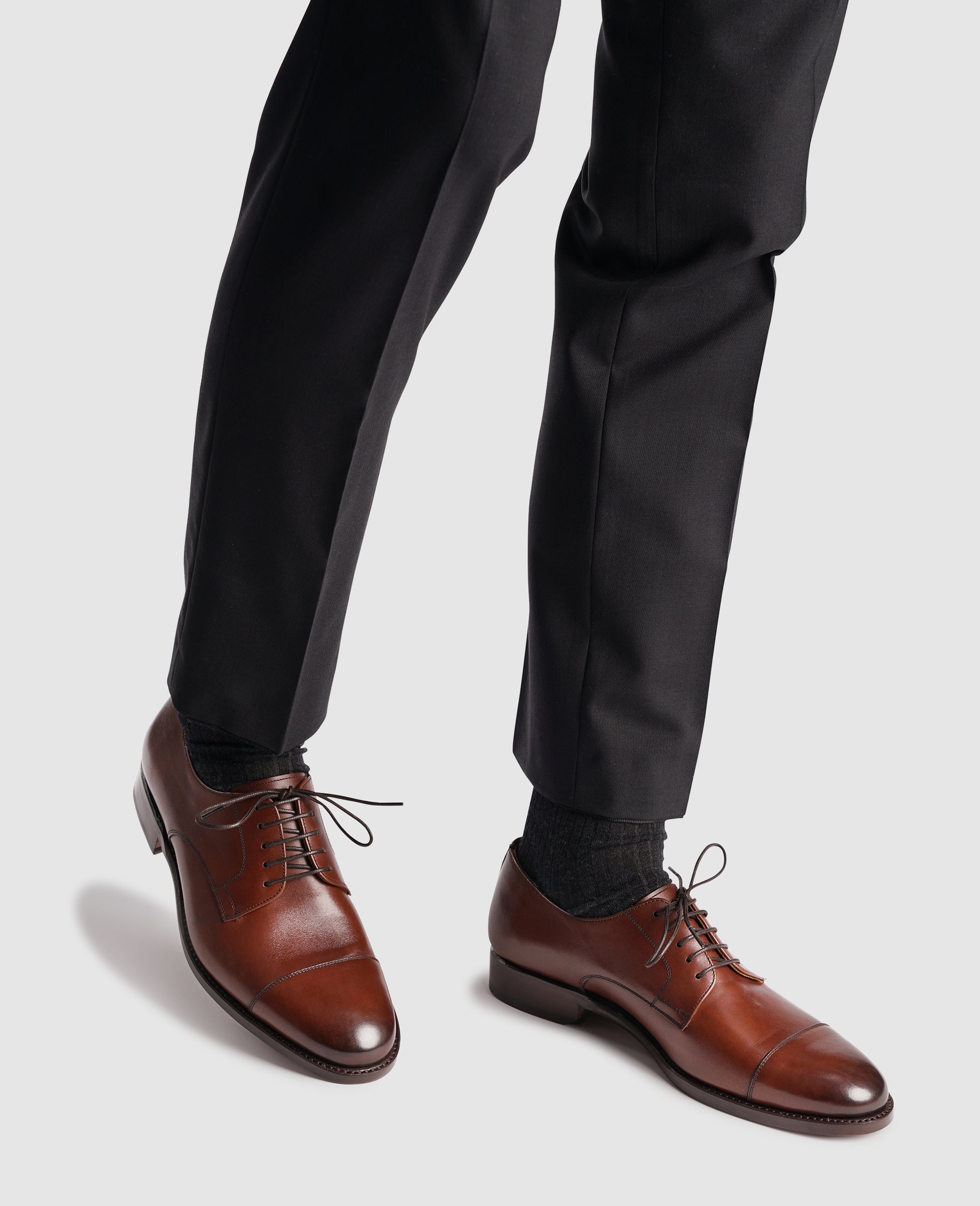 Our No. 541 is a rare men’s shoe – a cap-toe Derby in dark brown. This formal shoe is characterised by an open five-hole lacing and a seam on the toecap, lined with two narrow rows of stitching. The lacing allows an easier entry and exit, while the toecap radiates a dynamic character.