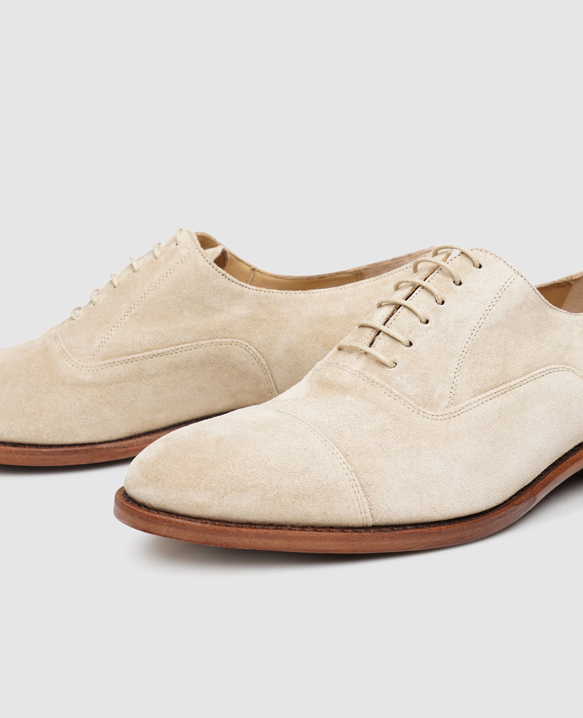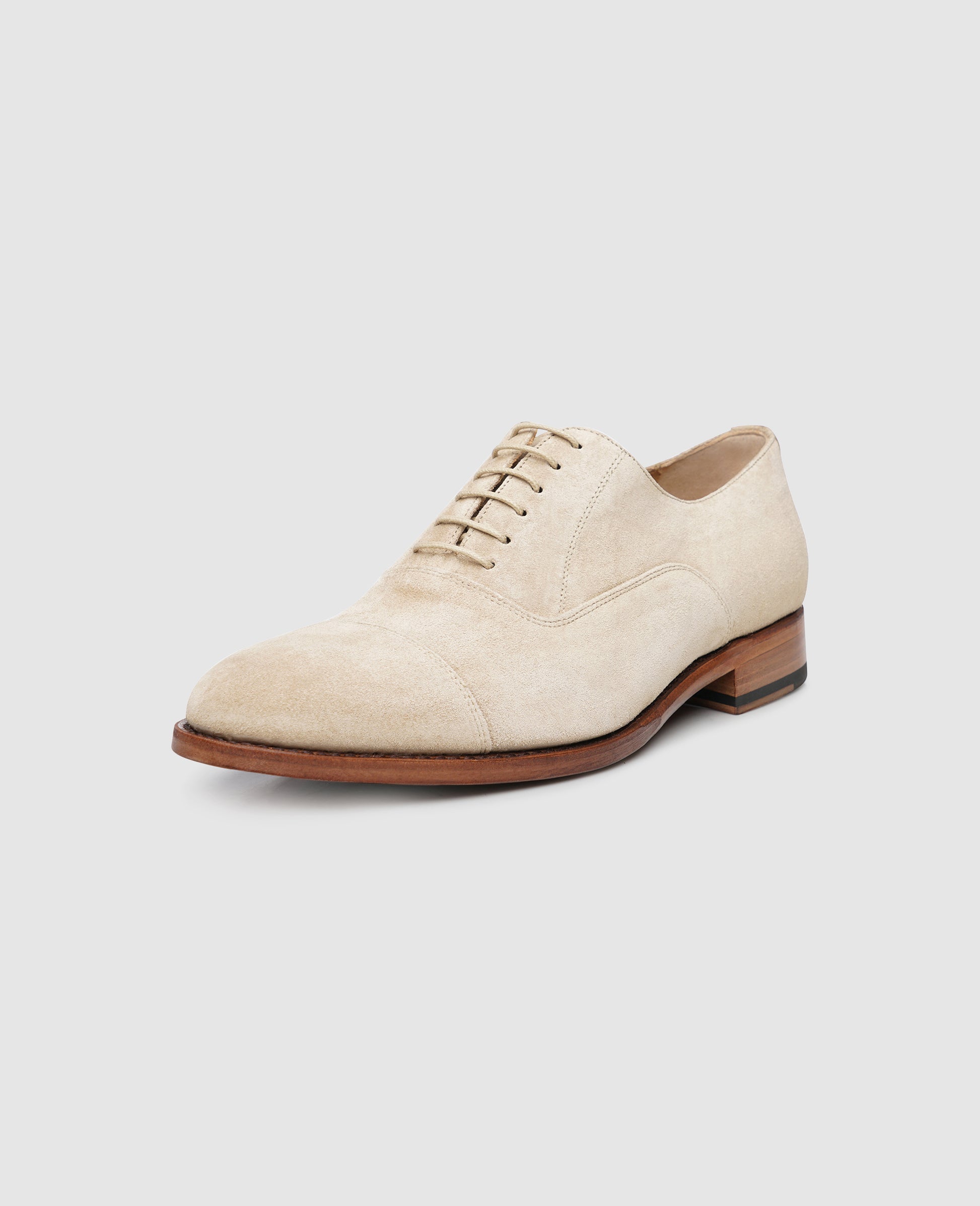 A model that has devoted itself almost completely to the more classic dress code shows its casual side here. The front cap seam that gives this design its name is the only decoration that adorns the simple shaft. In addition to the traditional Goodyear-welted design, this cap-toe Oxford radiates a spring-like feeling. This handcrafted men's shoe is typically suited to dry days and its velour upper makes it very easy to maintain.