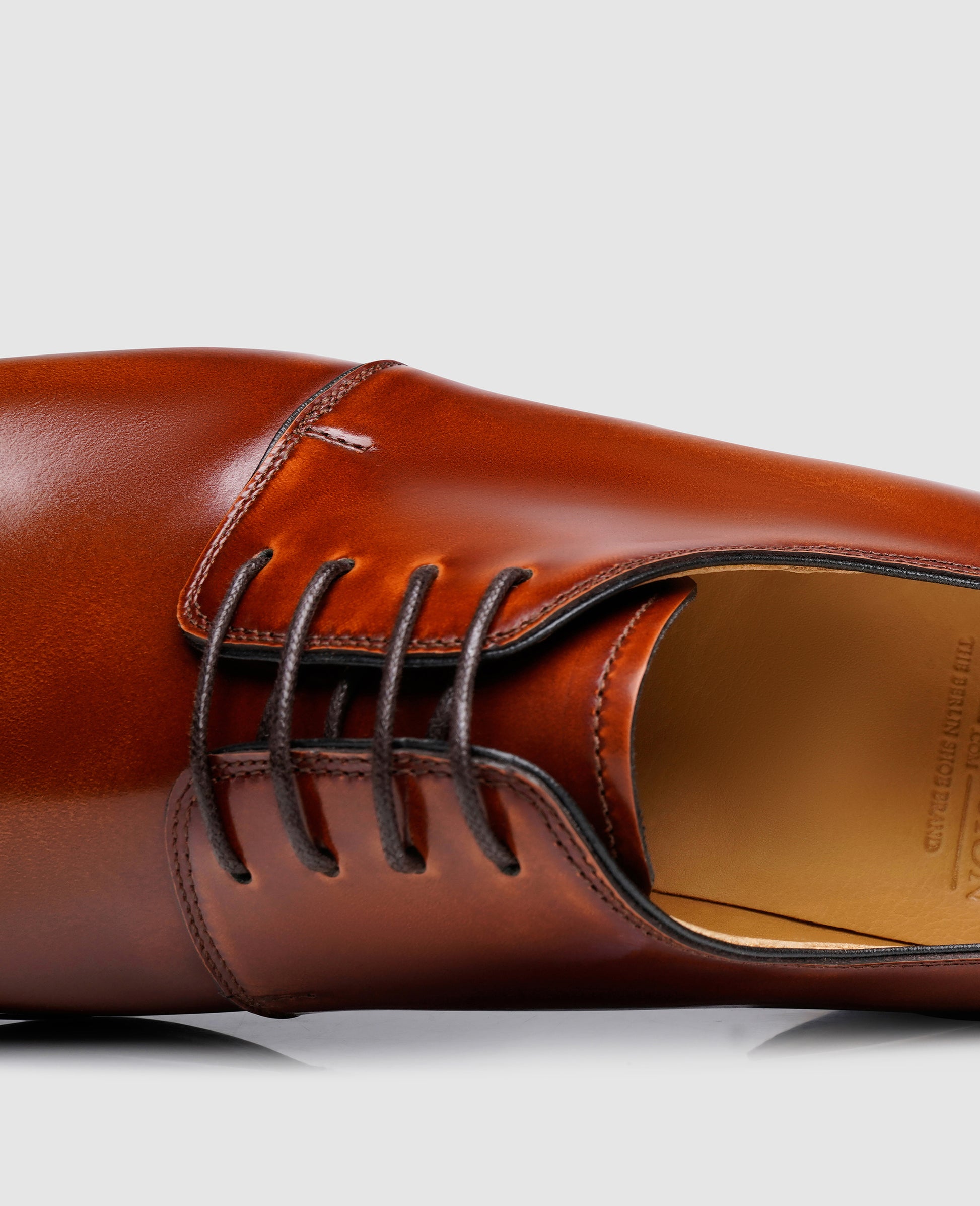 An icon among classic men's shoes, this model presents itself with some extra special touches. This Goodyear-welted and handcrafted plain Derby surprises in our special collection both with its polished calfskin leather and also with its world-famous Rendenbach leather outsole. While the supple, glossy upper leather also features an attractive shading effect, an intricate paisley pattern accentuates the renowned premium leather sole. The decorative ornamentation, with its distinctive teardrop and leaf shaping, adds a playful aesthetic to the extraordinary wearing properties of the Rendenbach sole.