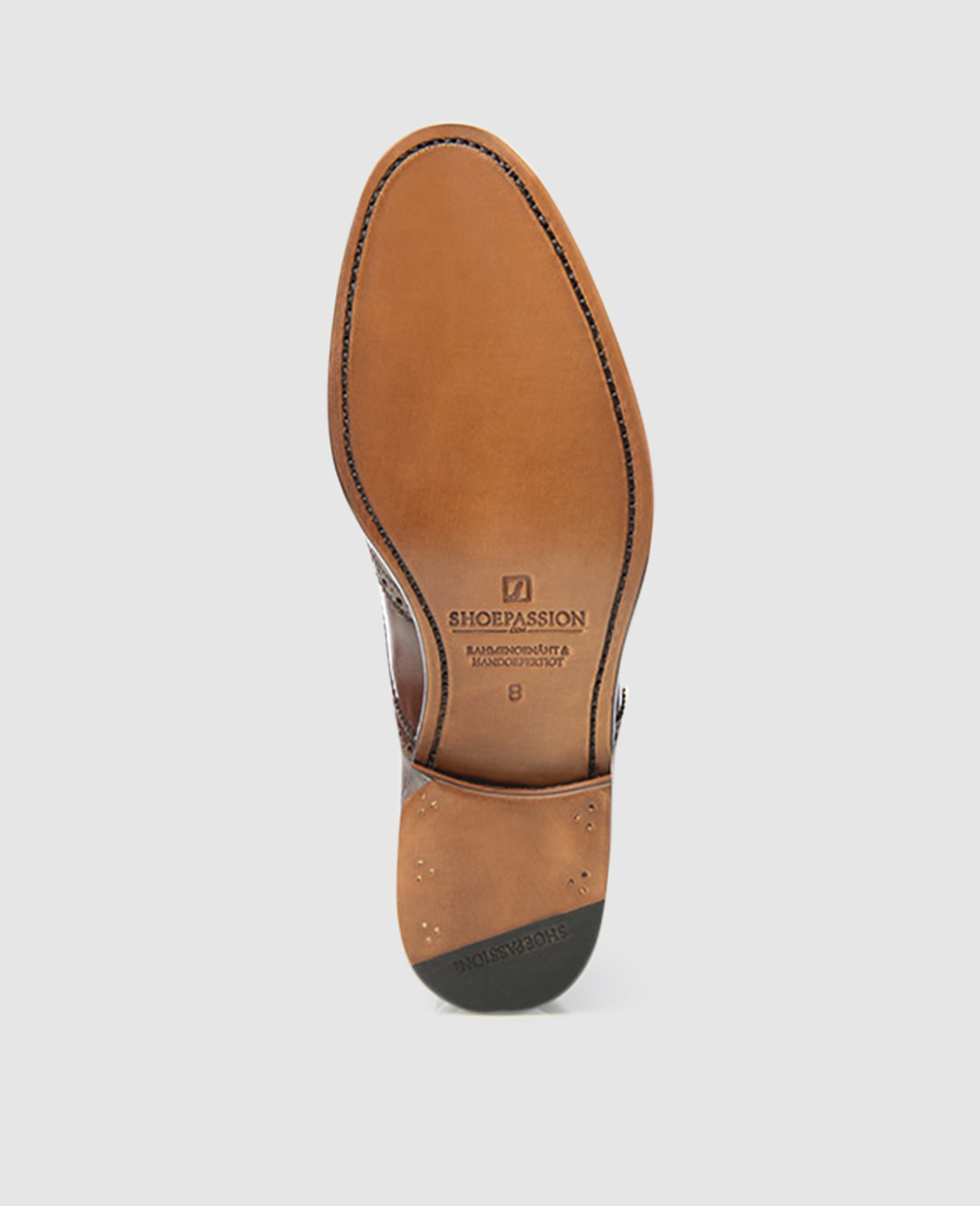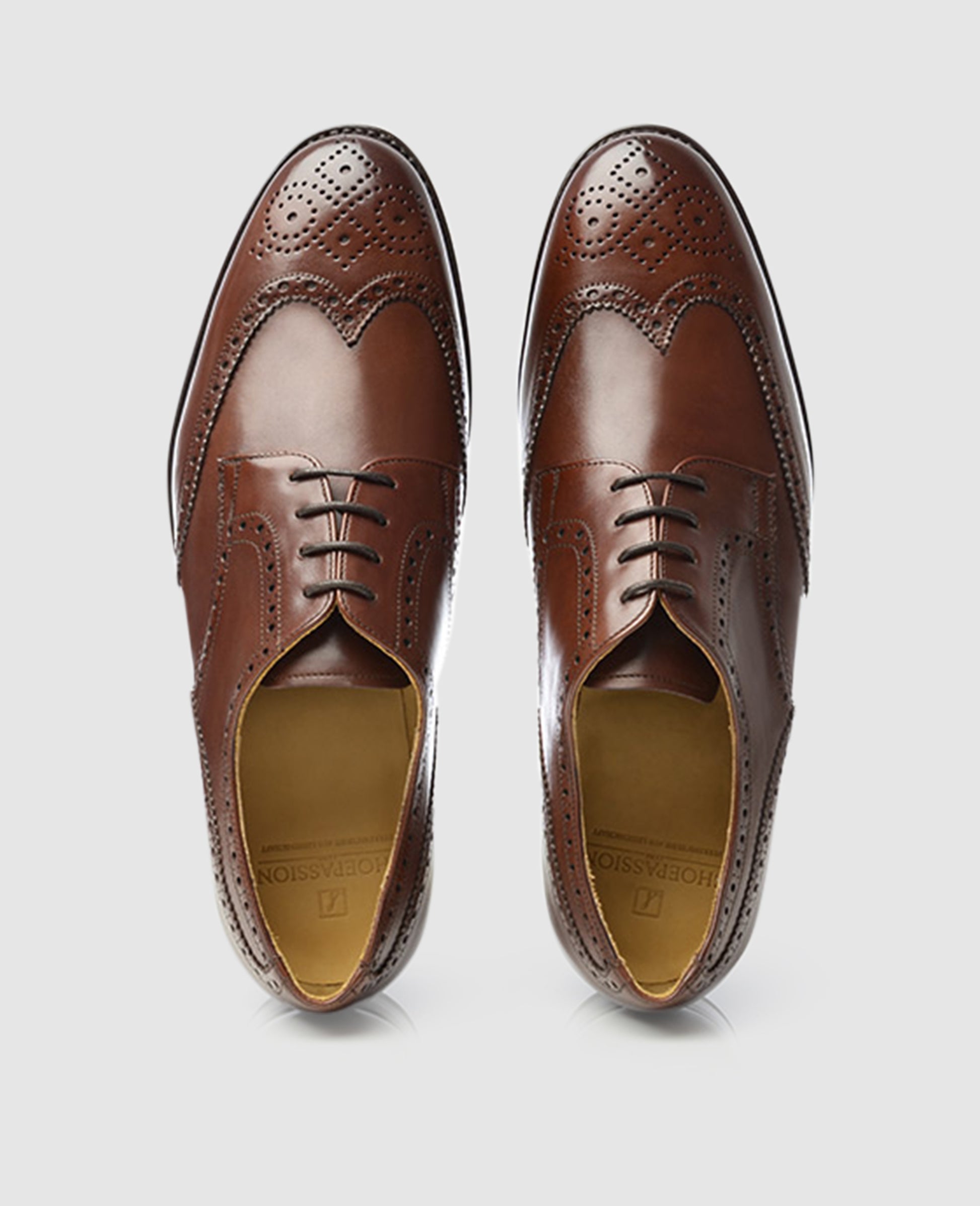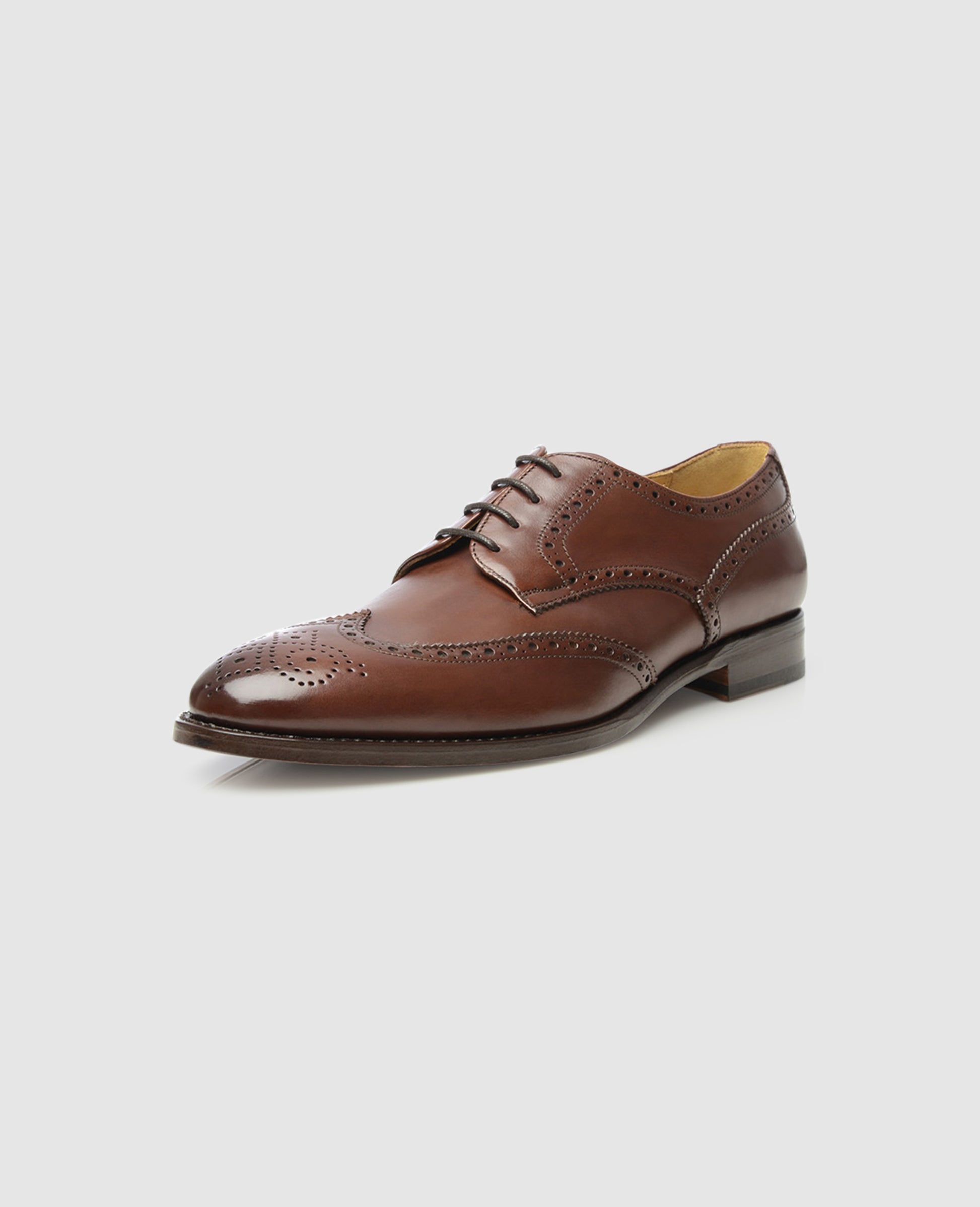 Our No. 552 is a Goodyear-welted full-brogue Derby in dark brown, characterised by a multi-part vamp and open four-hole lacing. The rich brogueings, serrated along the seams, and the sewn-on wing and counter cap emphasise the dynamic look of this formal men’s shoe.