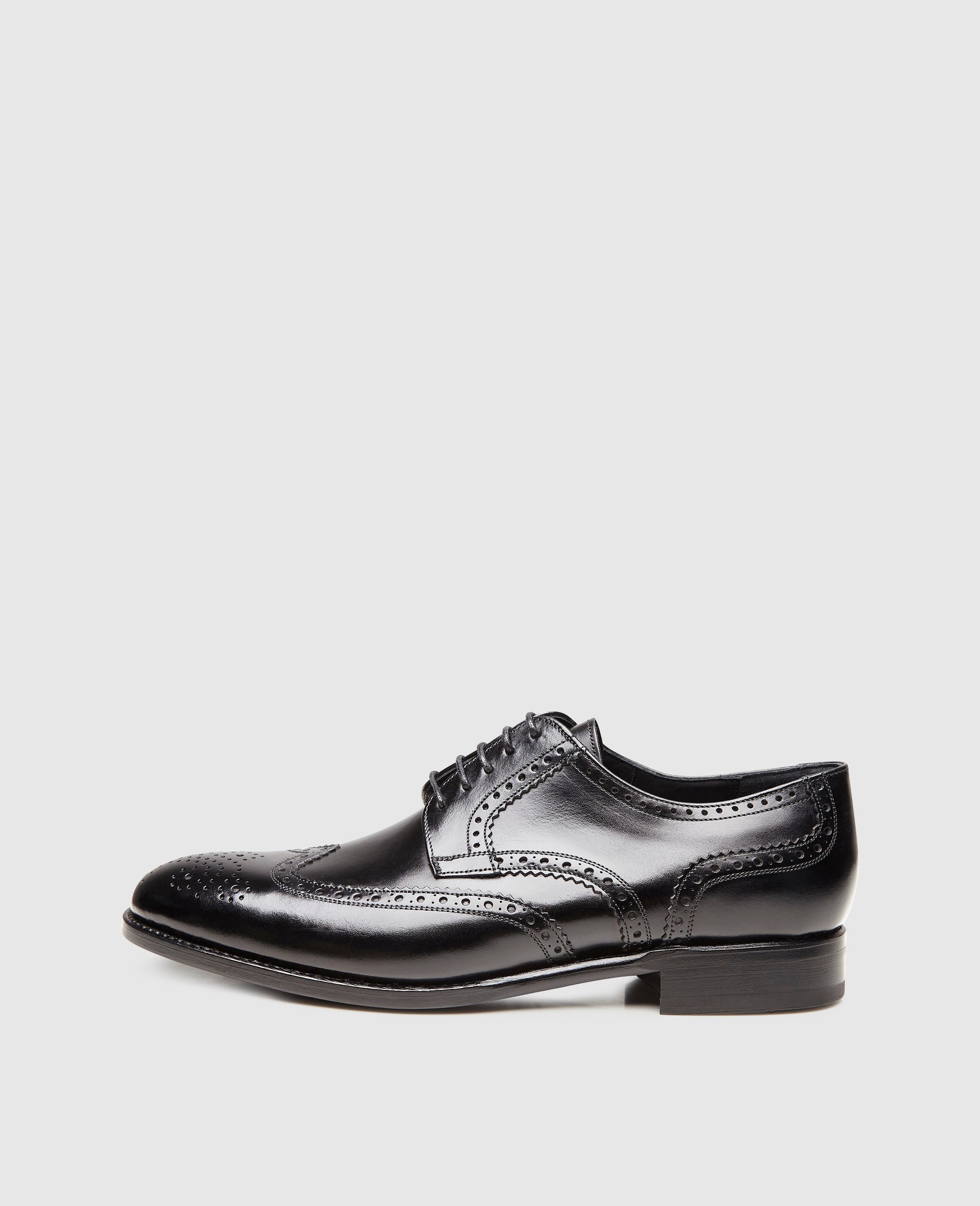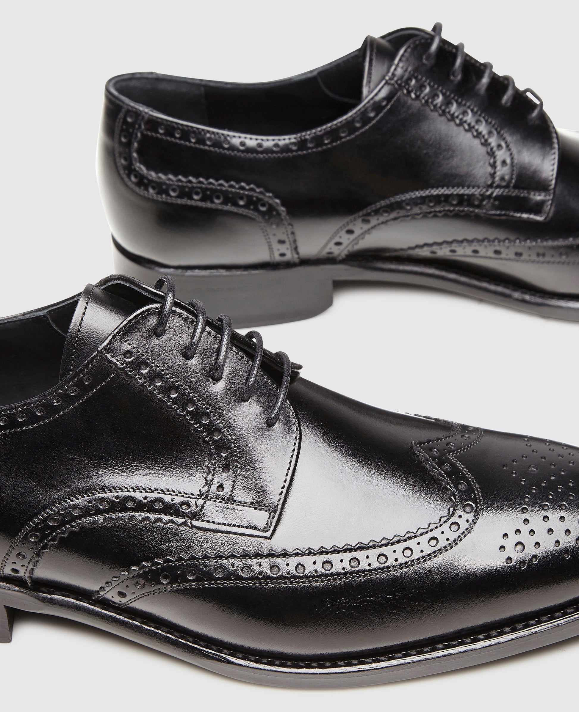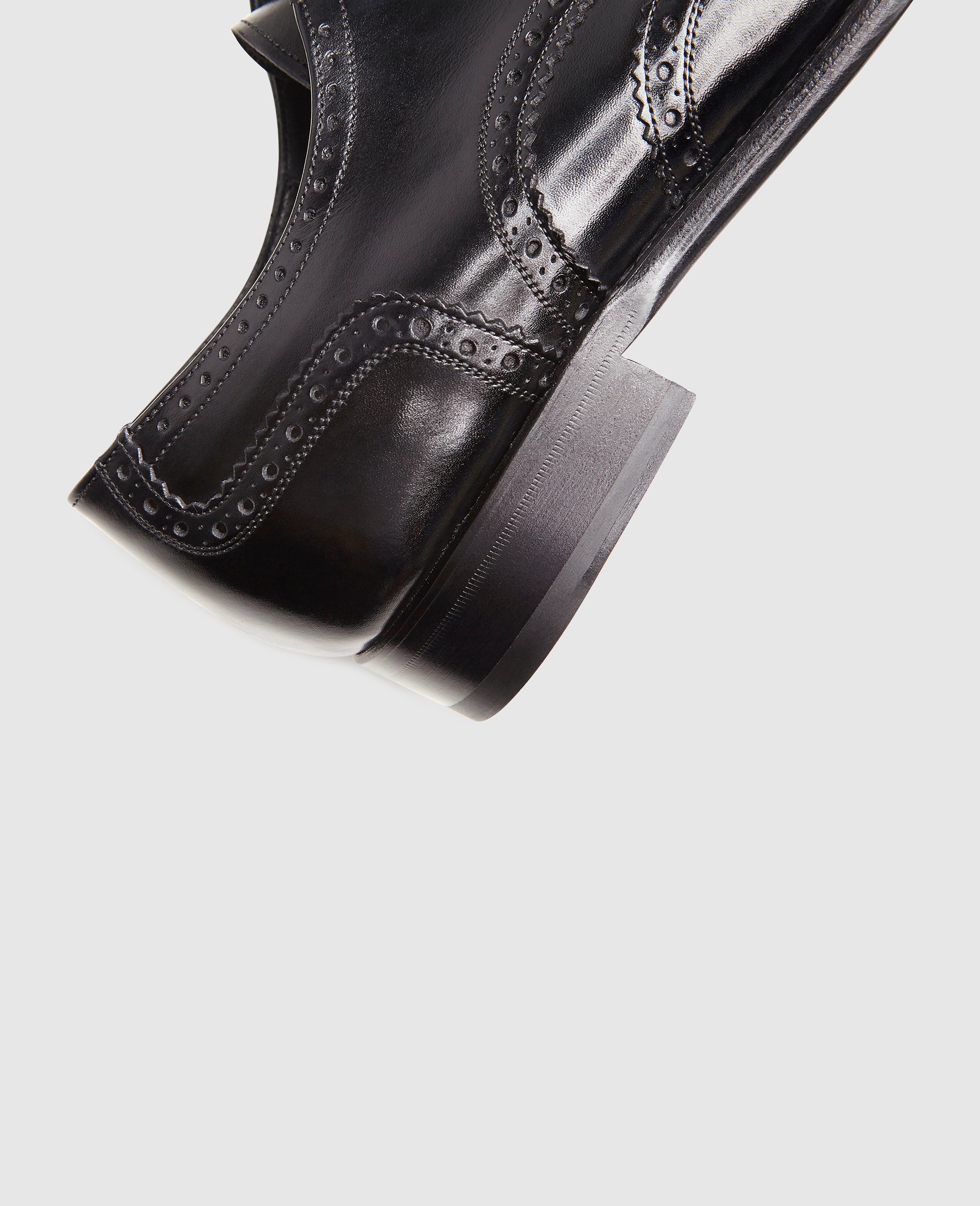 This classic shines with new splendor. The full-brogue Derby is primarily classified by the multi-part cut of the shaft, which immediately convinces with its rich, intricate hole pattern. Whether in your leisure time or for a business look, you can combine this handcrafted model in any number of ways. A novelty at Shoepassion, however, is that every detail of this lace-up shoe - whether inside or on the leather outsole - is kept in black, making those particularly festive outfits shine even brighter. The Goodyear-welted Derby is all the more impressive thanks to its monochrome coloring, which guarantees the wearer more than the odd admiring glance.