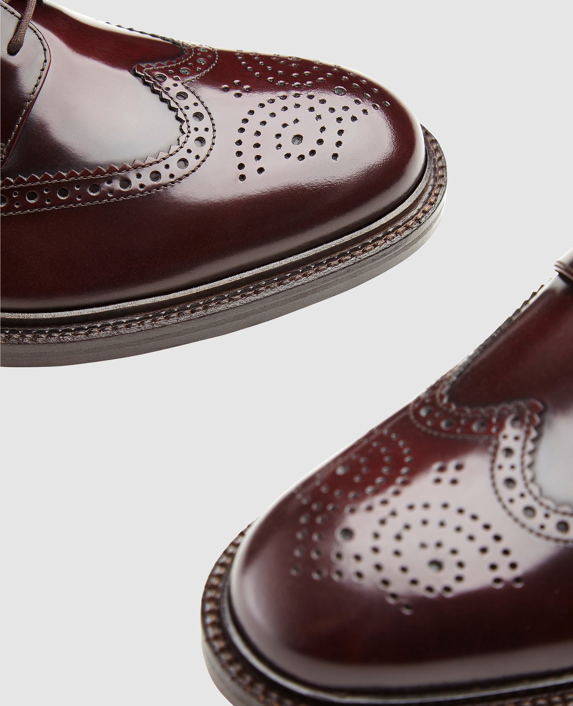The ideal companion for the modern dress code – this full-brogue Oxford is adorned with a beautifully shaped lyra perforation along the seams of the shaft, as well as decorative ornamentation on the toe. The shaft also features a high-gloss upper leather that gives this famous men's shoe model a modern touch. The inner lining, insole, outsole and heel are also made of leather. The heel is a real rarity and underpins the quality of this elegant full leather shoe. Whether in business or the sophisticated leisure sector, this fashionably elegant full-brogue Oxford is the right choice for those looking to achieve tasteful accents.