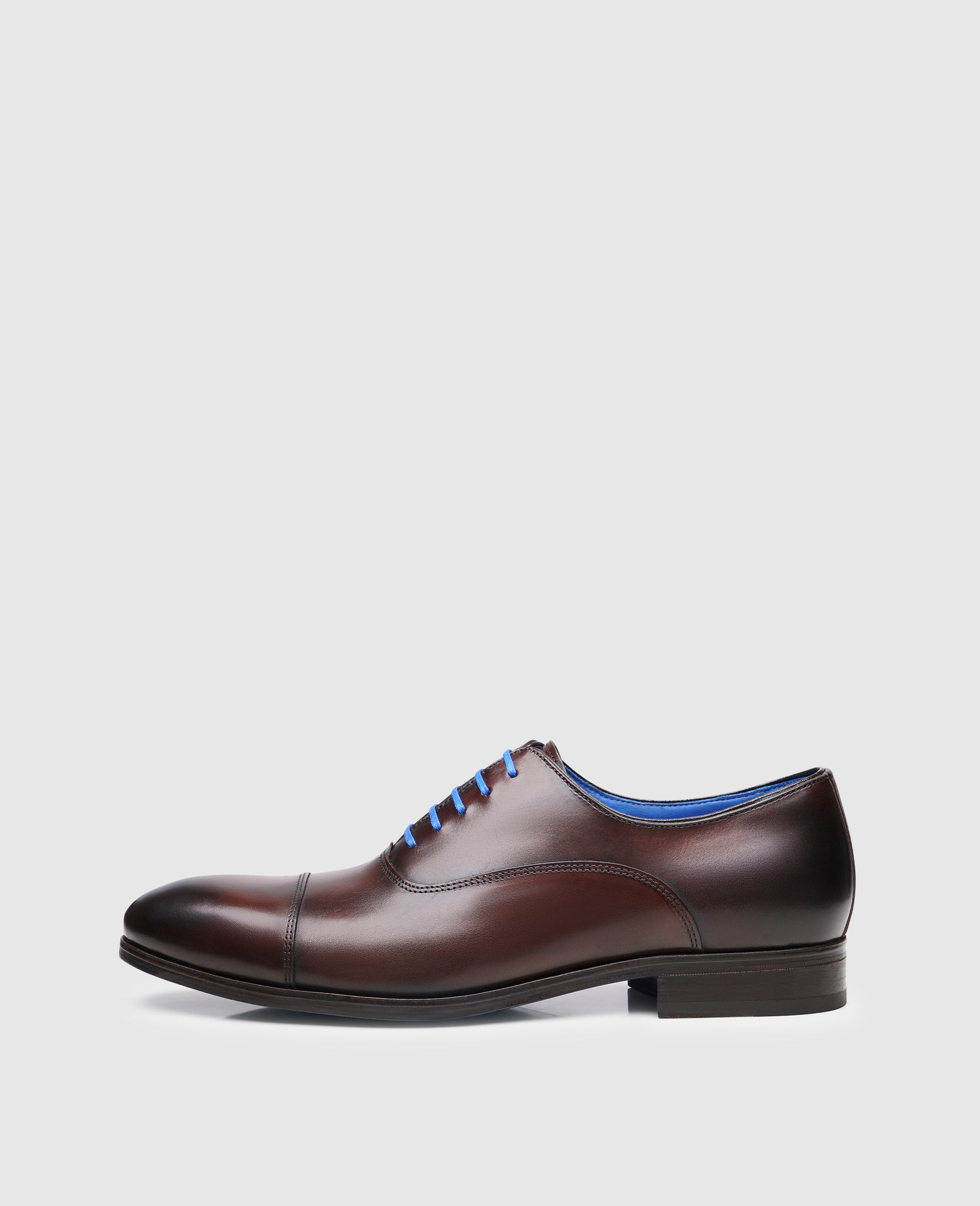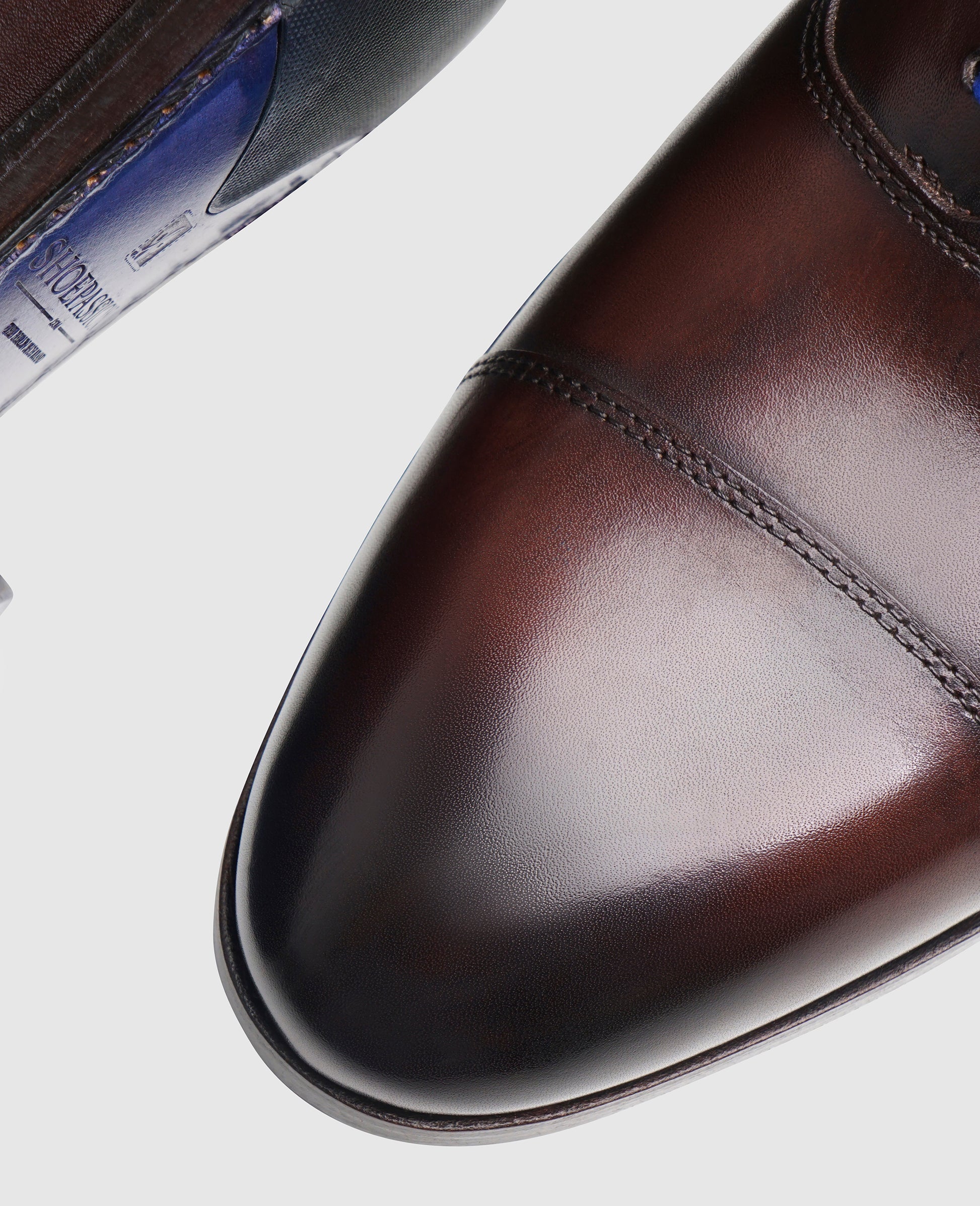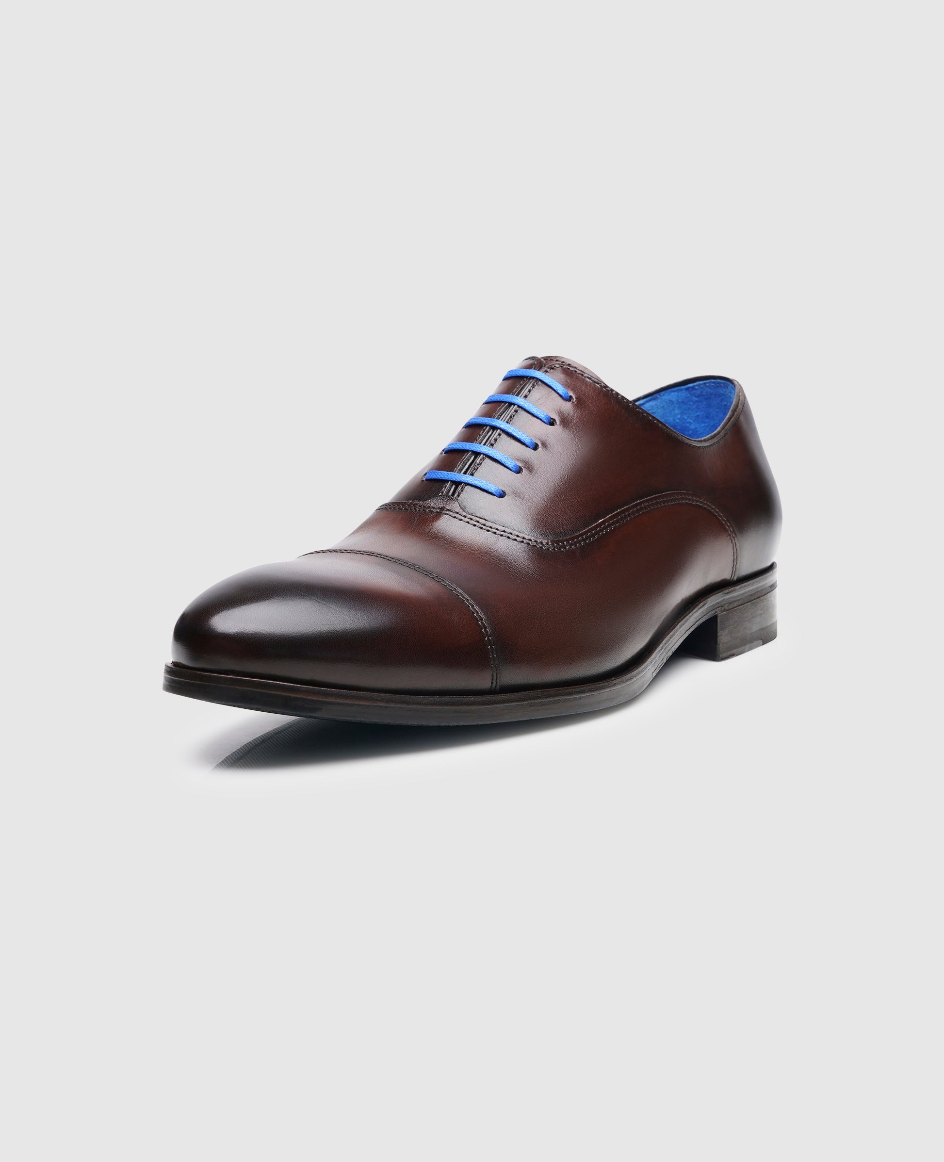 As part of our popular 'Blue Stitched' collection, this cap-toe Oxford convinces with the wonderful interplay of colors found on the upper leather. This is the result of an elaborate finish which, just like the shoes' production, is carried out by hand. The almost ‘cloudy’ appearance created by the shades of light and dark lends this model a unique look that exudes an extra-special air.