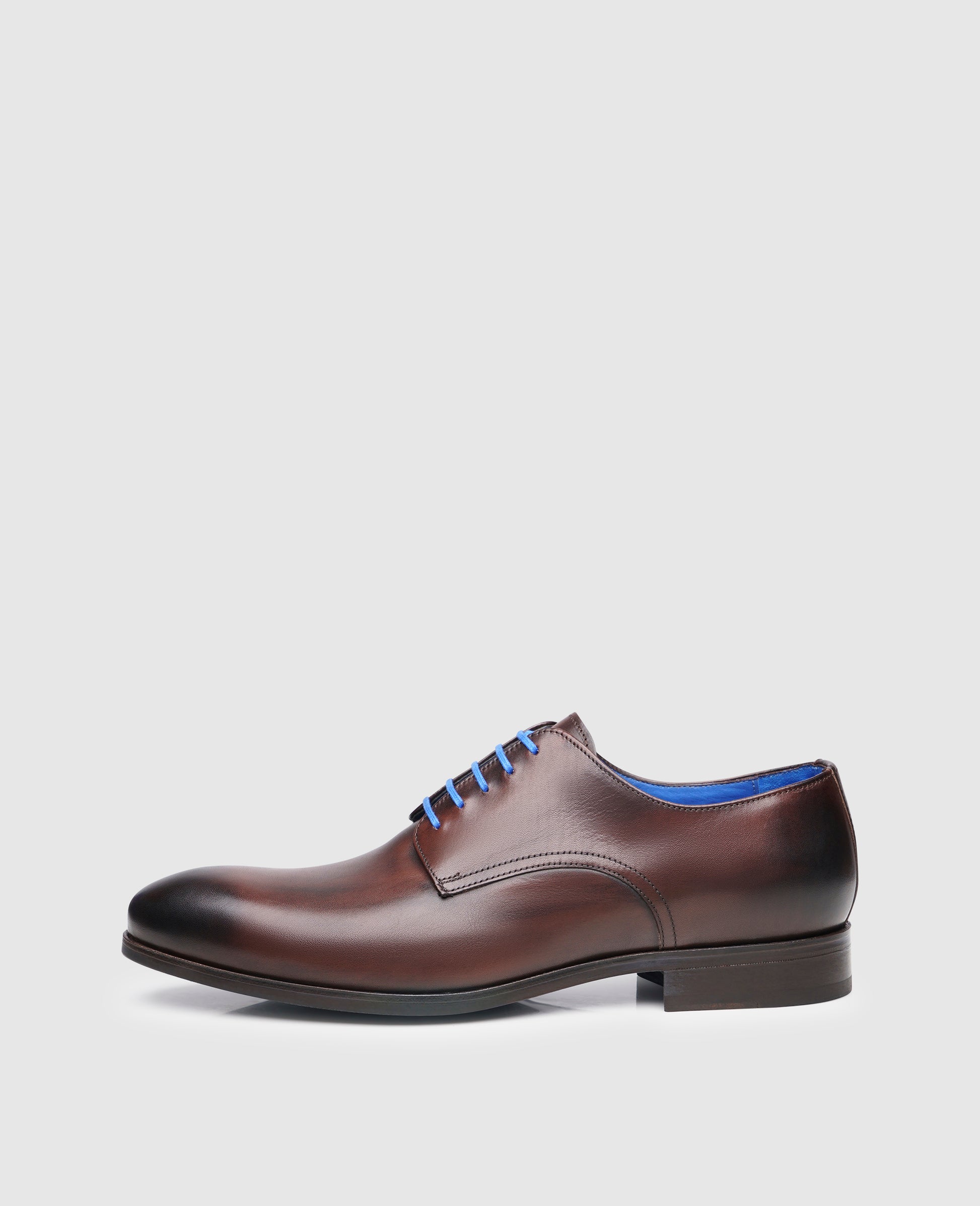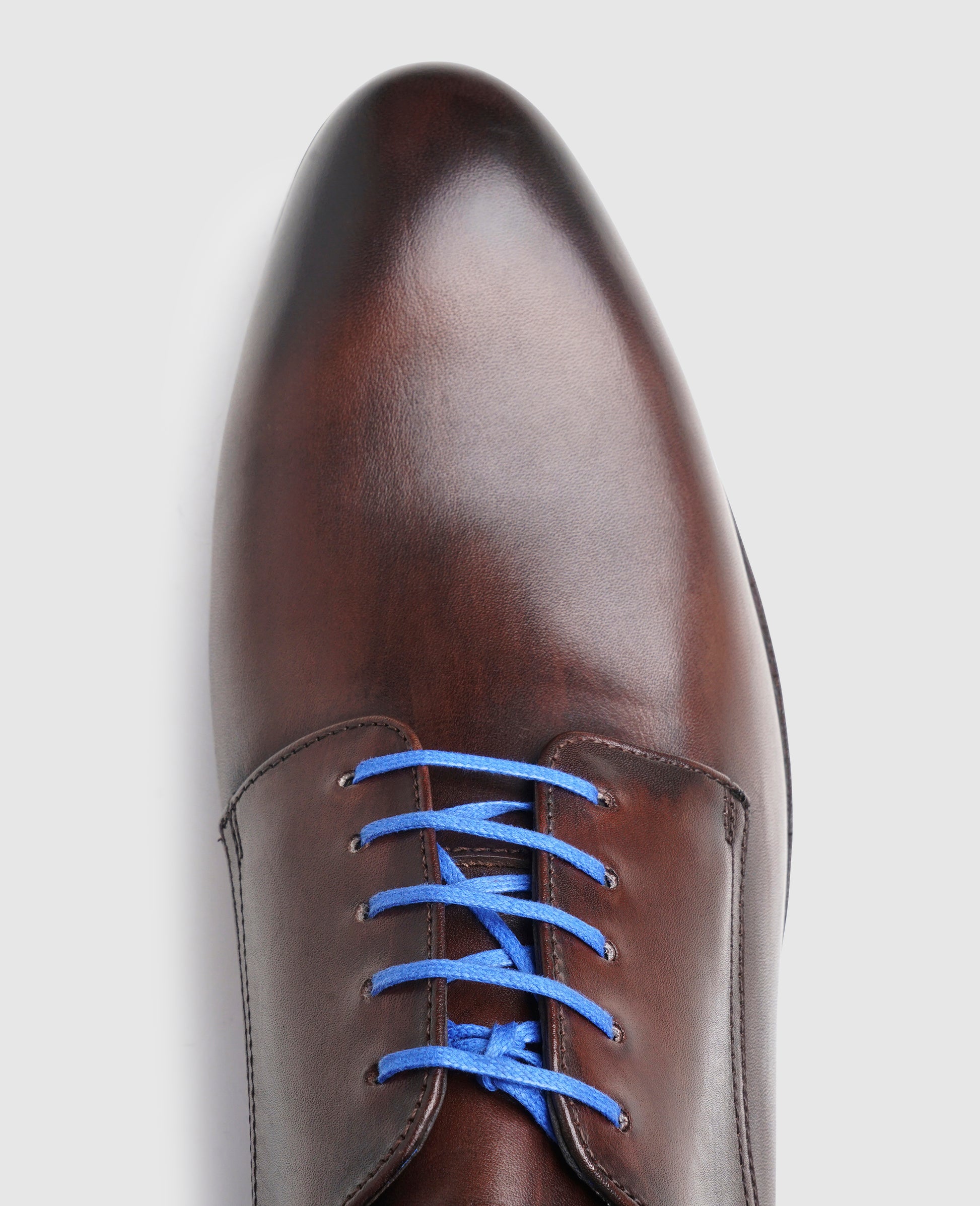 This Blake-stitched, plain Derby is the perfect combination of the finest wearing properties and a classic look; convincing above all with its beautiful and elaborately hand-patinated leather. The blue detailing found on this lace-up shoe defines it as part of our popular 'Blue Stitched' collection.