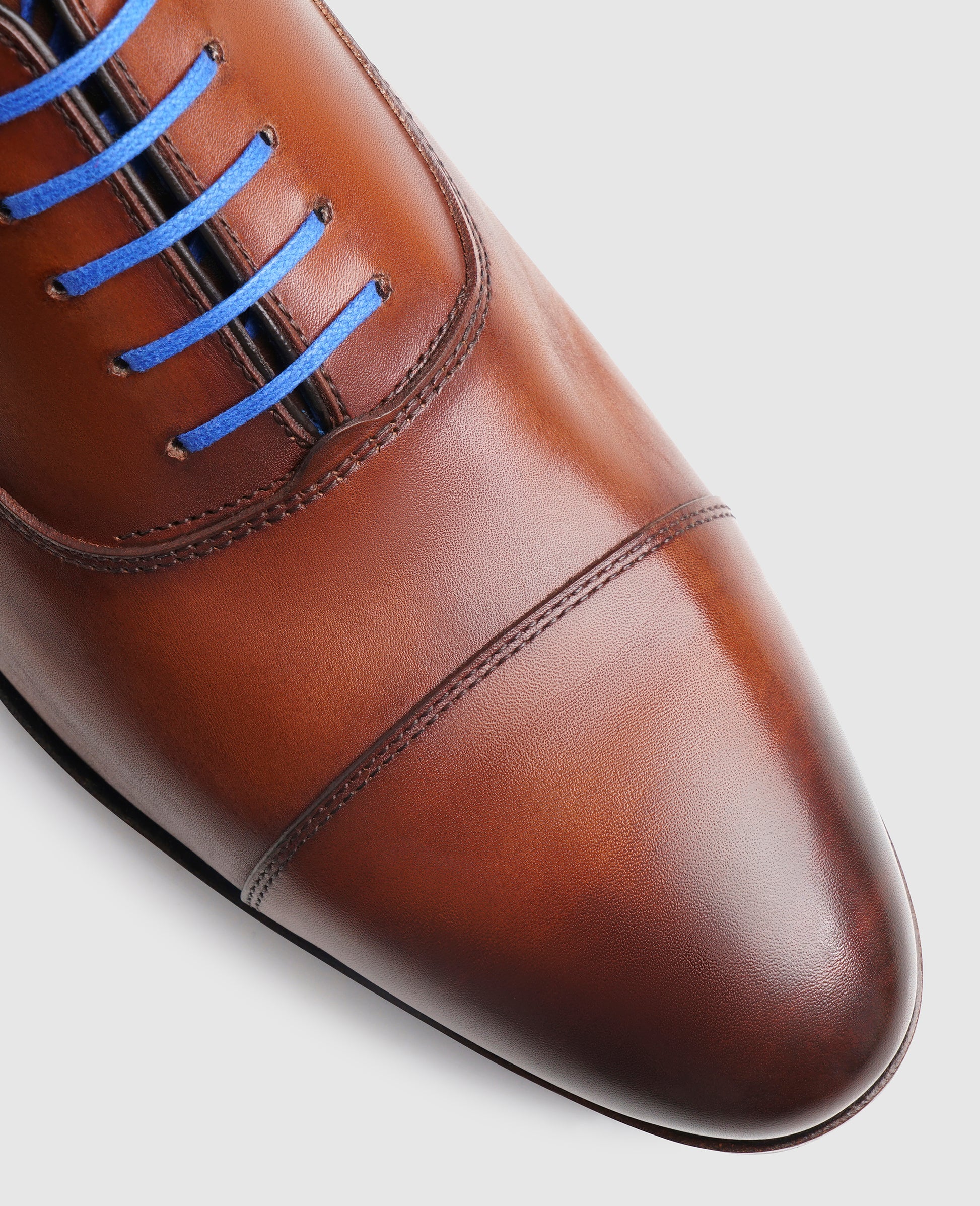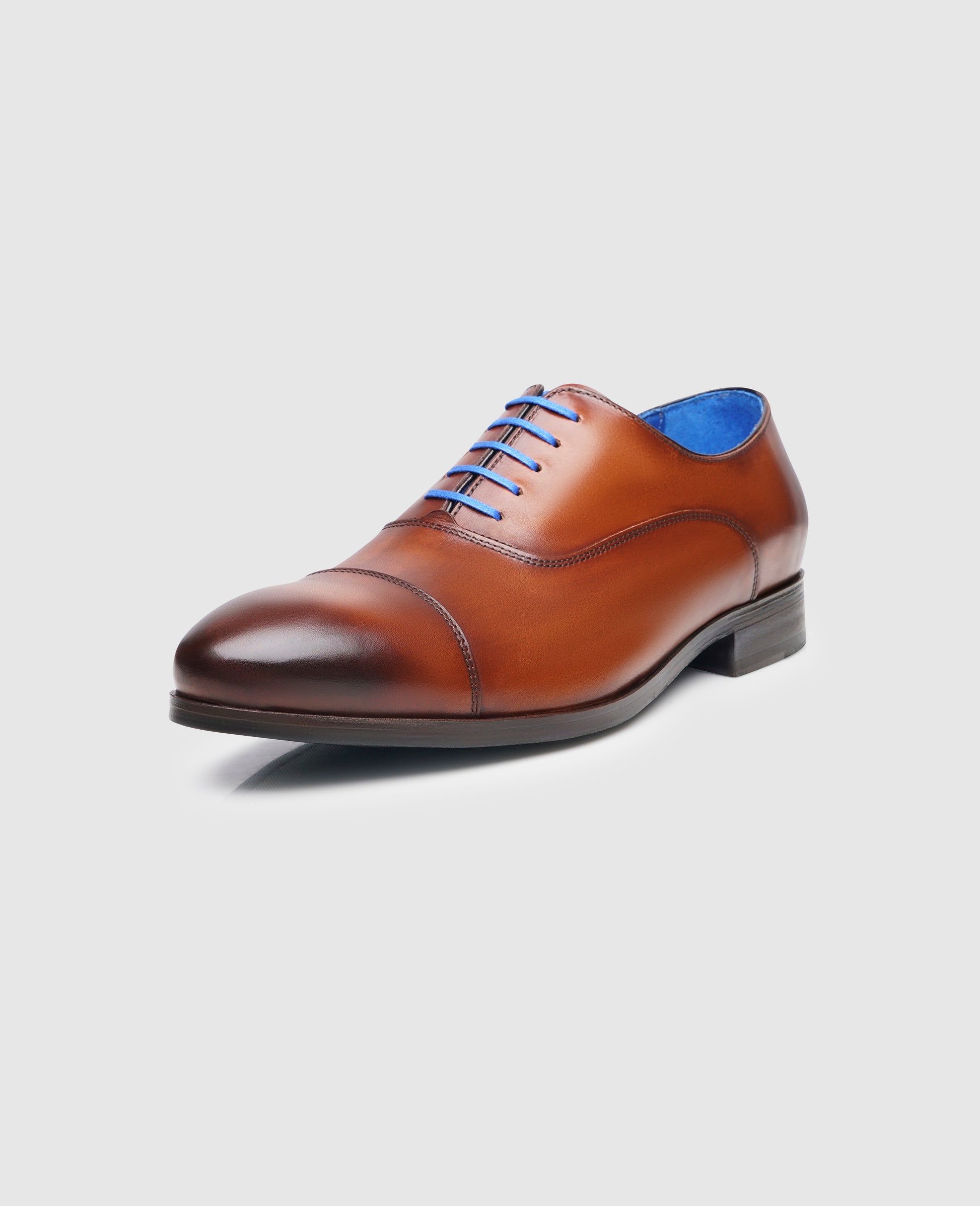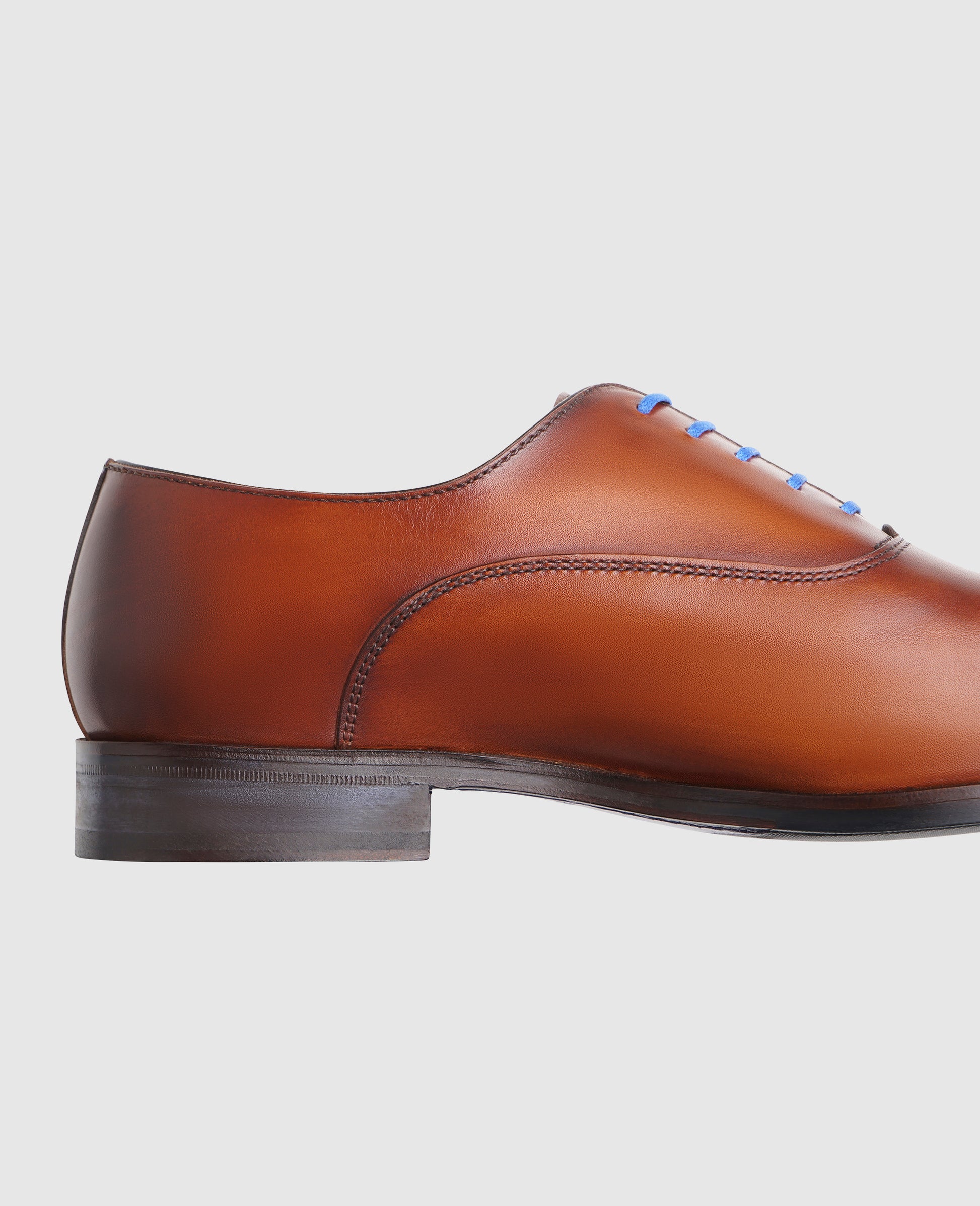 As part of our popular 'Blue Stitched' collection, this cap-toe Oxford convinces with the wonderful interplay of colors found on the upper leather. This is the result of an elaborate finish which, just like the shoes' production, is carried out by hand. The almost ‘cloudy’ appearance created by the shades of light and dark lends this model a unique look that exudes an extra-special air.