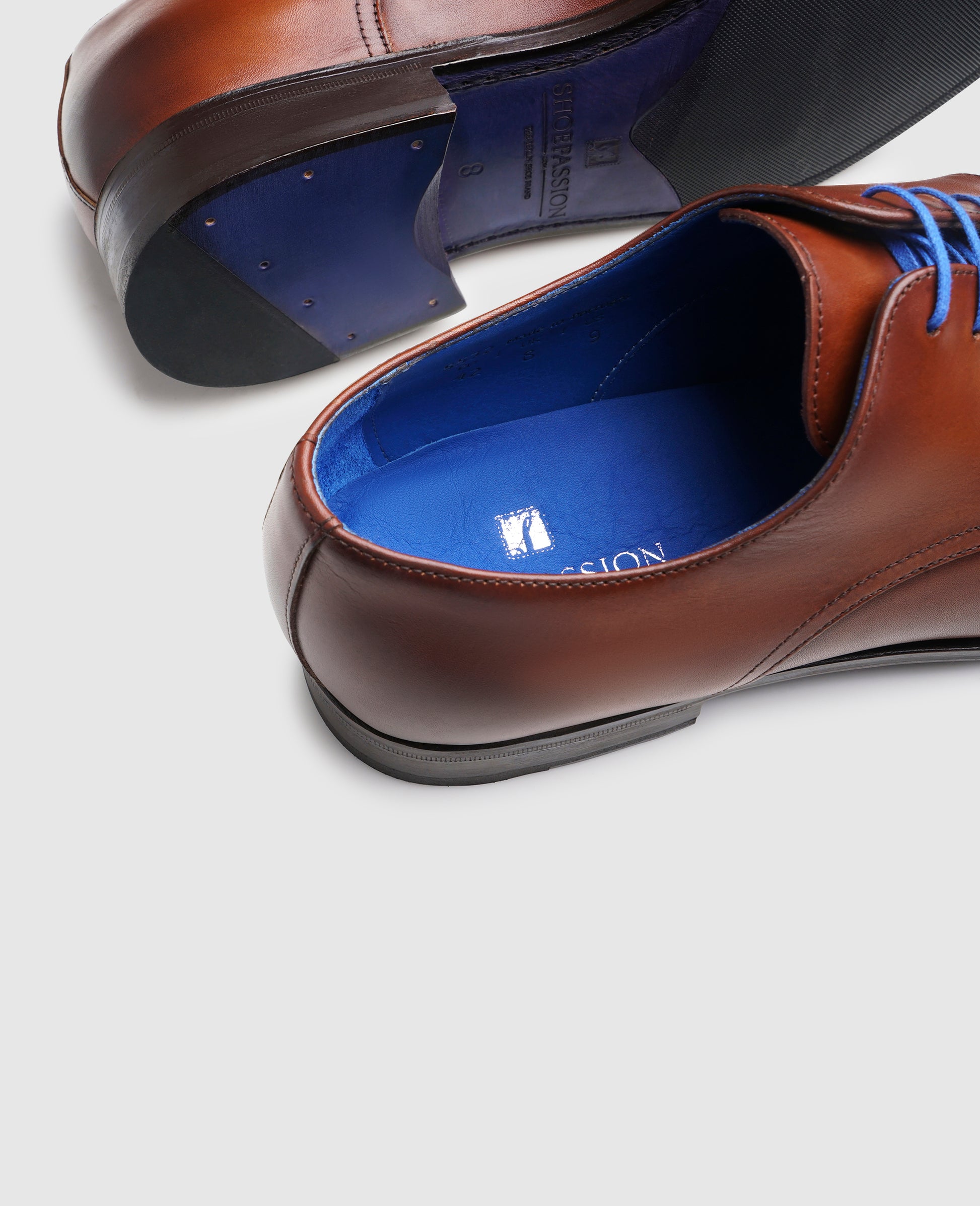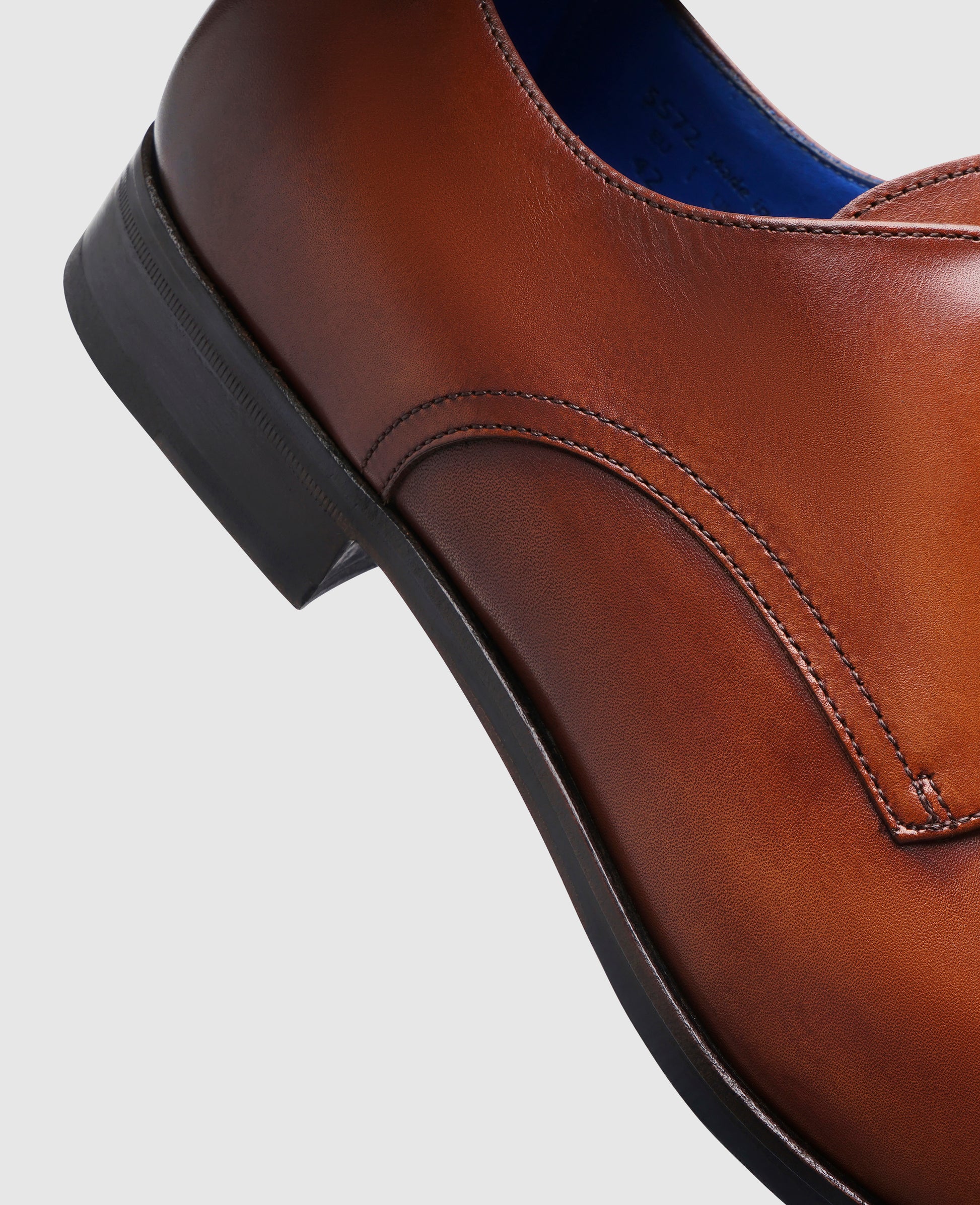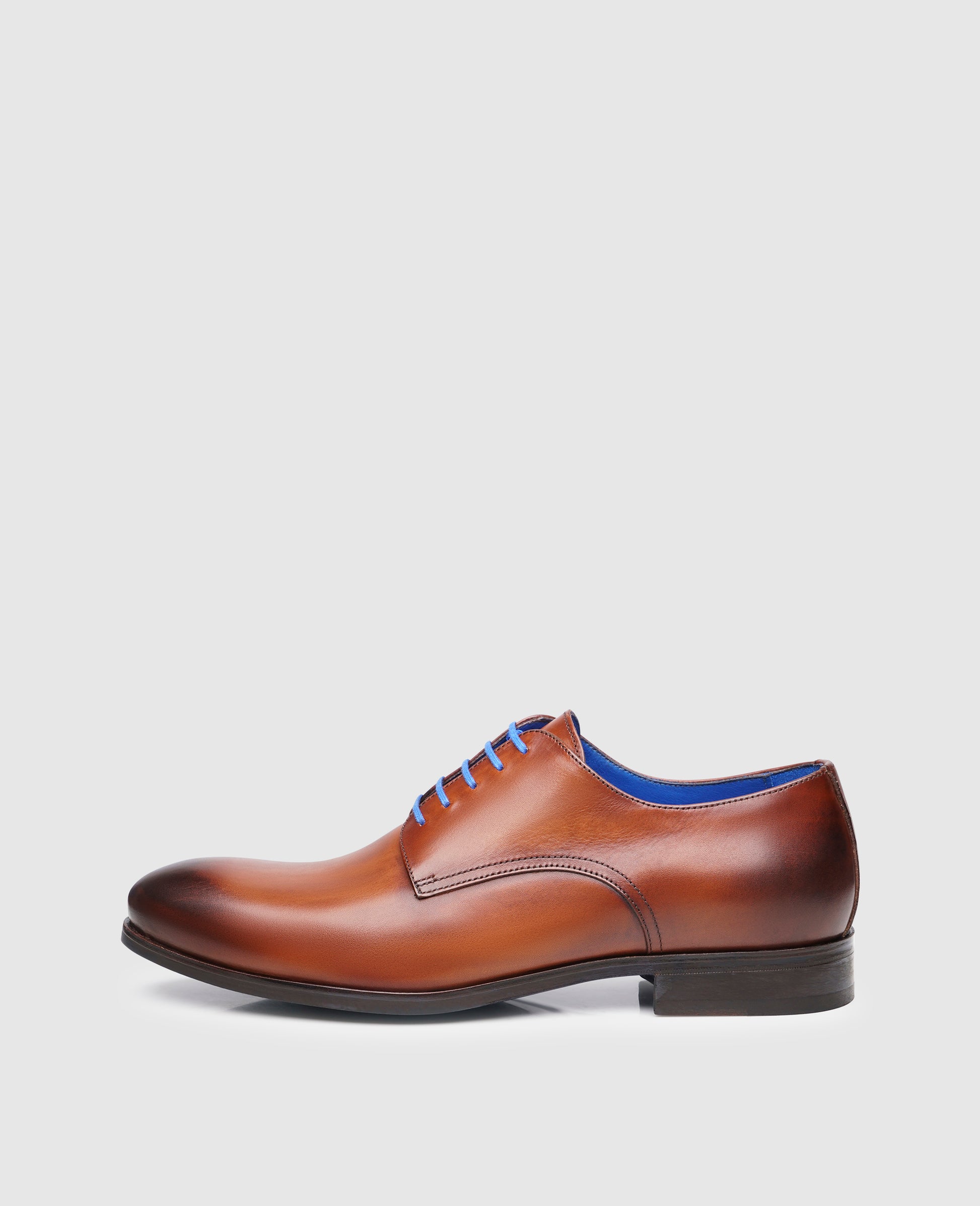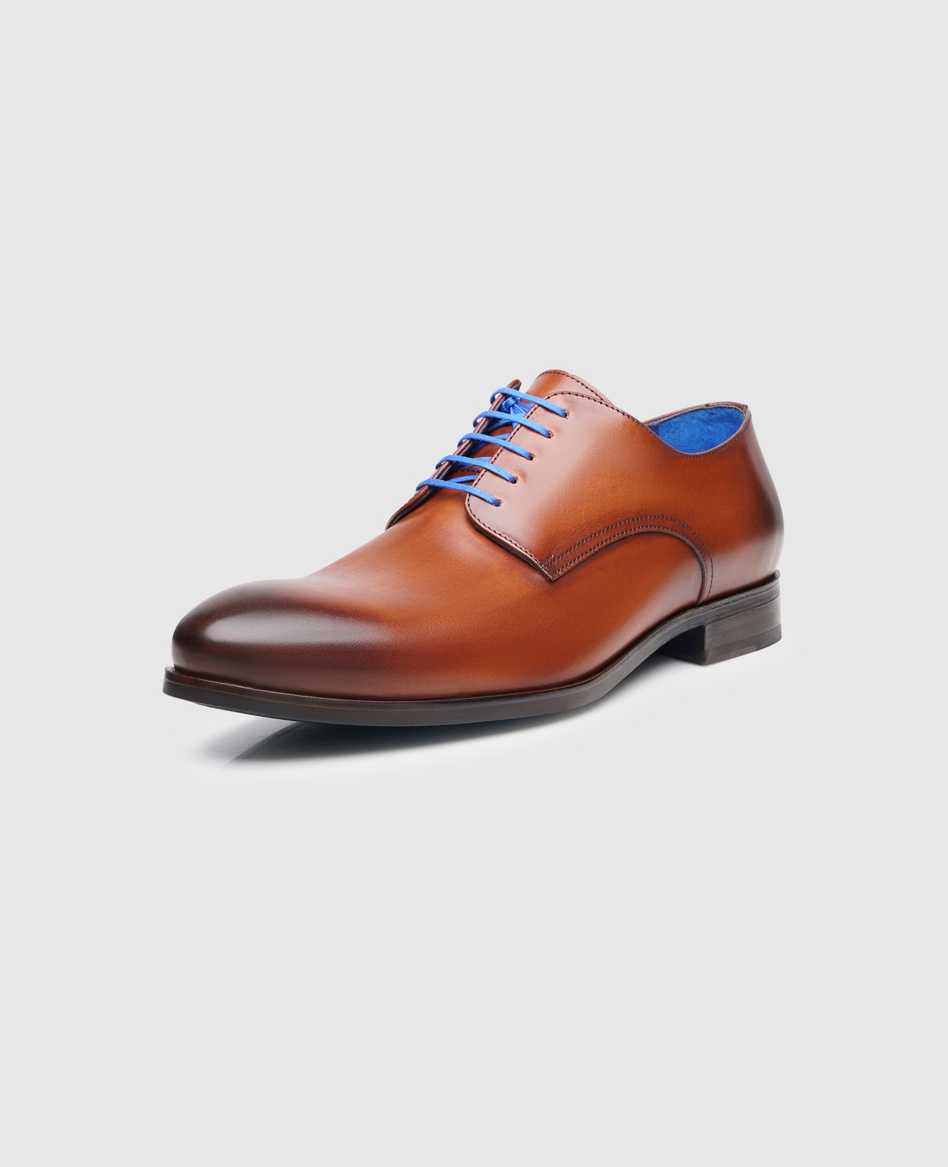 This Blake-stitched, plain Derby is the perfect combination of the finest wearing properties and a classic look; convincing above all with its beautiful and elaborately hand-patinated leather. The blue detailing found on this lace-up shoe defines it as part of our popular 'Blue Stitched' collection.